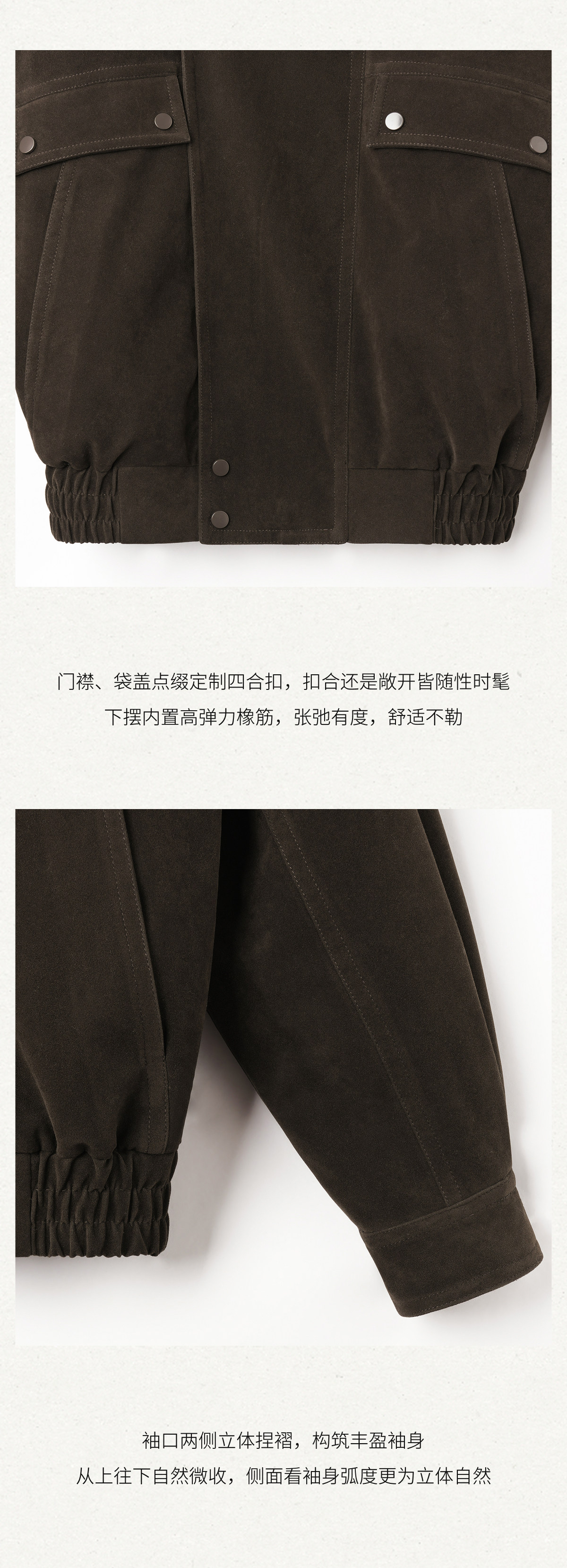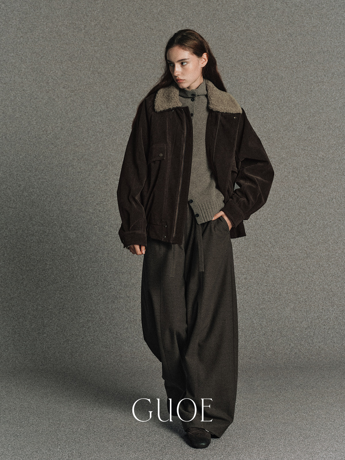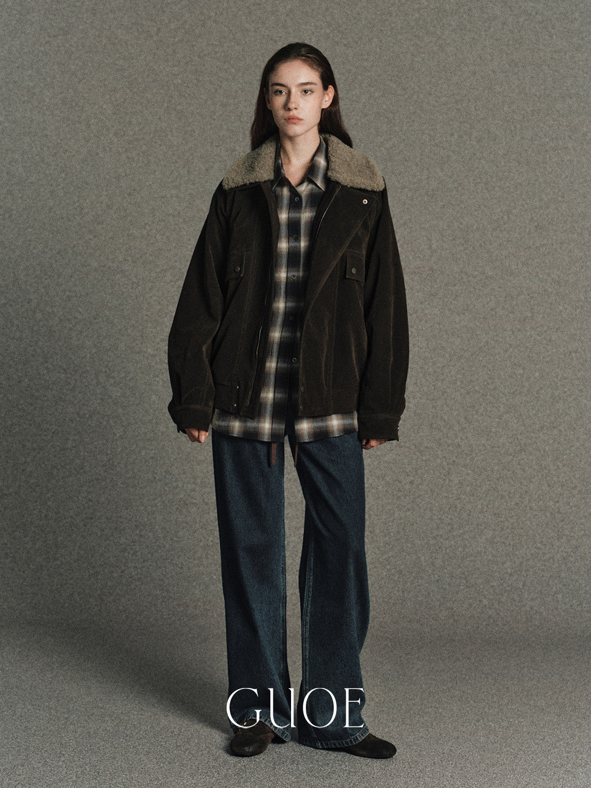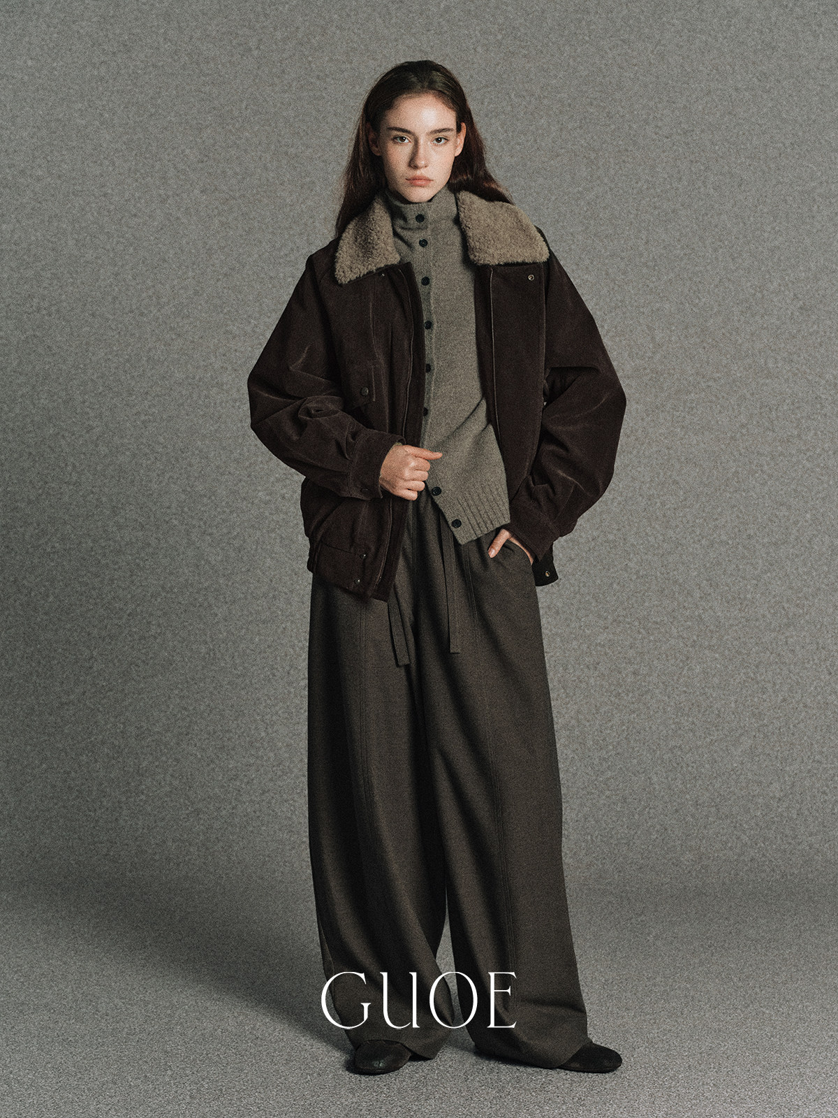 Guoe/Fashionable and Modern Detachable Fur Collar Matte Retro Suede 3m Thinsulate Cotton Jacket 31260