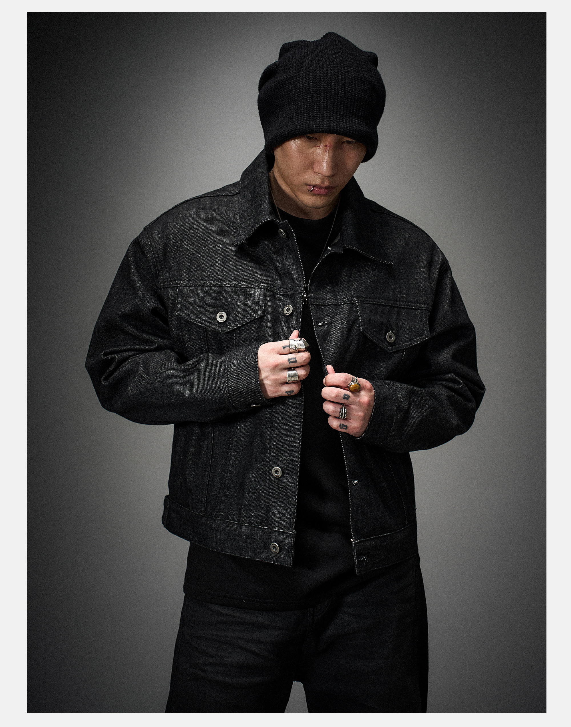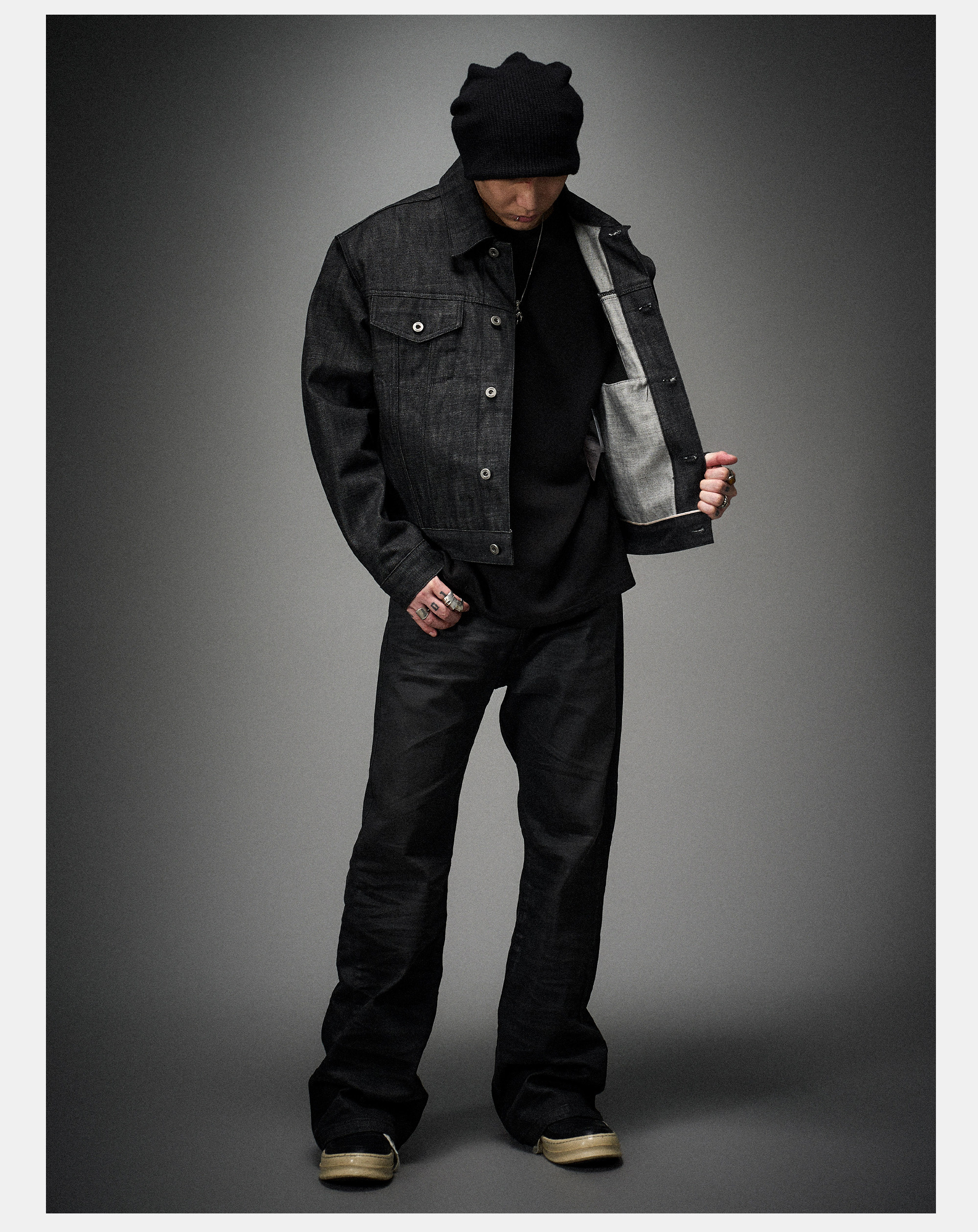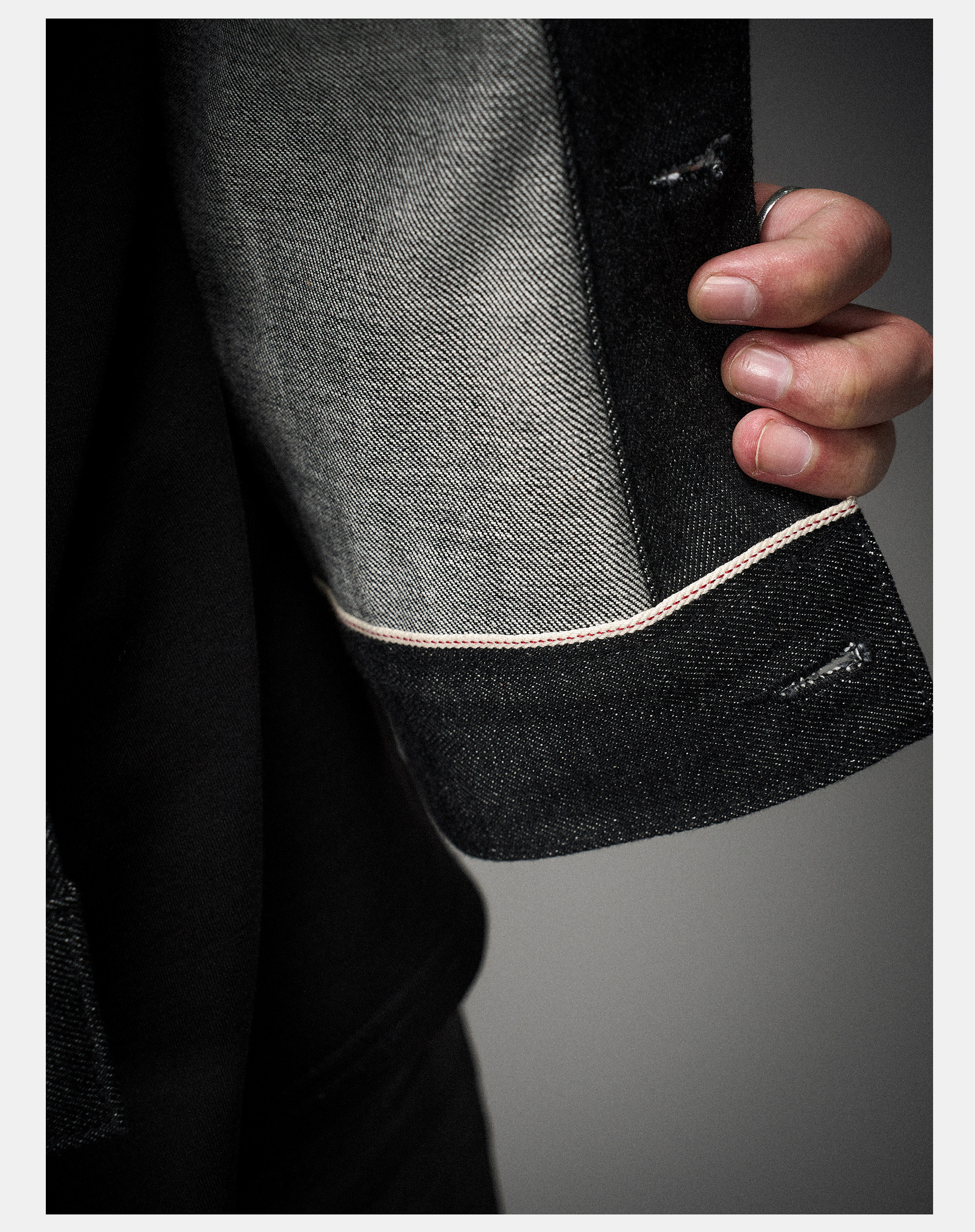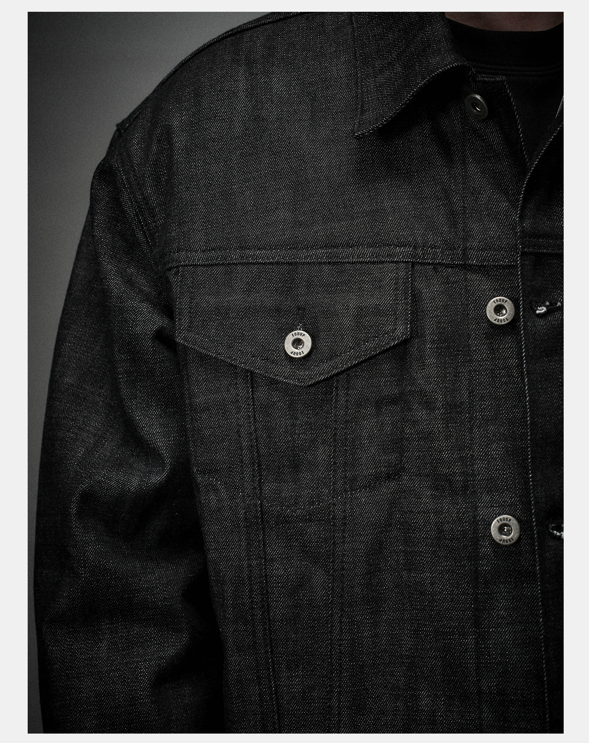 Eodup'Red Wing' Narrow Red-Edged Denim High-Density Stiff Raw Denim Silhouette Short Wide Denim Jacket