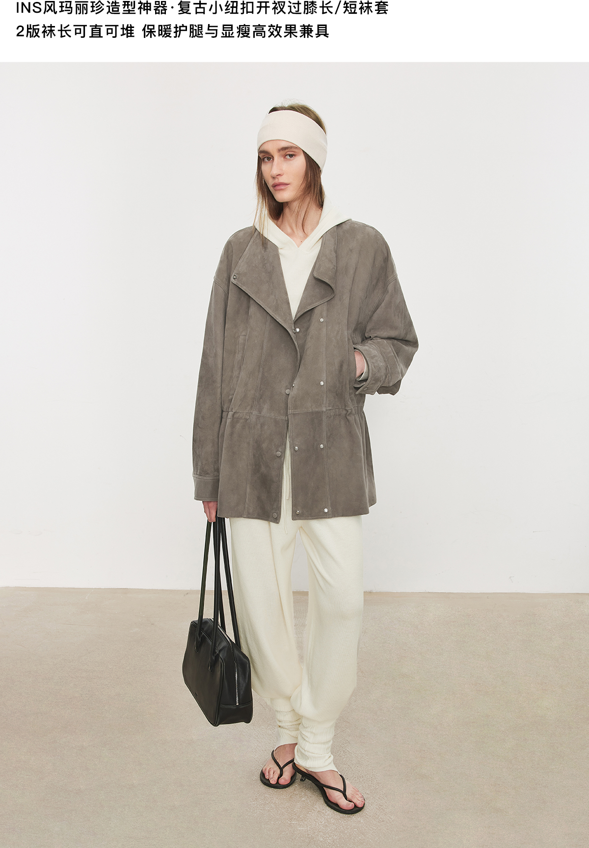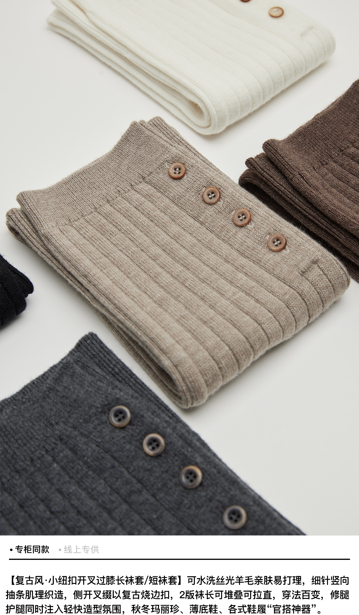 Chicjoc Mary Jane Cp_ Washable Mercerized Wool Warm Slimming Retro Frayed Edge Buckle Slit Stacked Sock Covers
