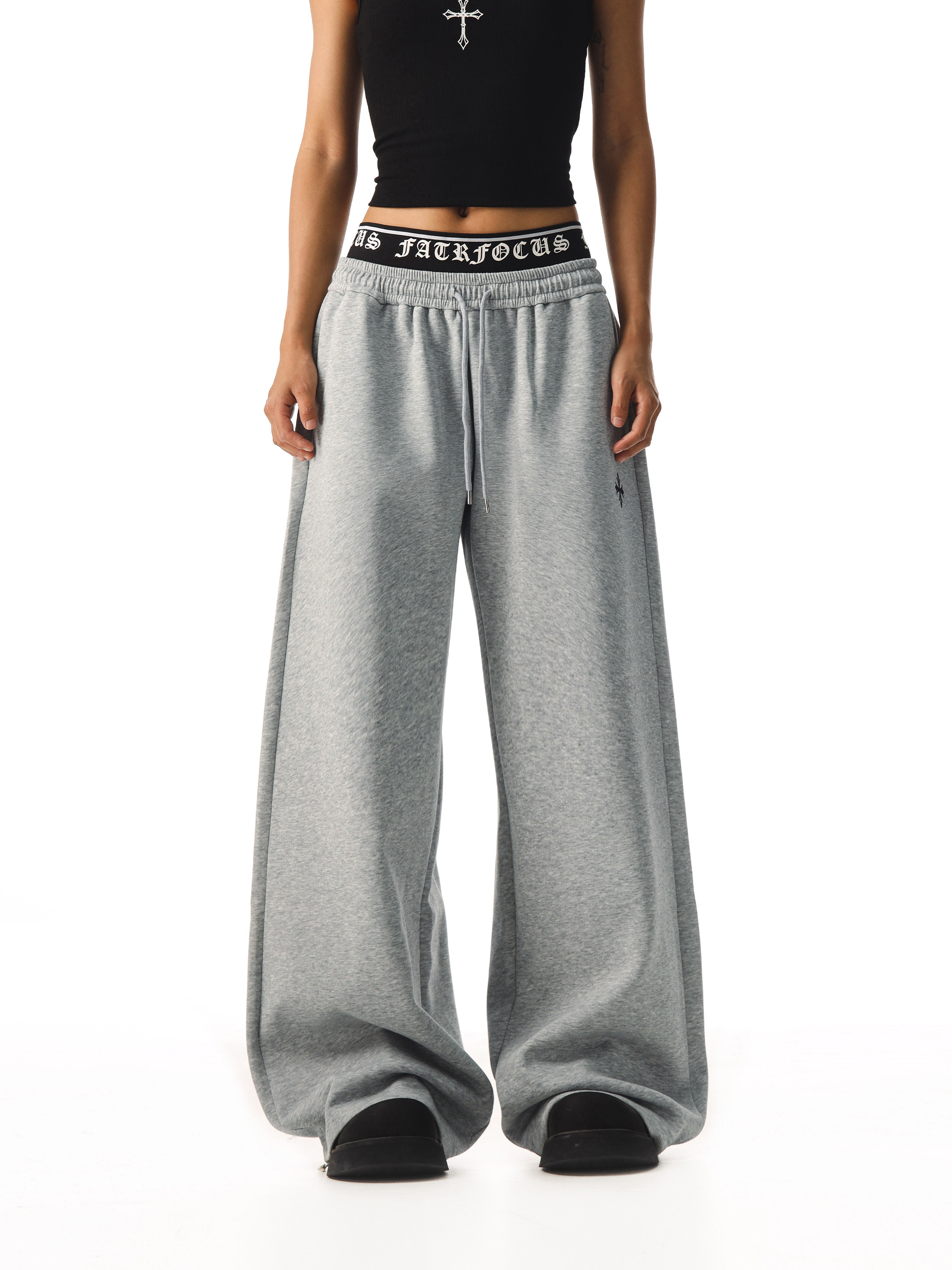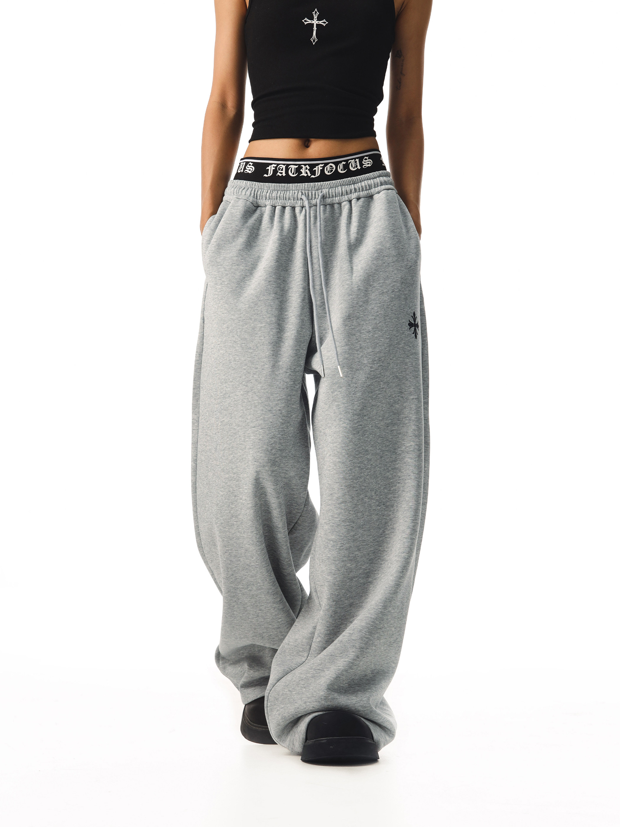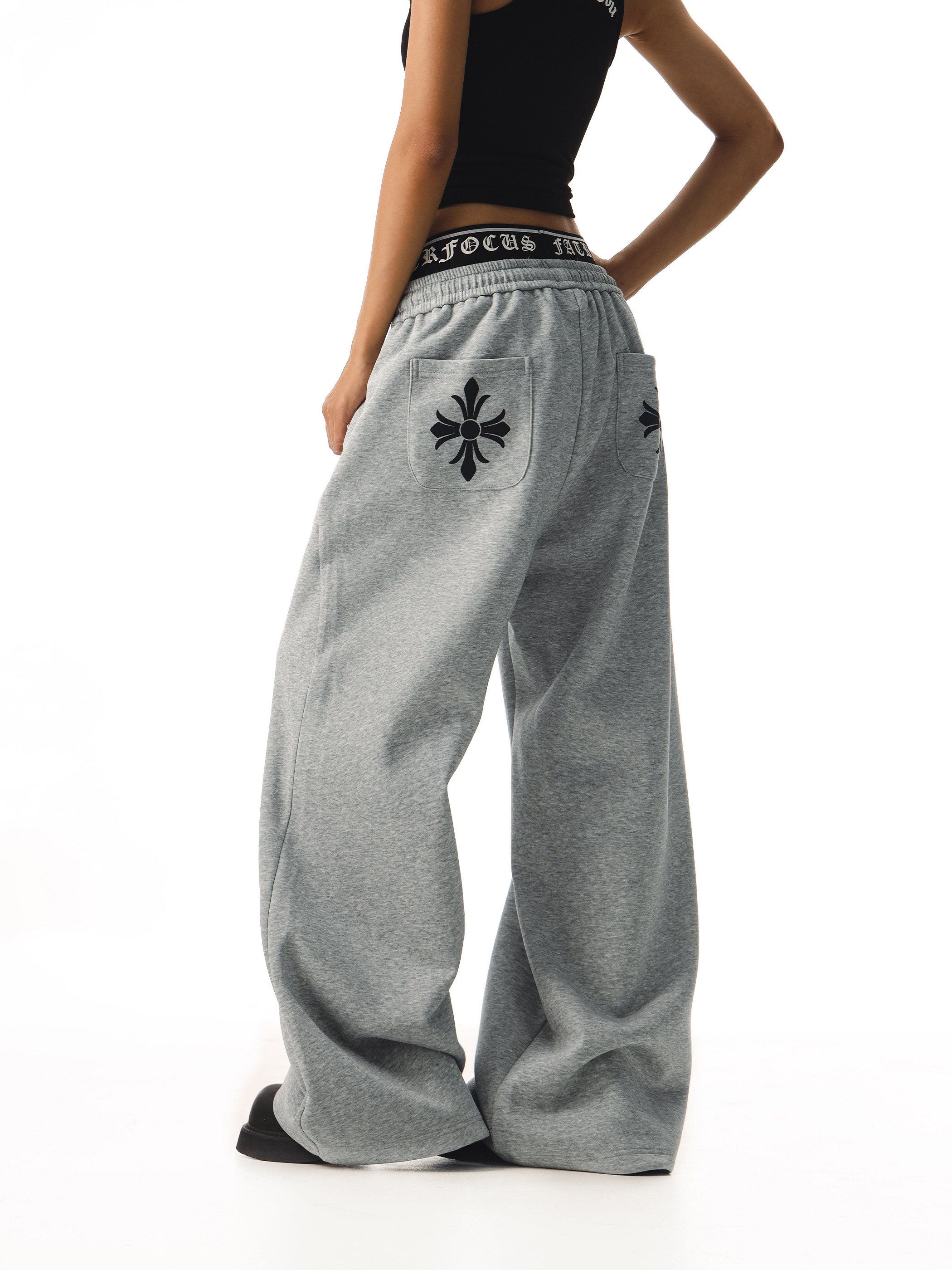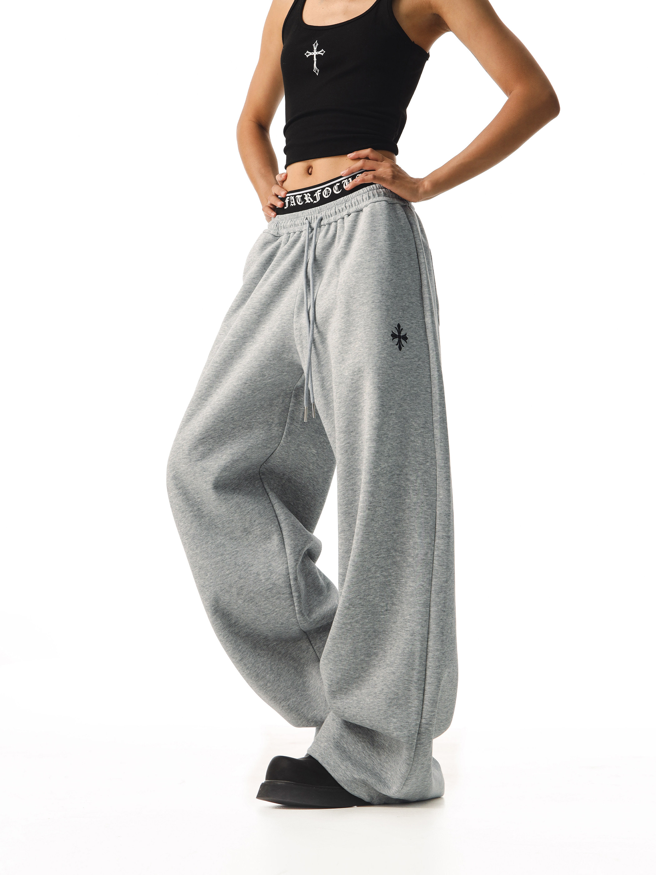 Ctb Beer Captain American-Style Faux Two-Piece Double-Waist Drape Sweatpants for Women, Loose, Lazy, Wide-Leg, Straight-Leg Casual Pants
