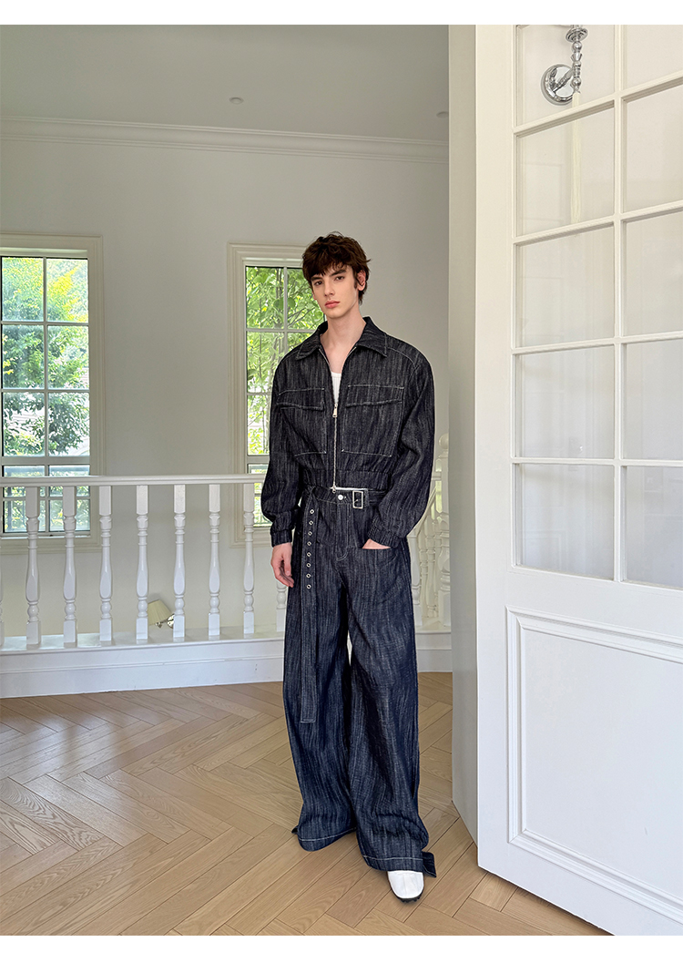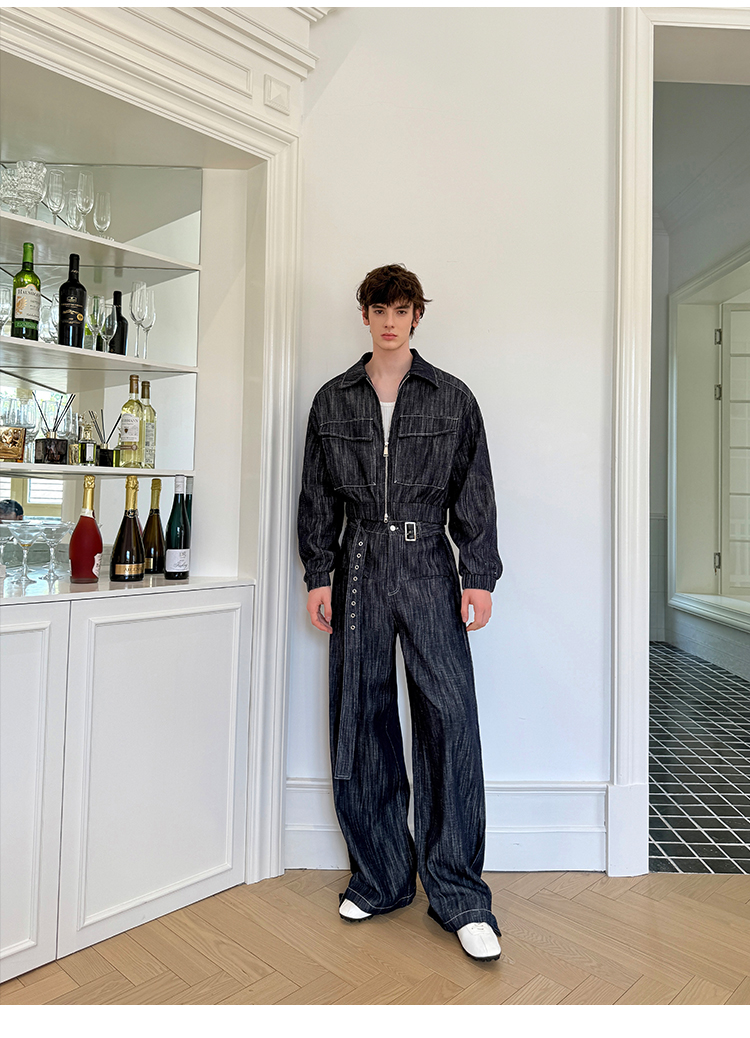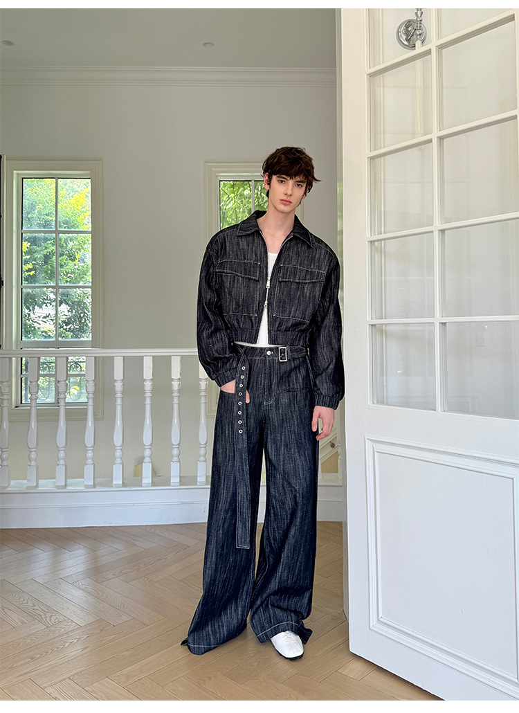 It7「Knight Badge」Retro Style Personalized Suit Short Jacket Wide-Leg Pants