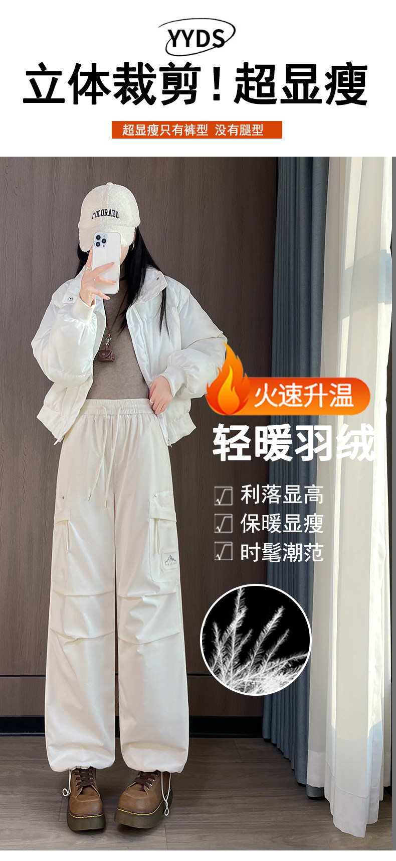 Workwear down Pants for Women, Winter Outerwear, 2025 New Style, Suitable for Temperatures as Low as Minus 40 Degrees, Fashionable Ski Fleece-Lined Warm Cotton Pants