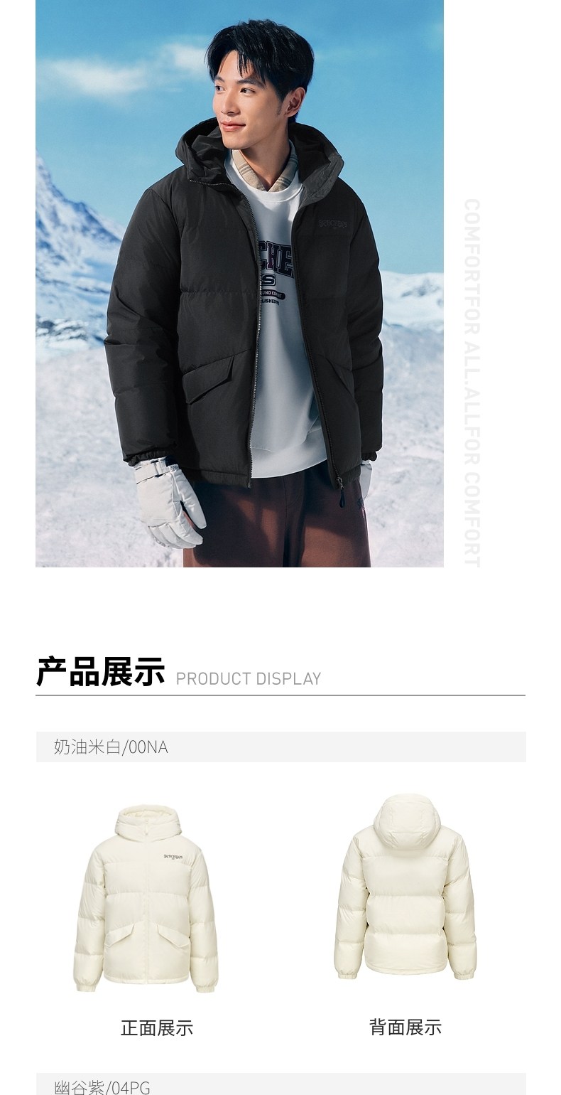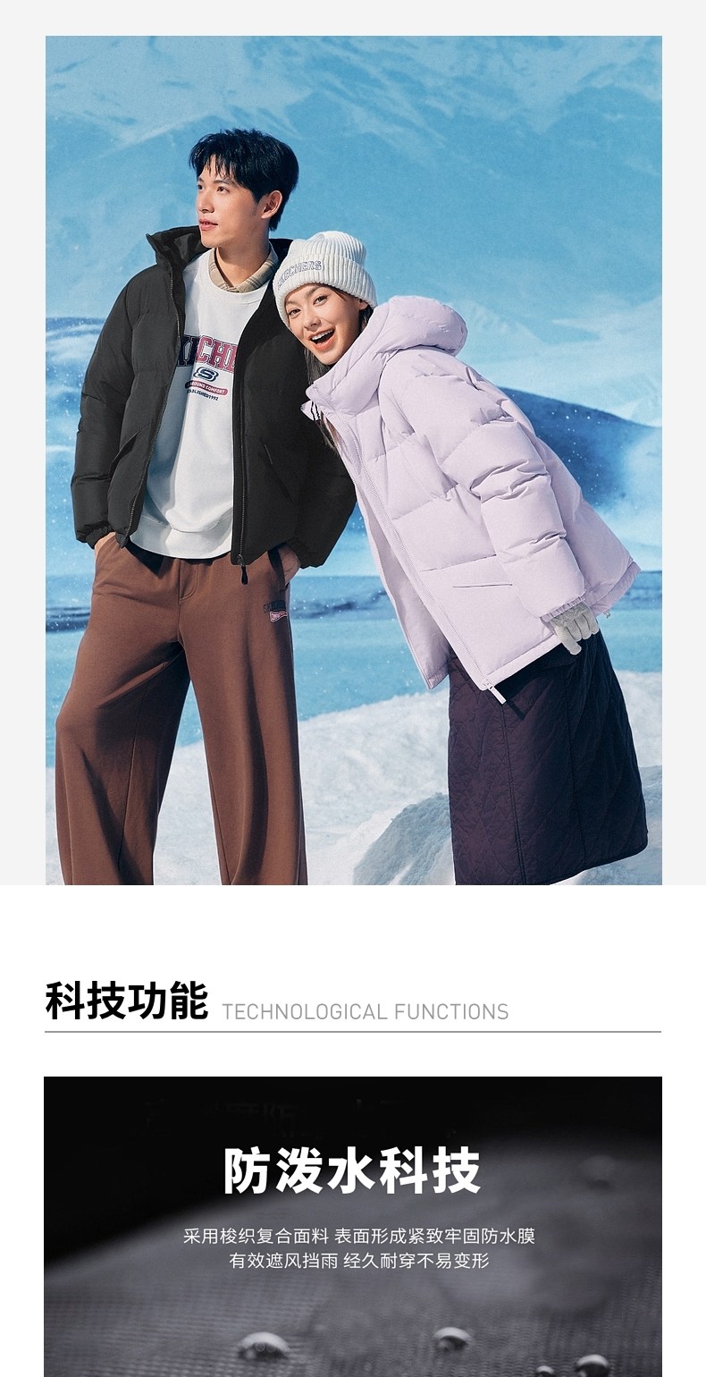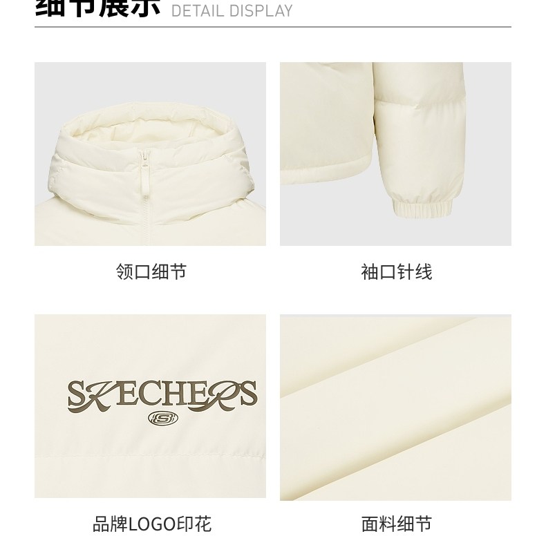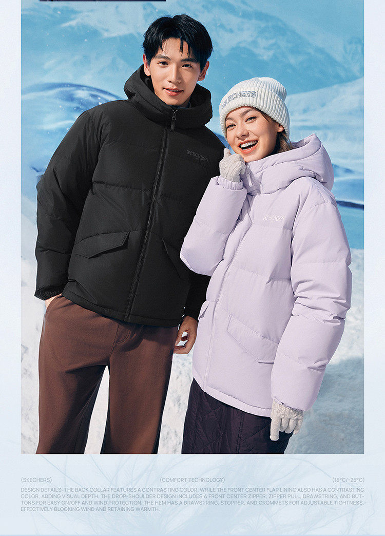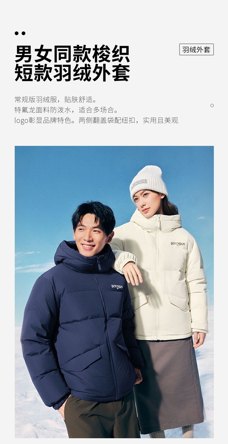 Skechers Official Outlets Autumn and Winter down Jackets for Couples, New Short Style with Hood, Warm and Windproof