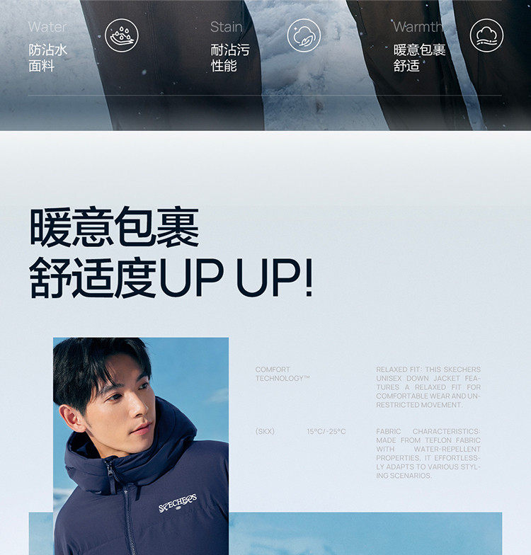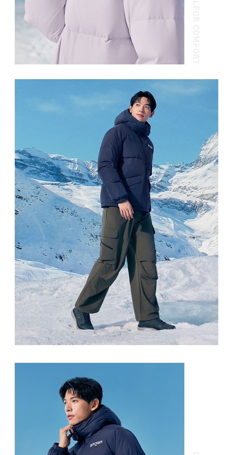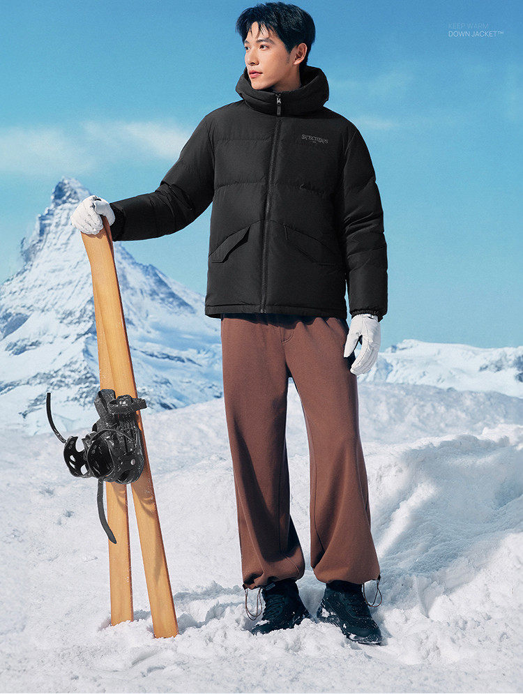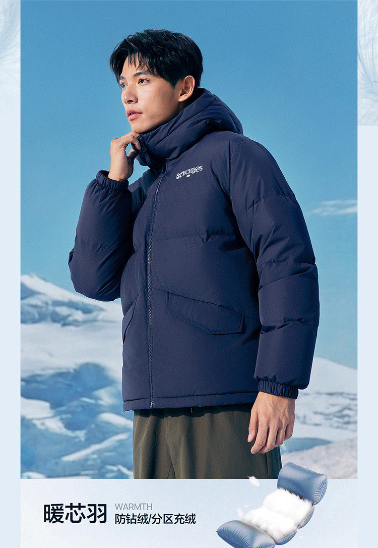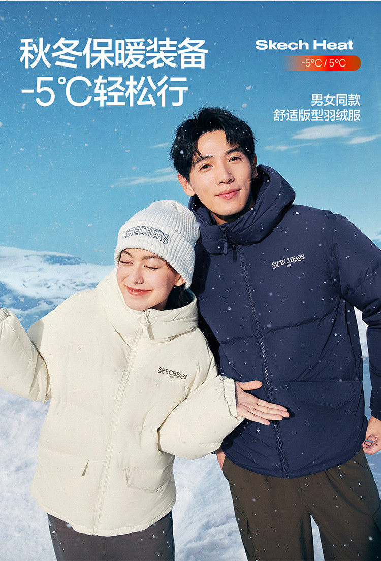 Skechers Official Outlets Autumn and Winter down Jackets for Couples, New Short Style with Hood, Warm and Windproof