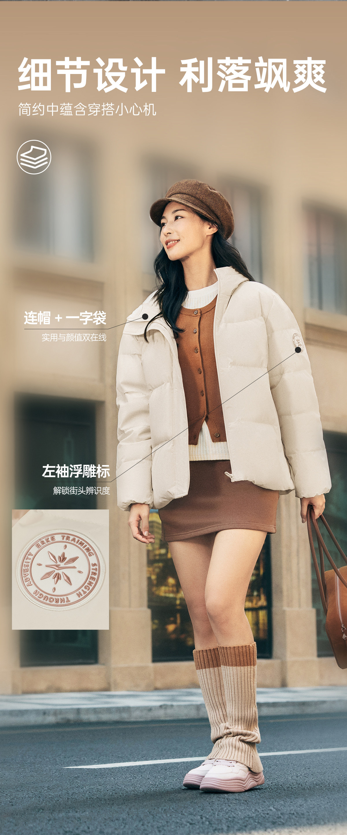 Hongxing Erke Women's down Jacket 2025 Winter New Women's Three-Proof Sports Puffer Jacket Short Cotton Coat