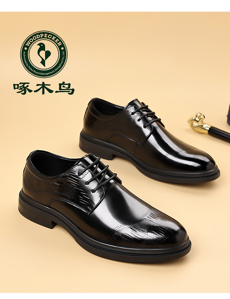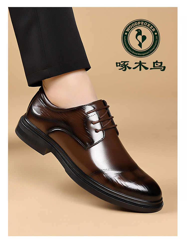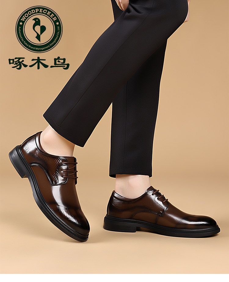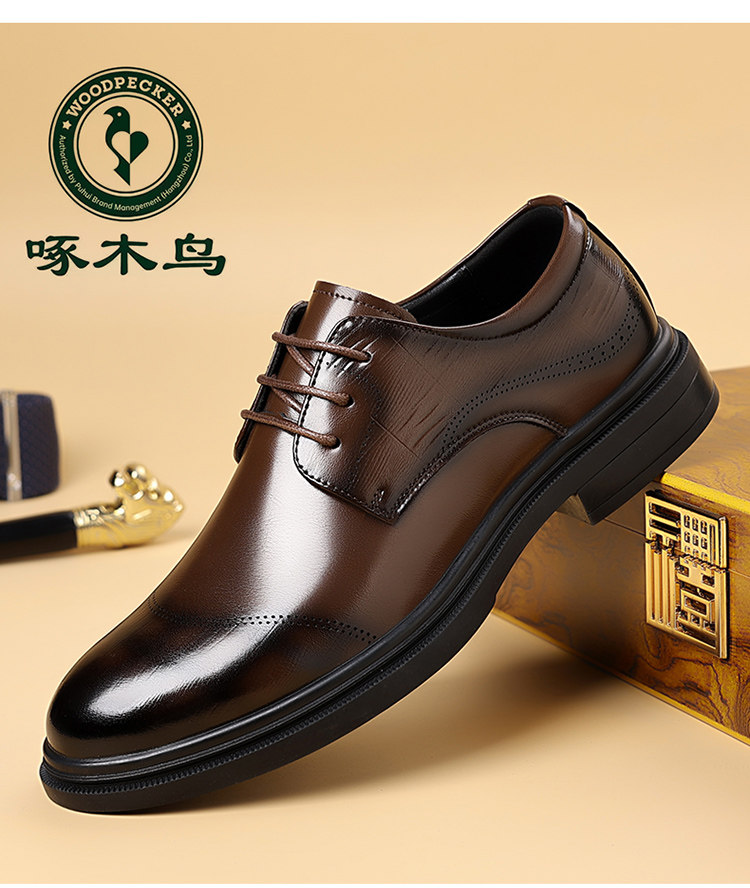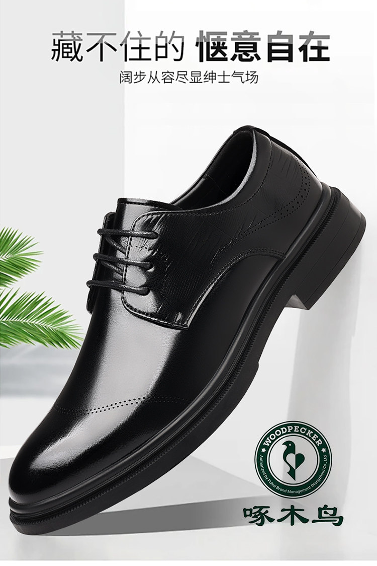 Woodpecker Leather Shoes Men's Genuine Leather New Breathable Business Formal Shoes Men's Casual Non-Slip Soft Leather Dad Shoes