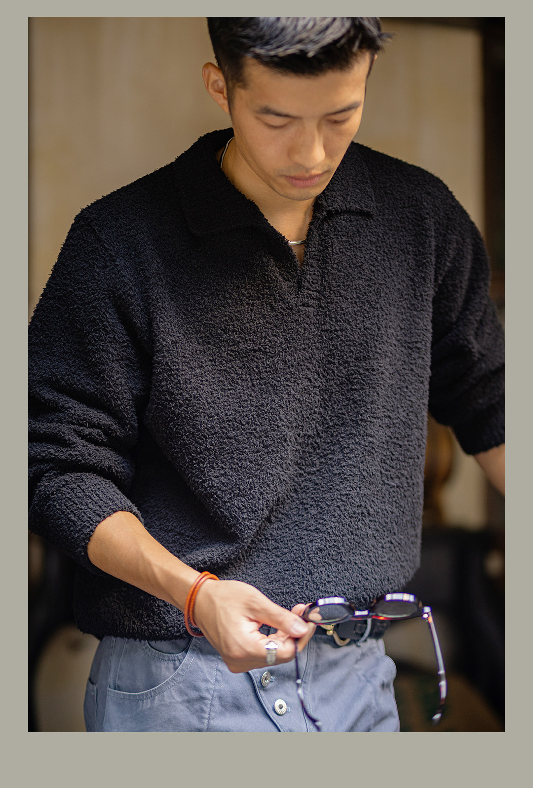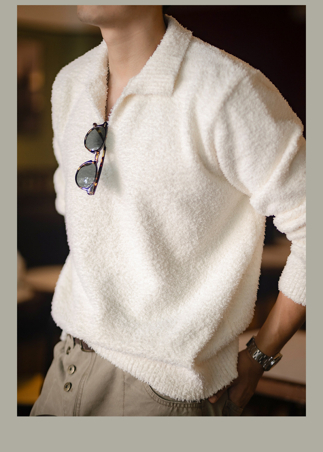 Uncle Gu's Seagull Collar Lazy Sweater for Men, New Spring and Autumn Long-Sleeve Pullover, Soft Knitted Base Shirt