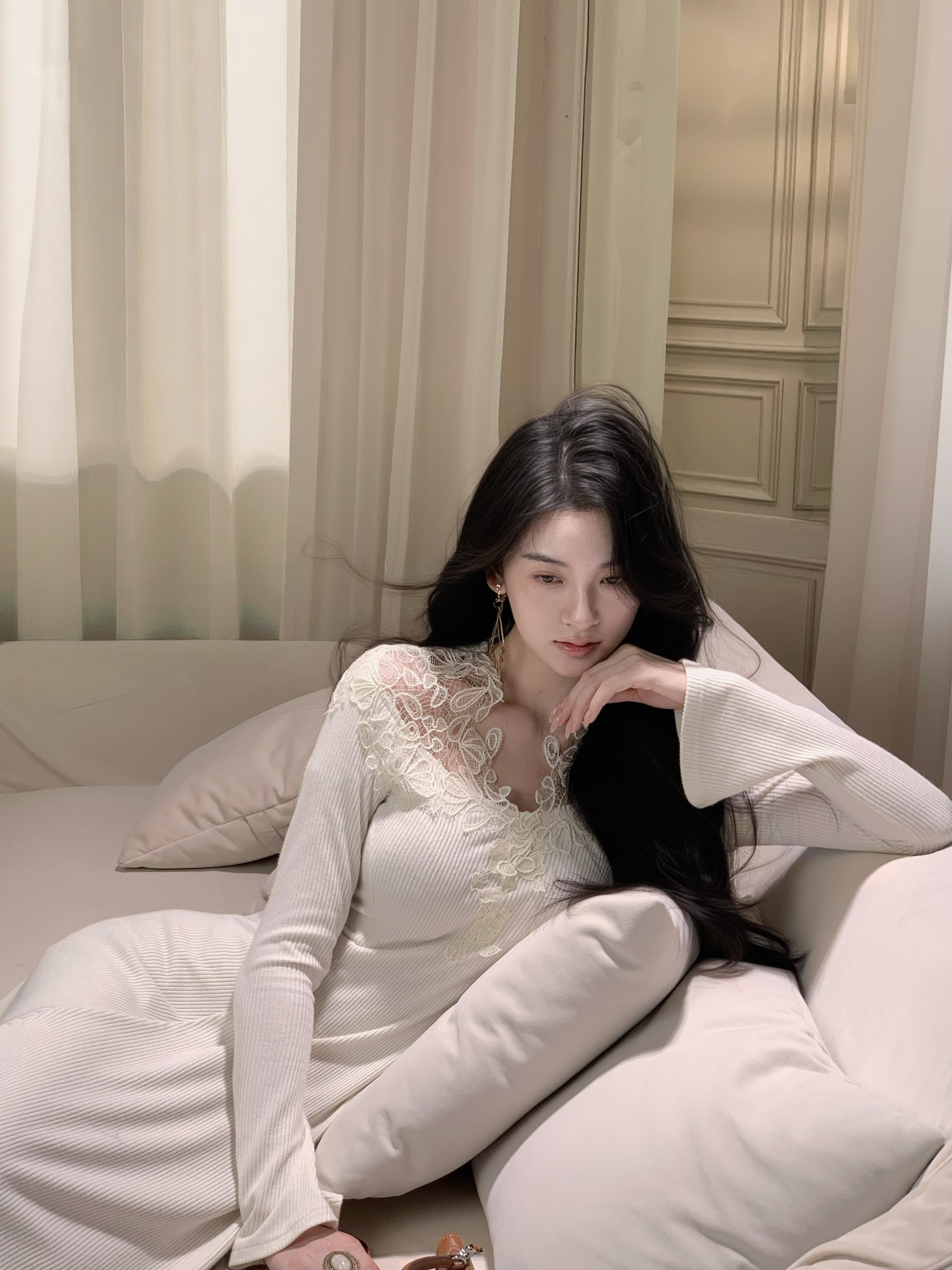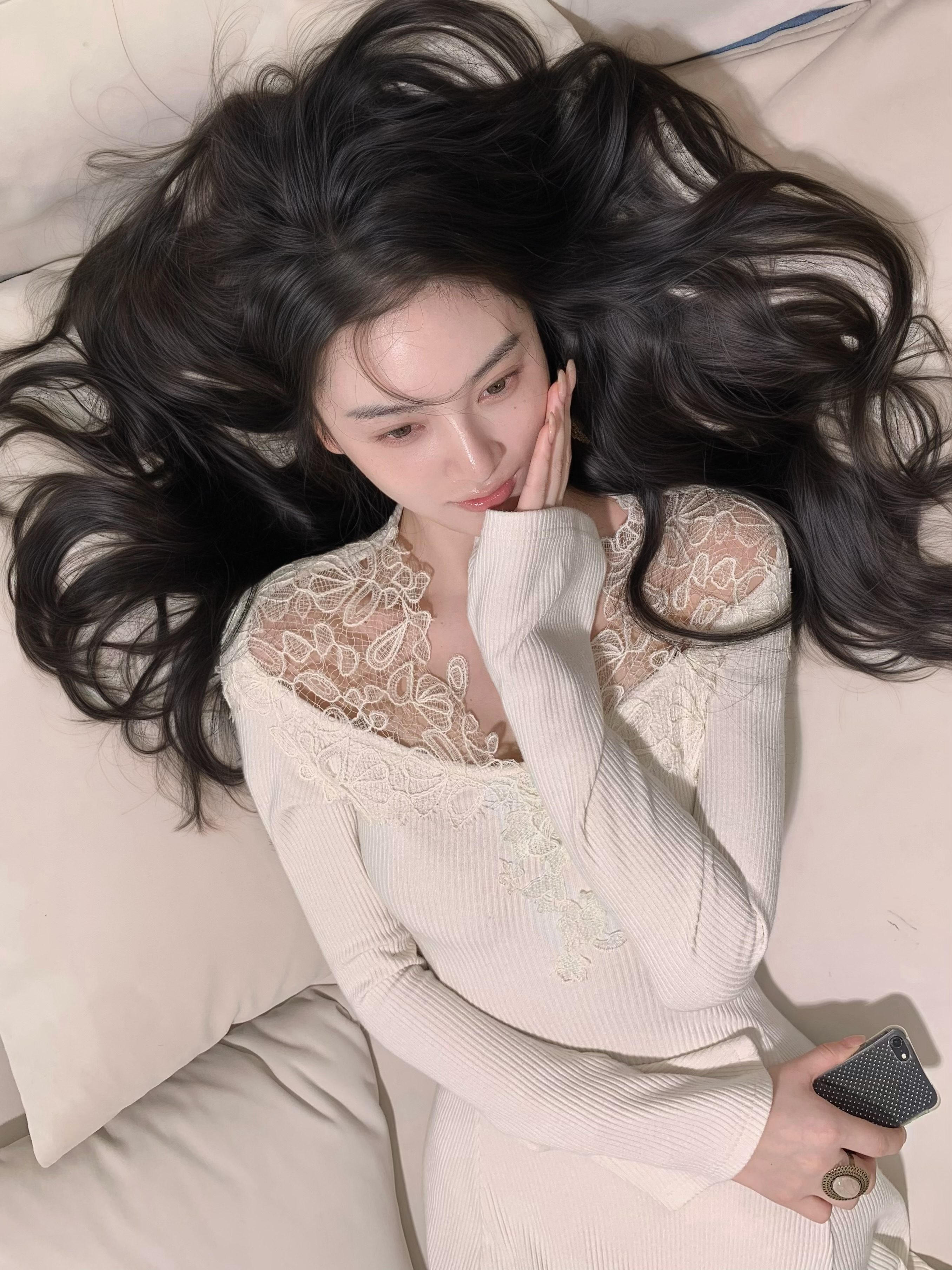 V领拼接蕾丝——纯欲交织,勾勒锁骨间的温柔心机