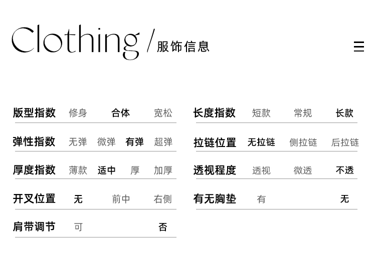 衣身前后从腋下延伸两道精准弧形分割线,顺势勾勒胸腰过渡的自然曲线