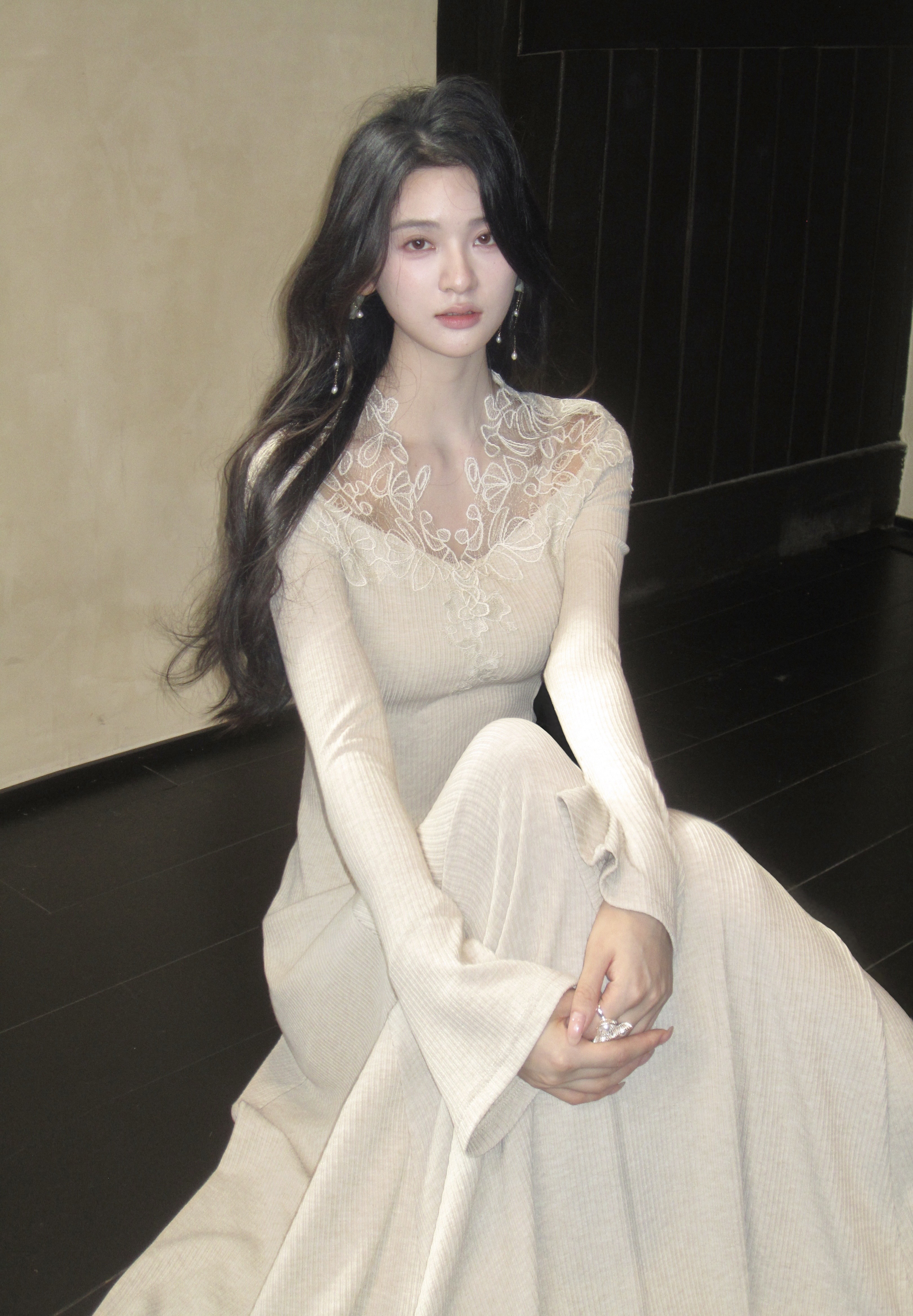 下摆自然垂坠形成柔美褶皱,行走时裙幅随步伐摇曳