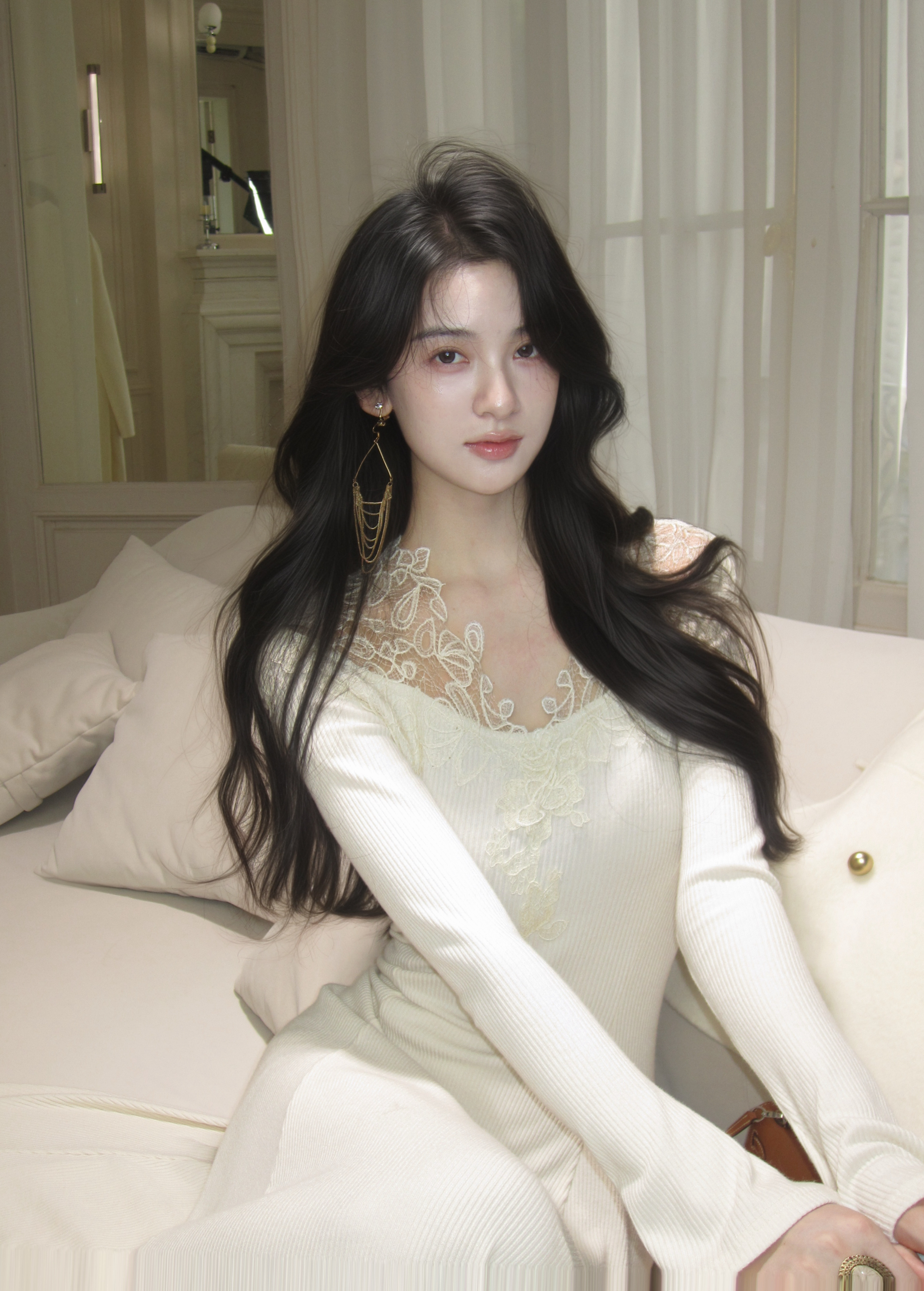 转身侧目间,尽显优雅与微甜的交织魅力。
