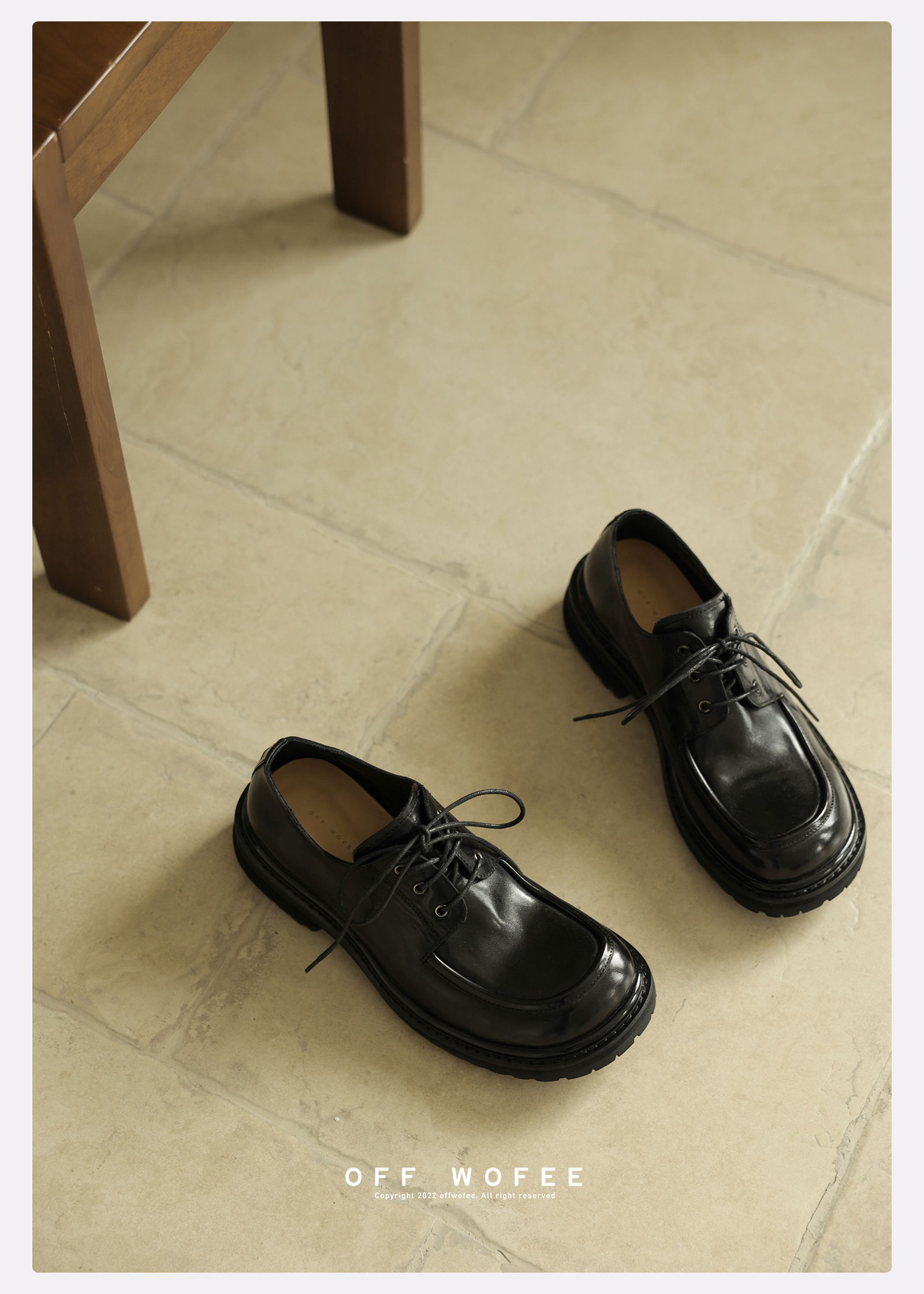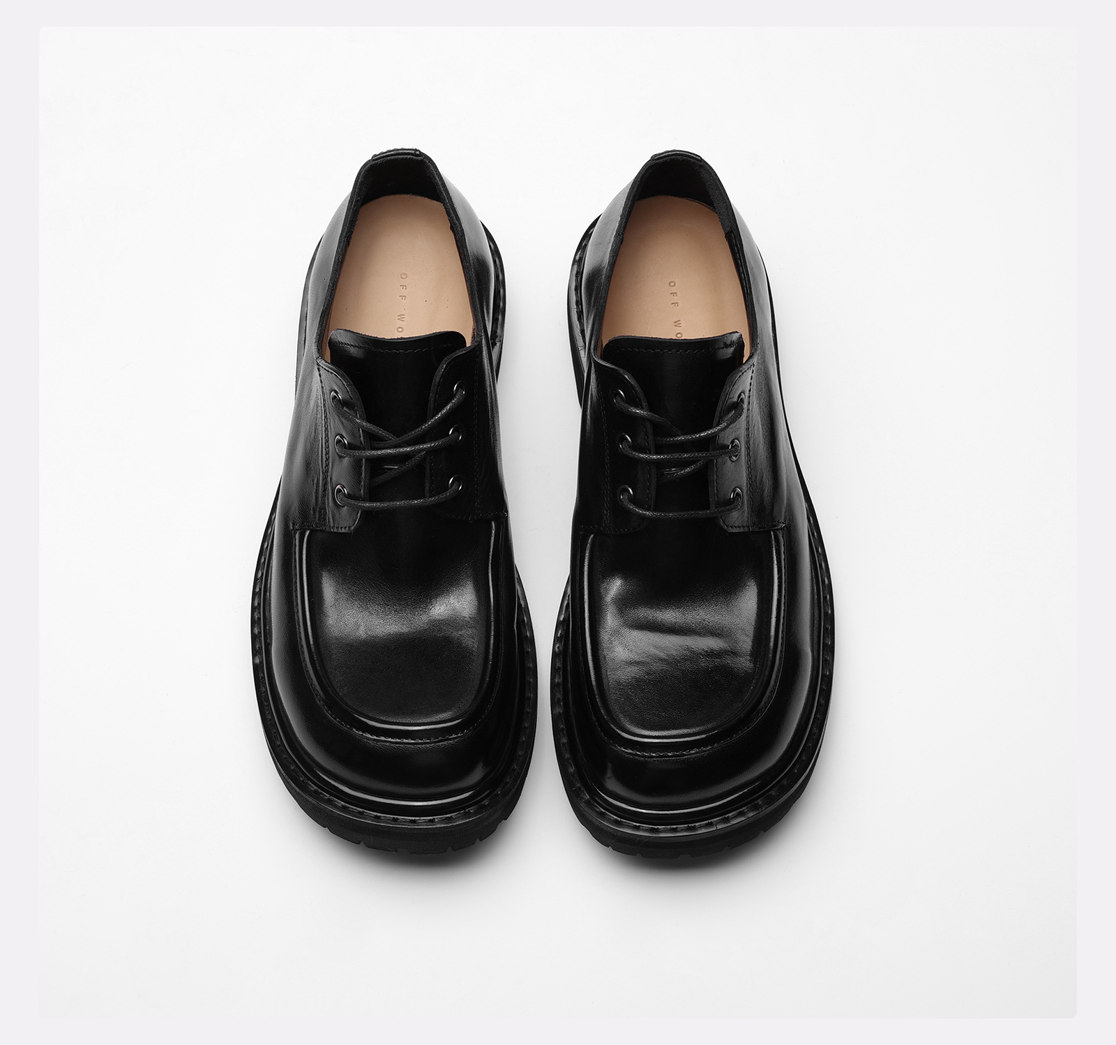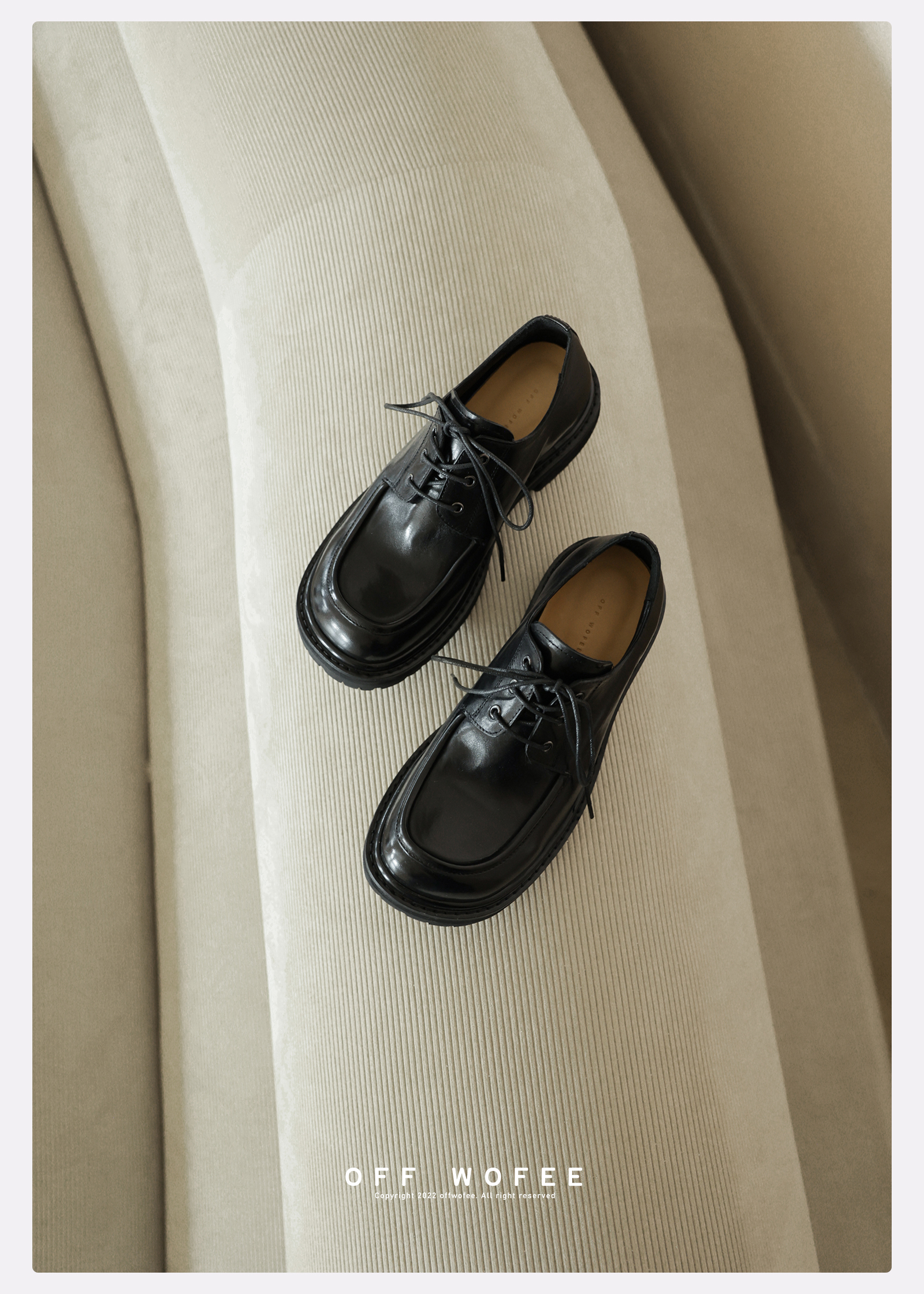 OFFWOFEE Height-Increasing Platform Shoes Leather Shoes Horse Leather cleanfit British Retro Square Toe Shoes Black Derby Shoes