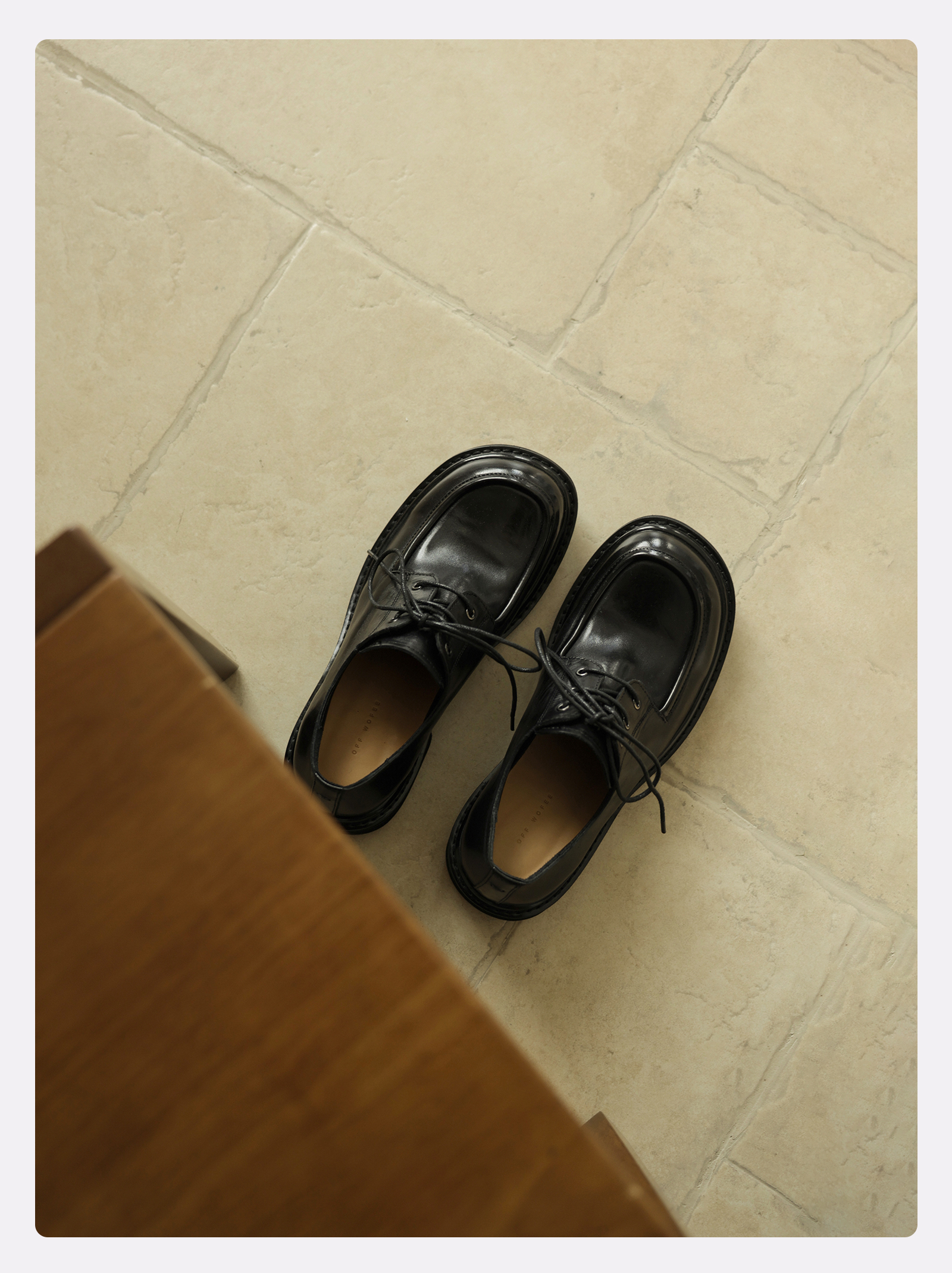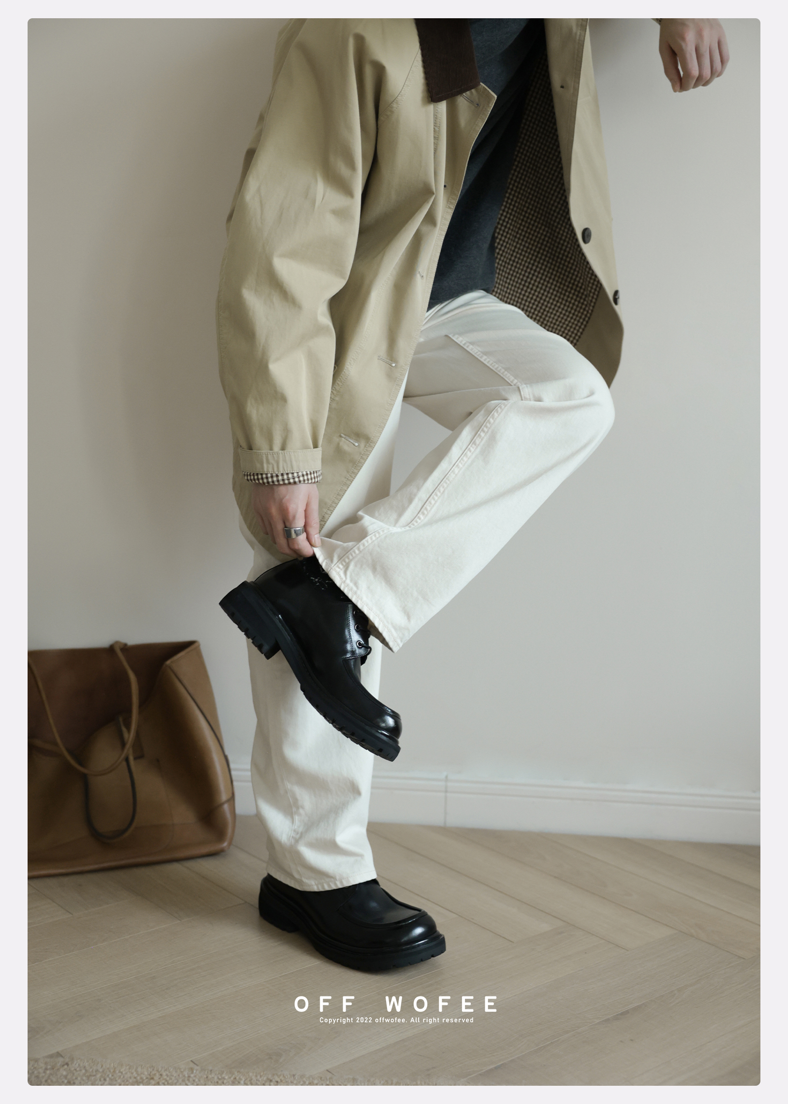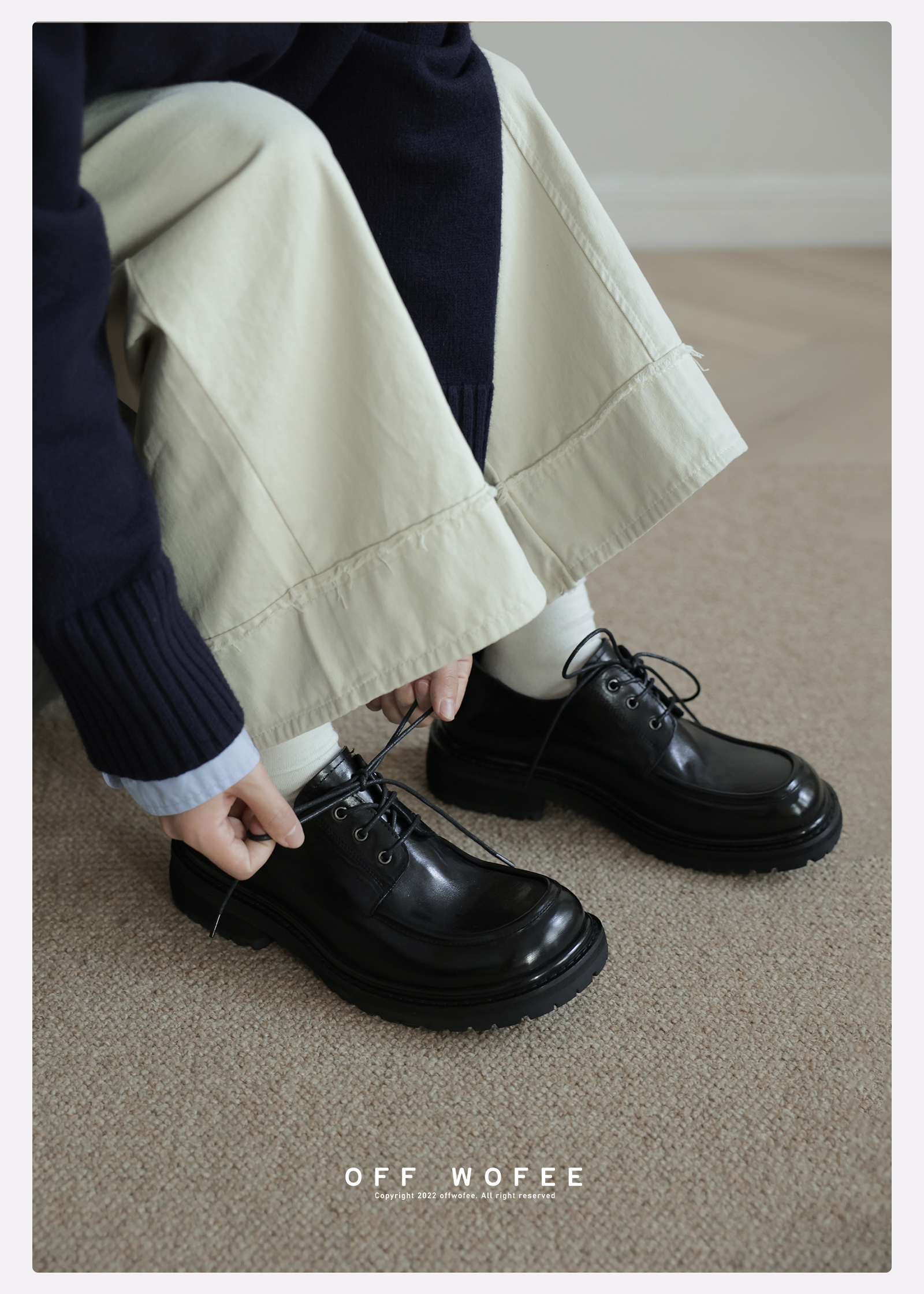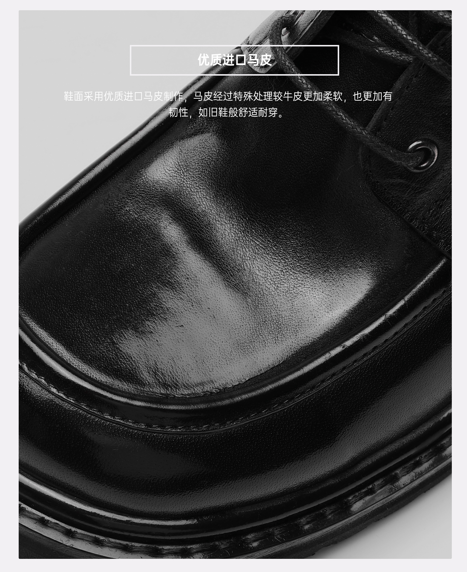 OFFWOFEE Height-Increasing Platform Shoes Leather Shoes Horse Leather cleanfit British Retro Square Toe Shoes Black Derby Shoes