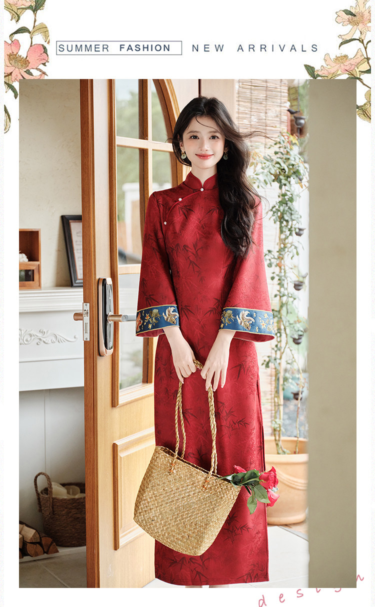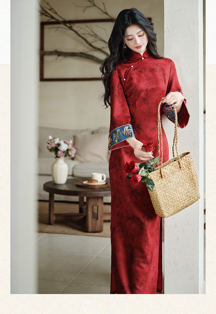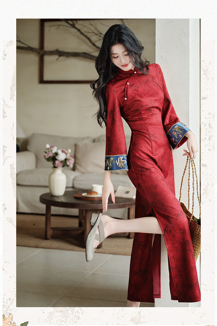 Harside New Chinese-Style Retro Red Improved Cheongsam Dress Is Elegant, Graceful, Stunningly Beautiful, and Exudes a High-Class and Refined Aura