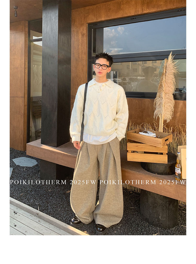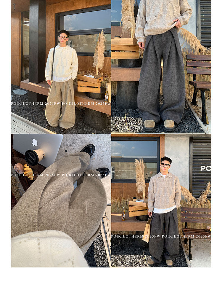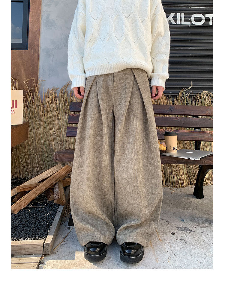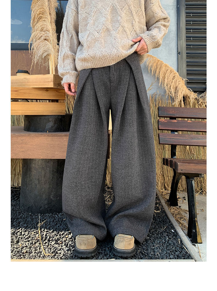 Plth* High-End Thin Woolen Straight-Leg Casual Pants with a Luxurious Feel, Versatile for Winter, Loose and Drapey, Old Money Style Trousers