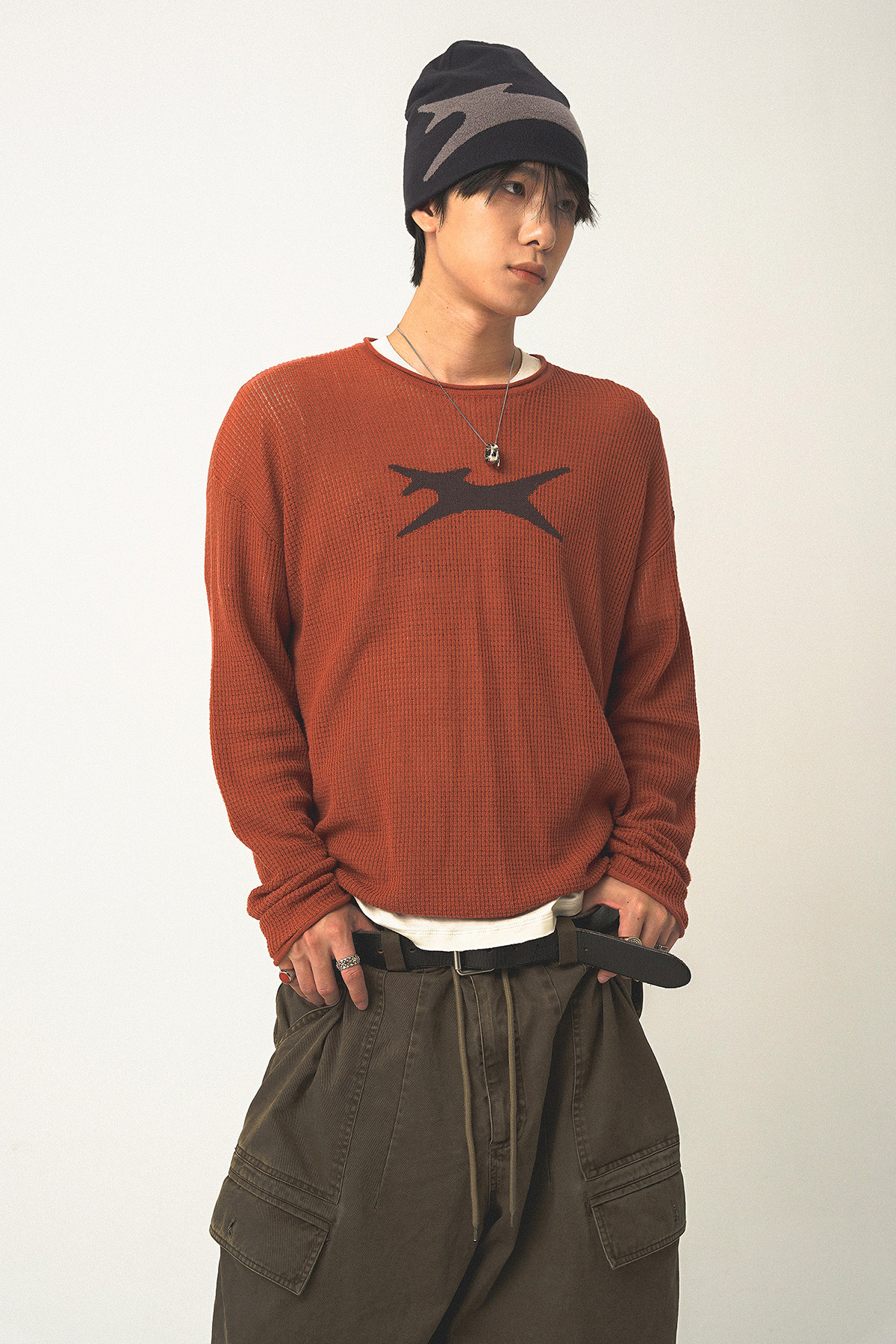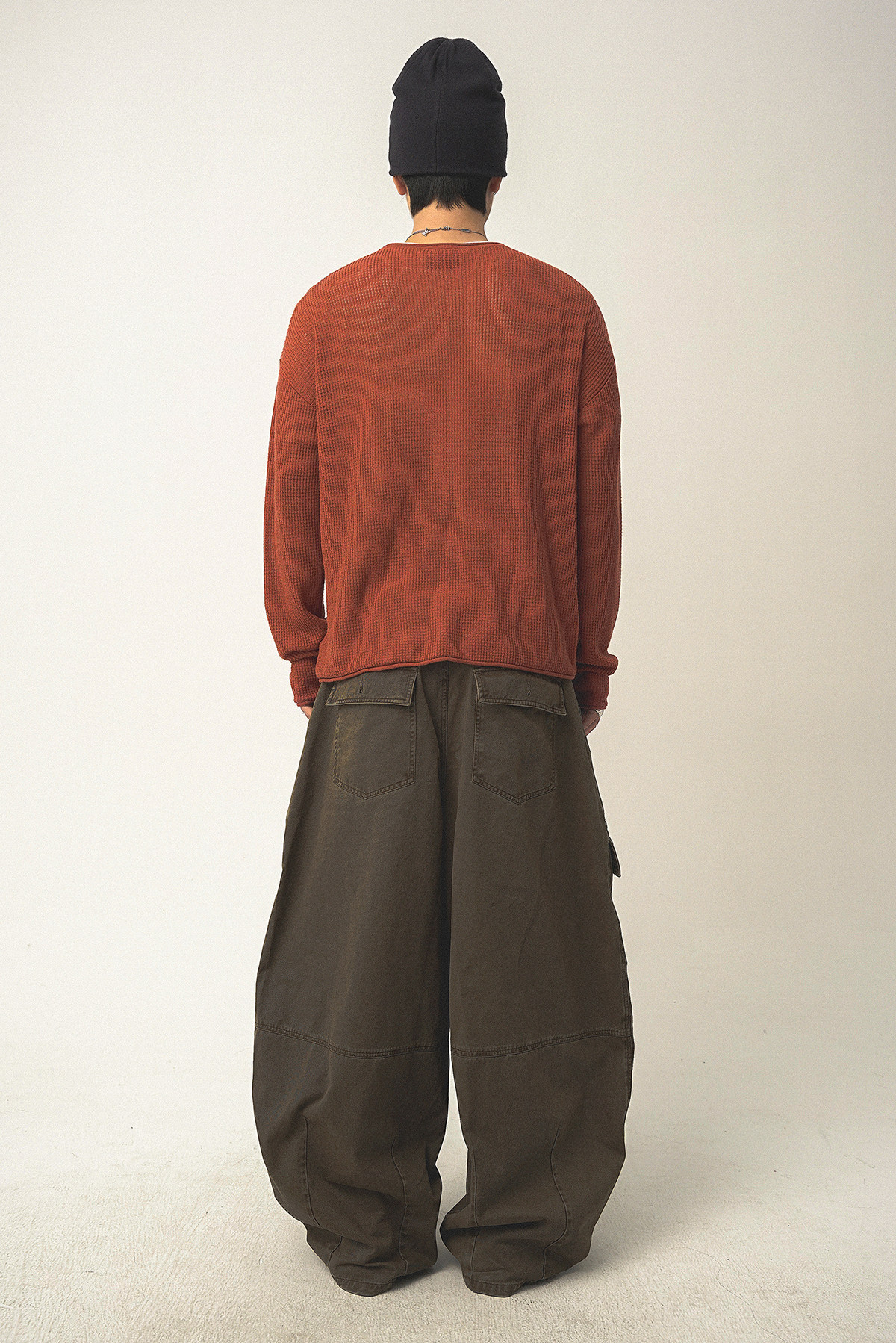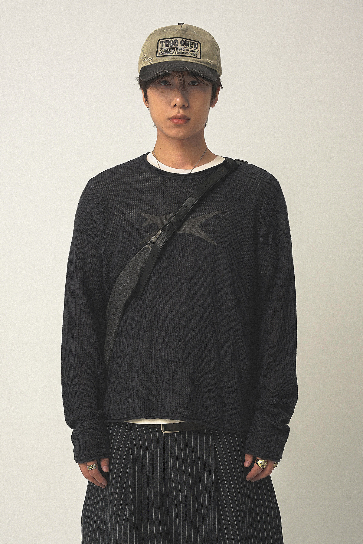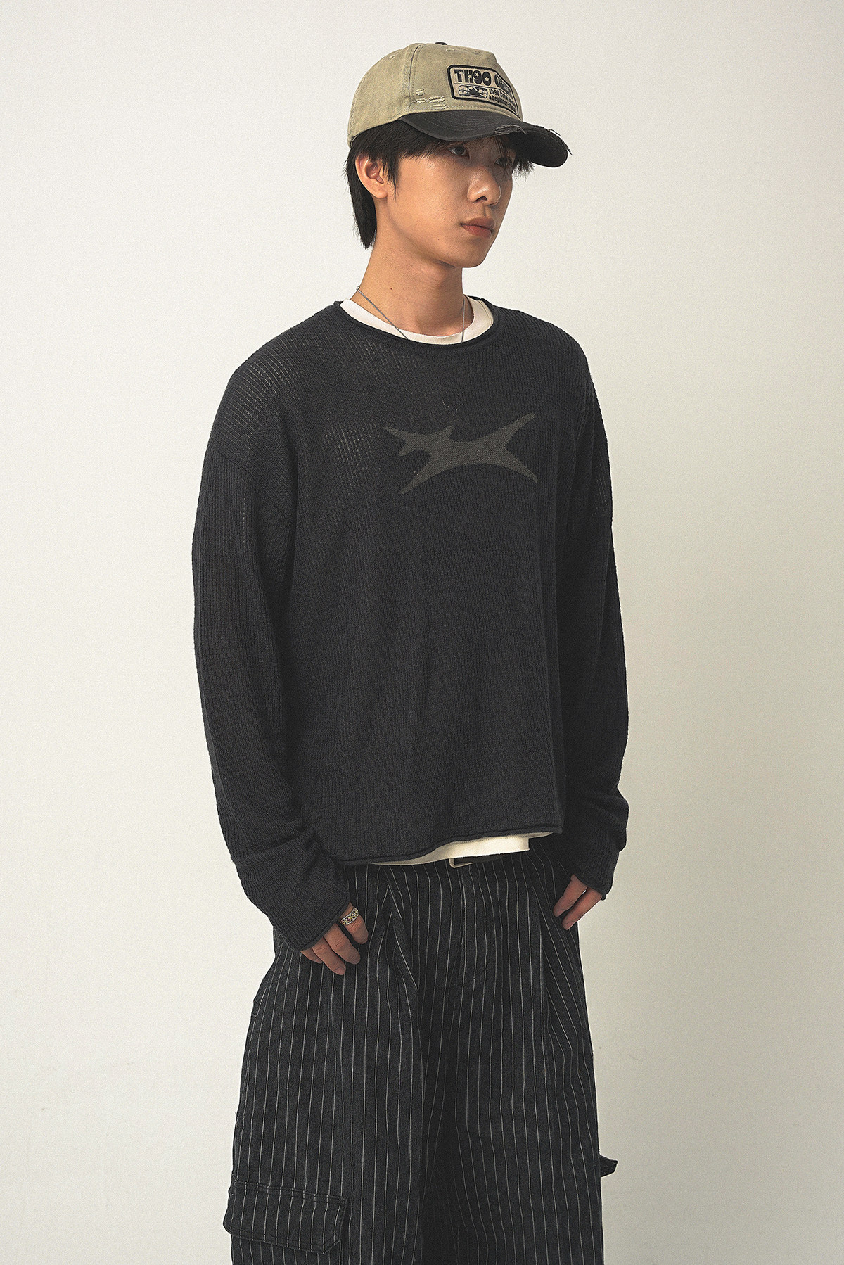 Th90 25Fw Waffle Texture Knitted Sweater Loose Long-Sleeved T-Shirt