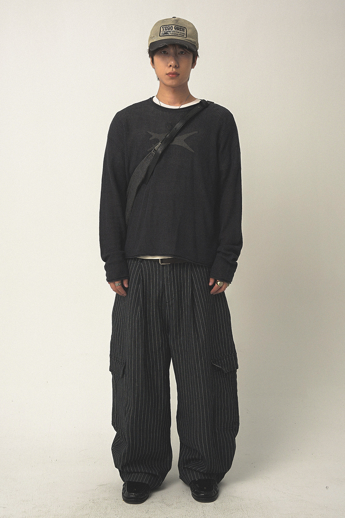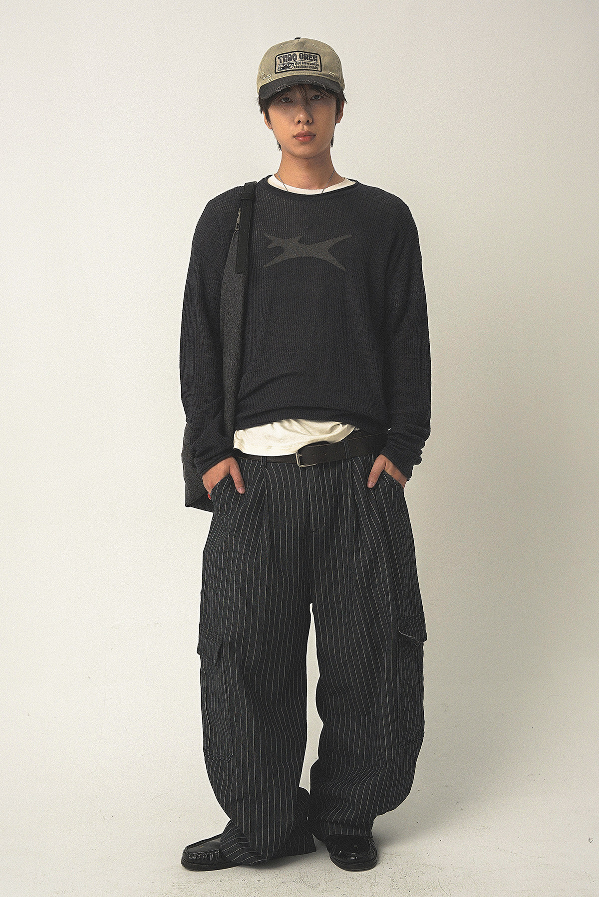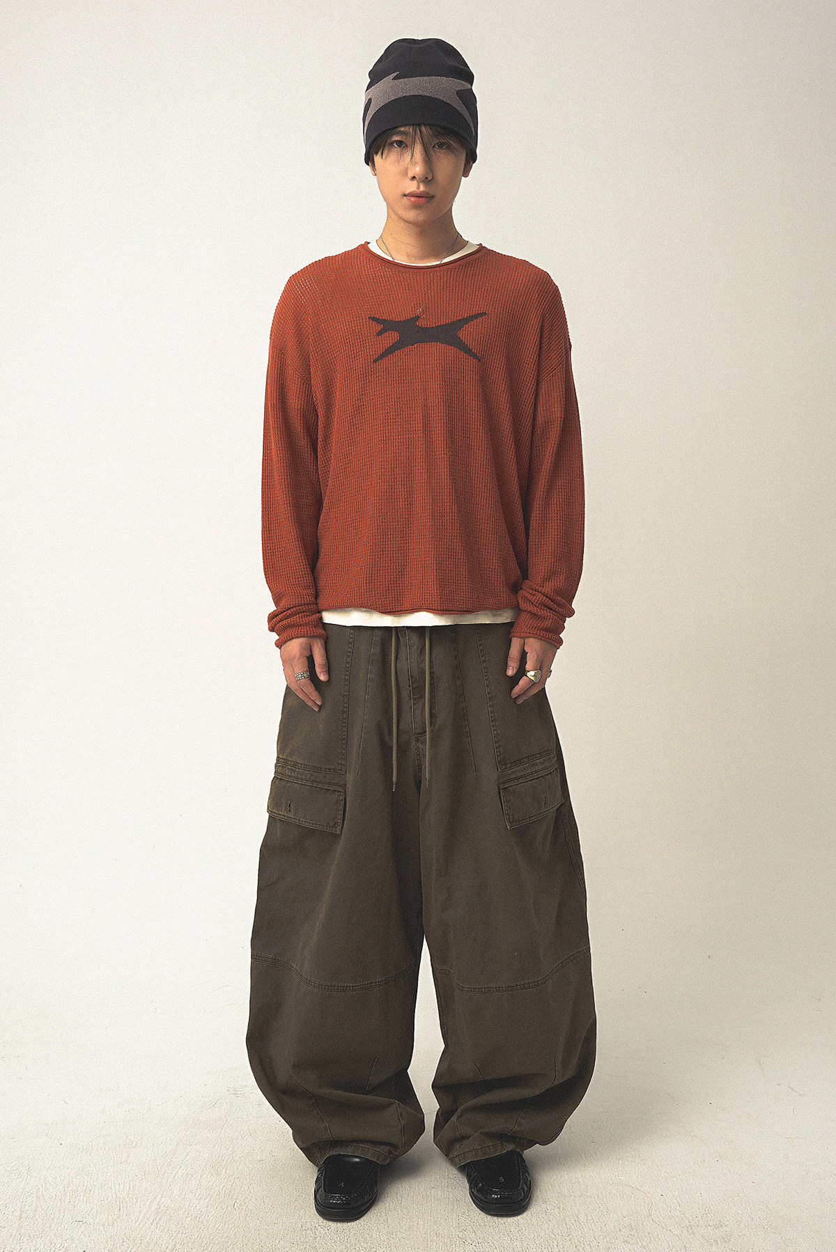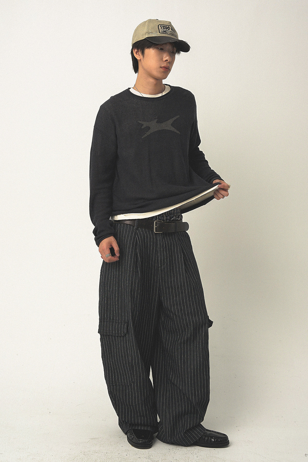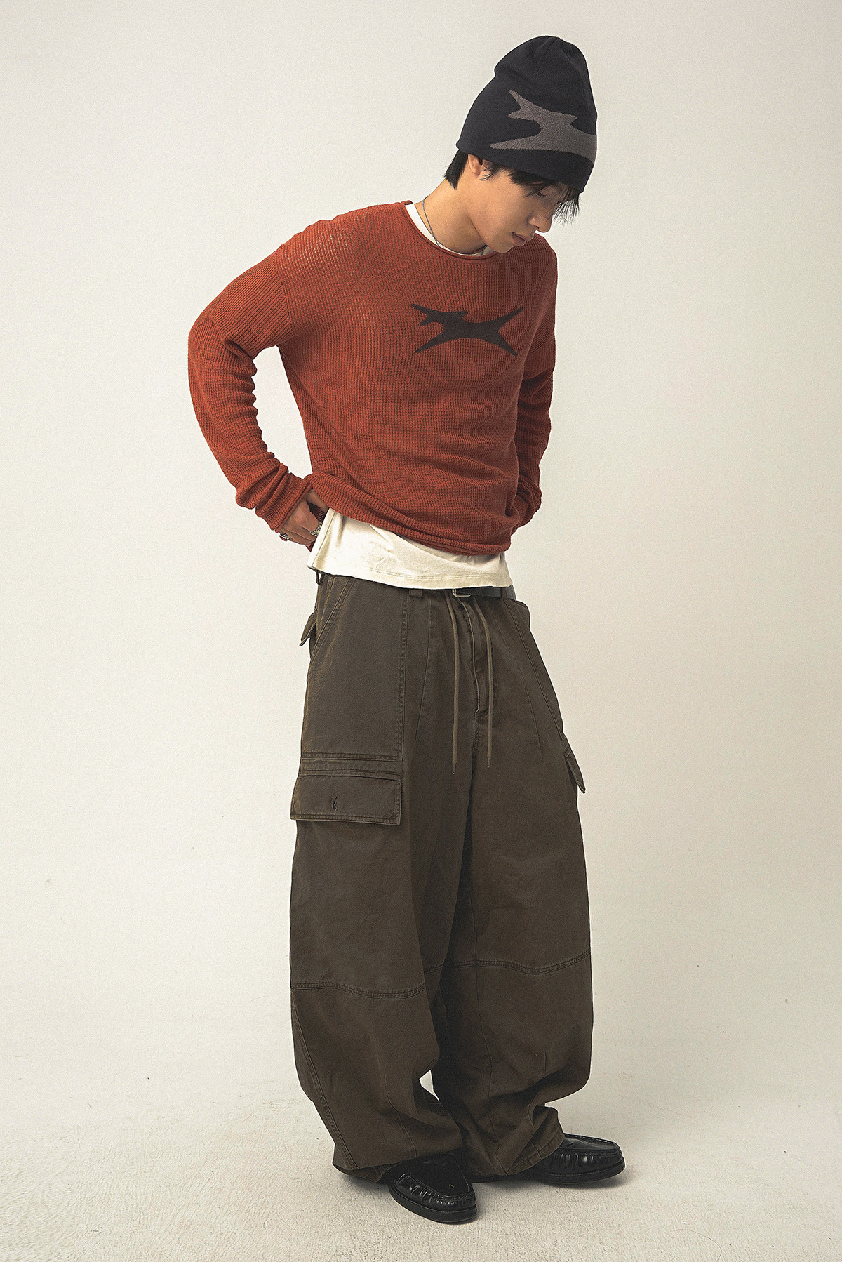 Th90 25Fw Waffle Texture Knitted Sweater Loose Long-Sleeved T-Shirt