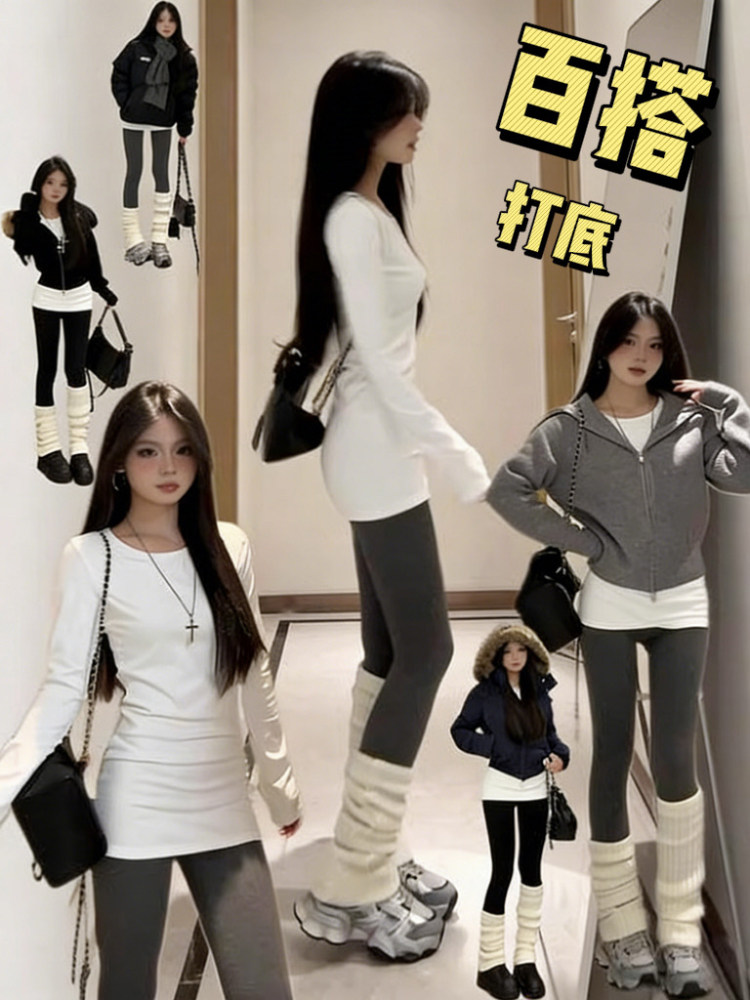 White Inner Layer Base Shirt, Mid-Length, Covers the Buttocks, Women's Slim-Fit Waist-Cinching Top, Hip-Hugging, 2025 New Winter Style with Fleece Lining