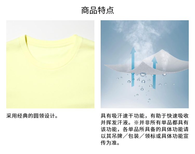 Uniqlo Men's and Women's Quick-Drying Round-Neck T-Shirt/Short-Sleeve 482300