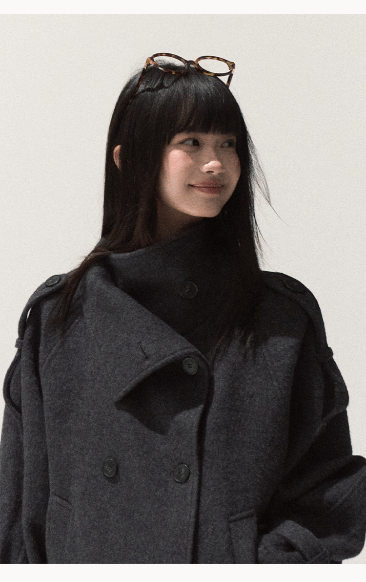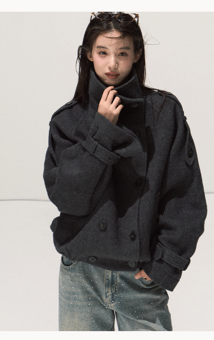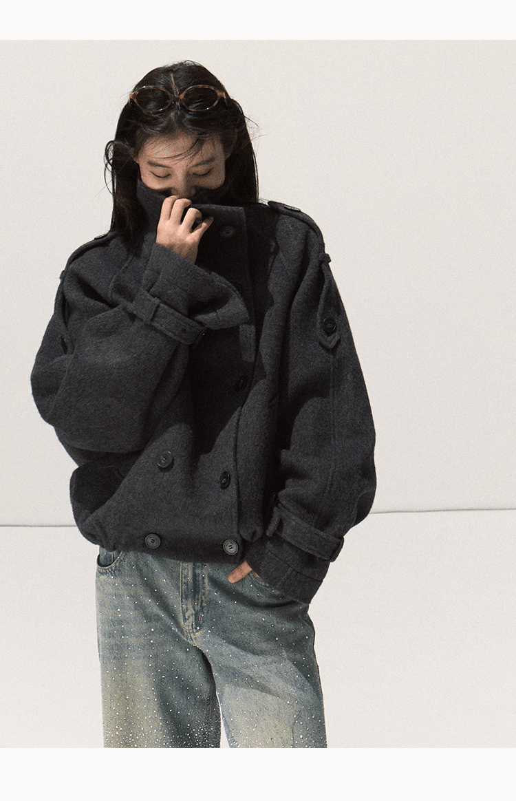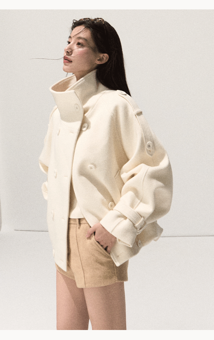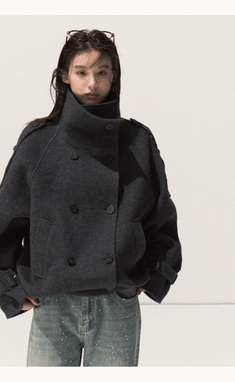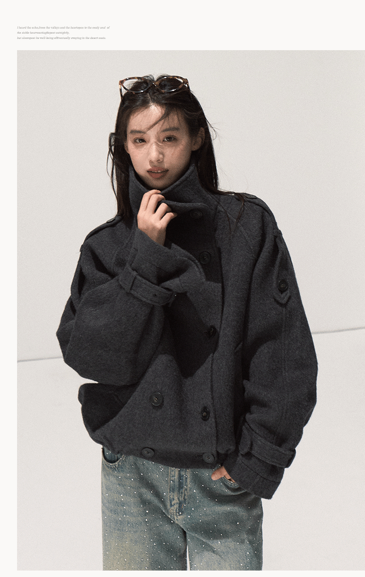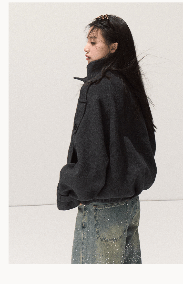 Oakmoo/ "Through the Oak Forest" Winter Heavy Wool Silhouette Stand-Up Collar Woolen Outwear Short Woolen Coat