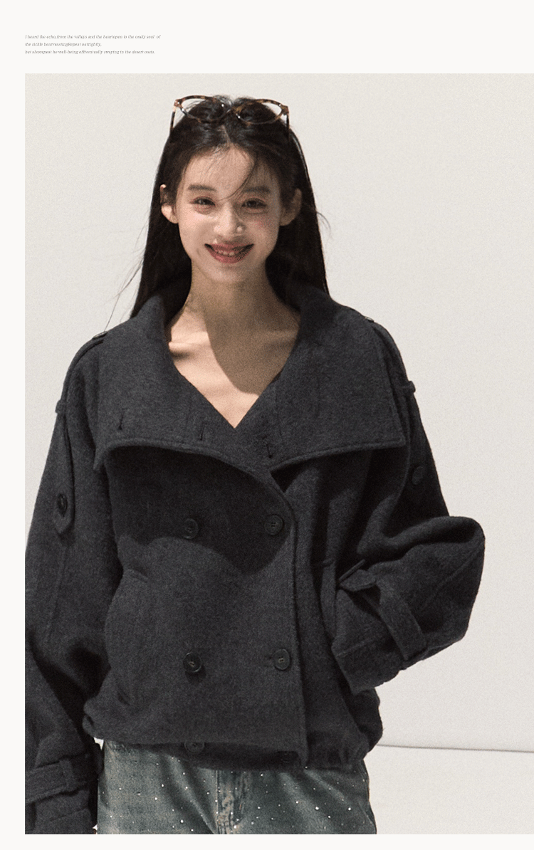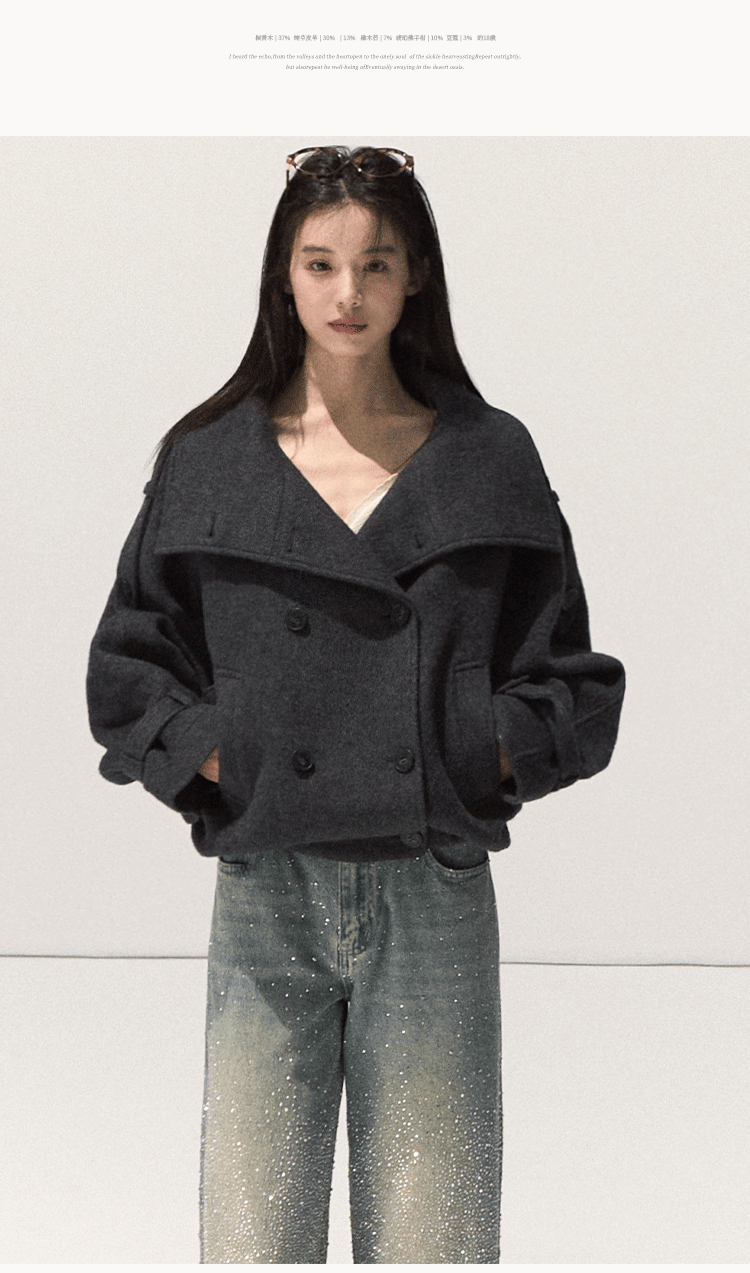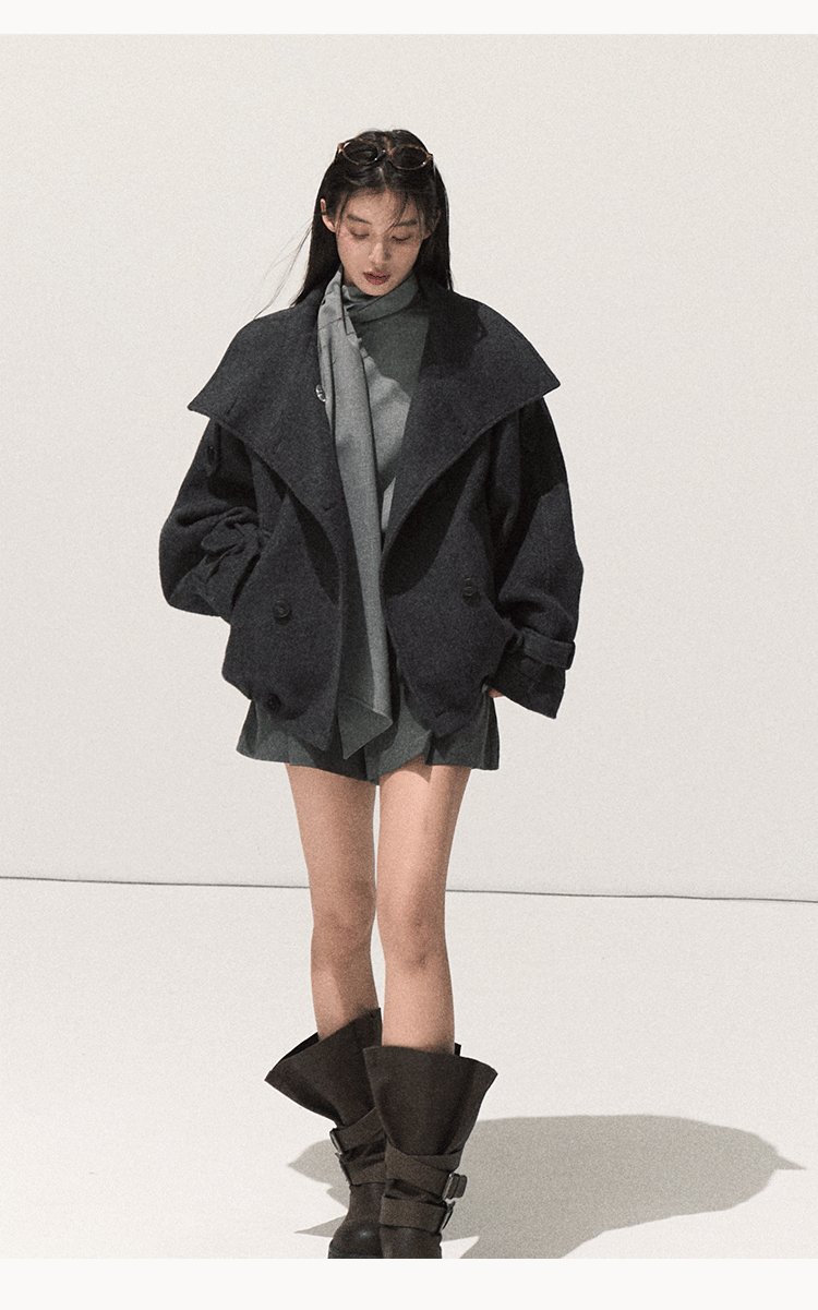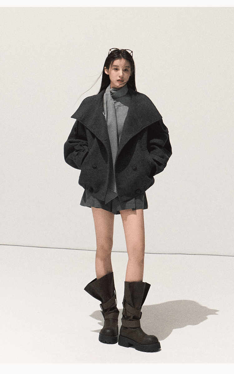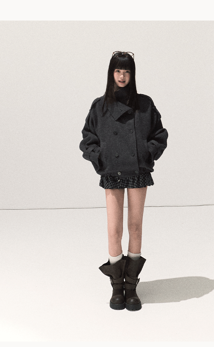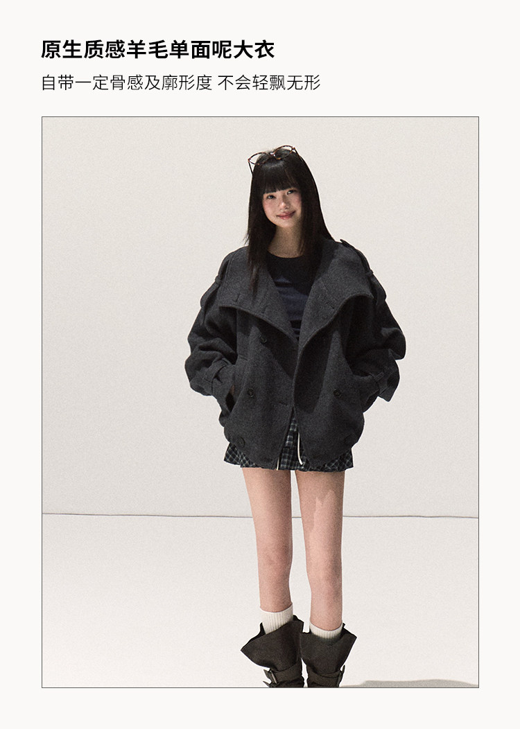Oakmoo/ "Through the Oak Forest" Winter Heavy Wool Silhouette Stand-Up Collar Woolen Outwear Short Woolen Coat