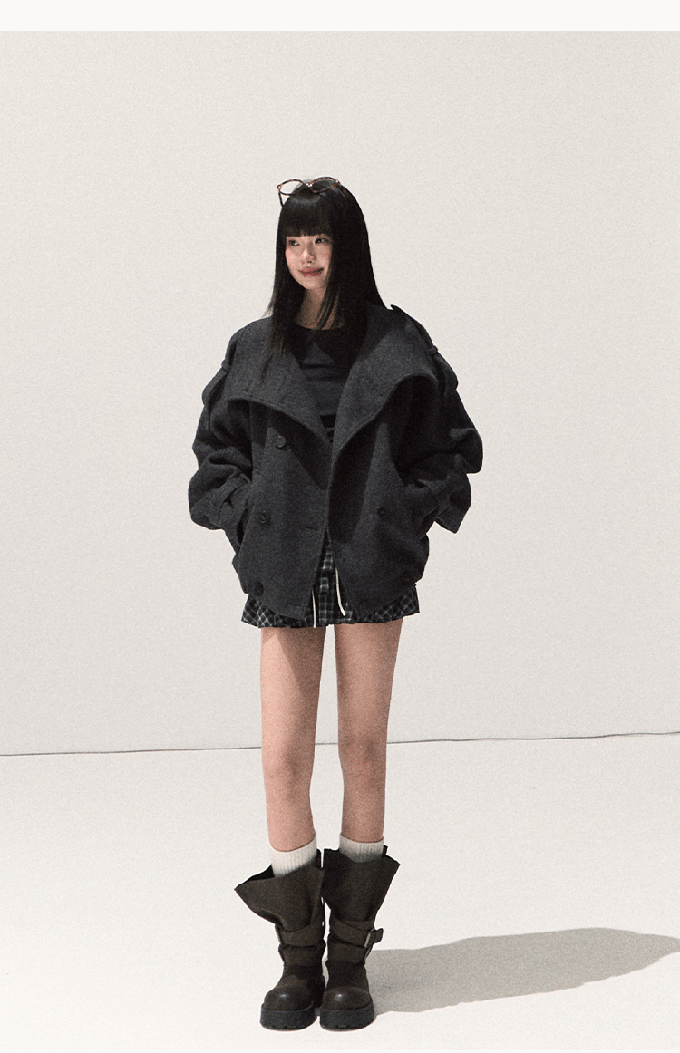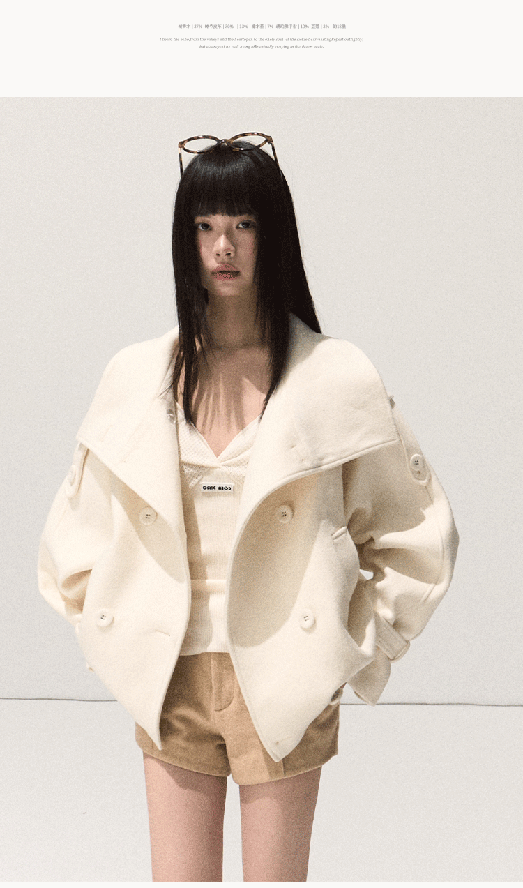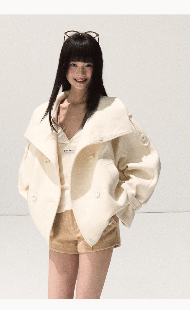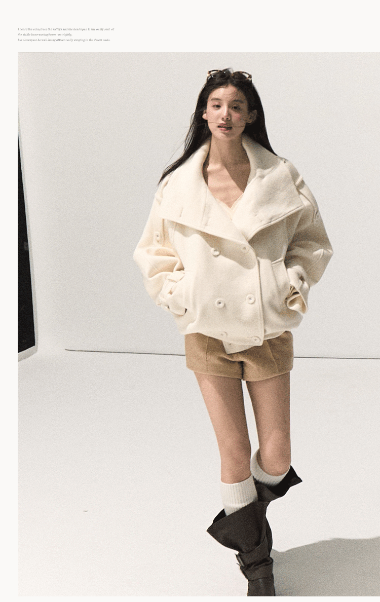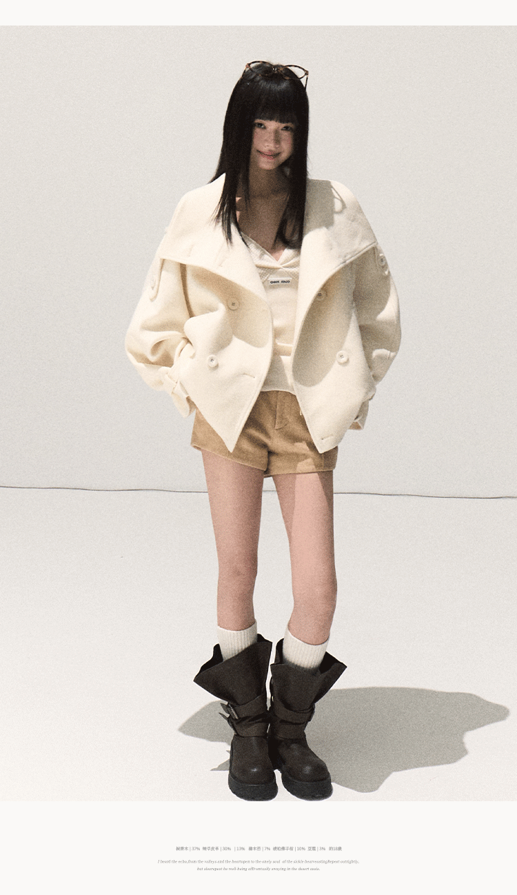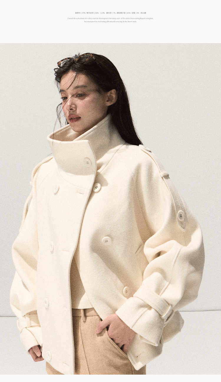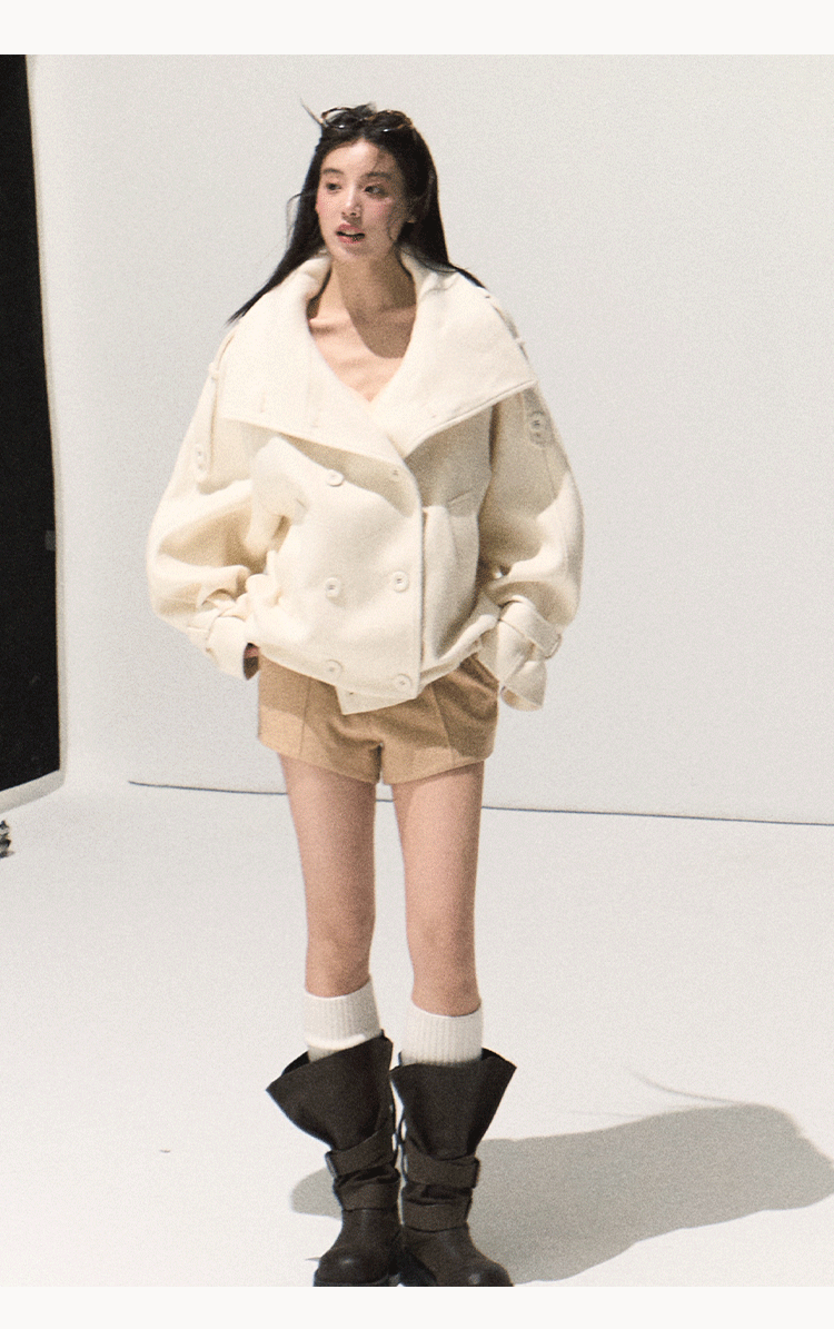 Oakmoo/ "Through the Oak Forest" Winter Heavy Wool Silhouette Stand-Up Collar Woolen Outwear Short Woolen Coat