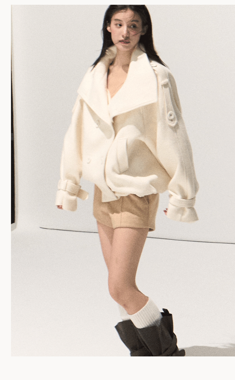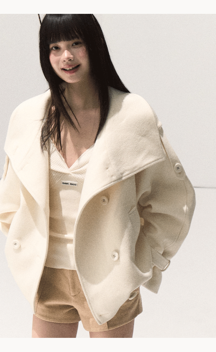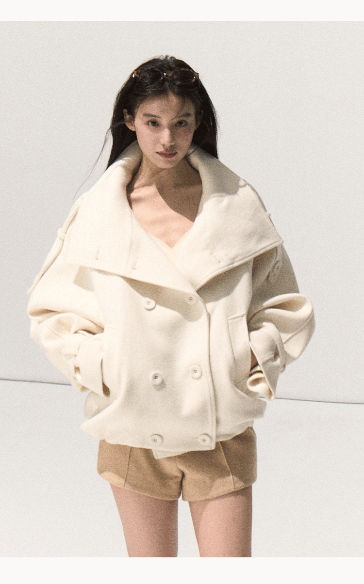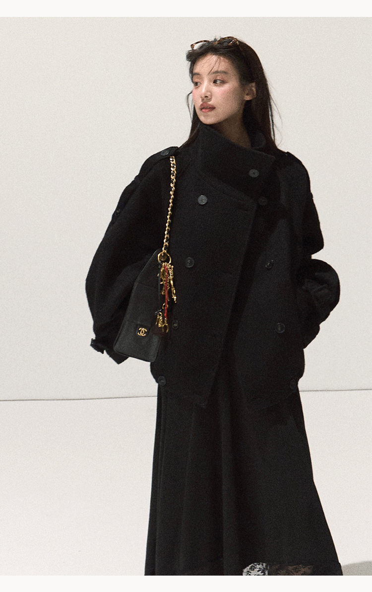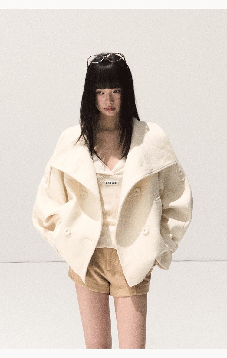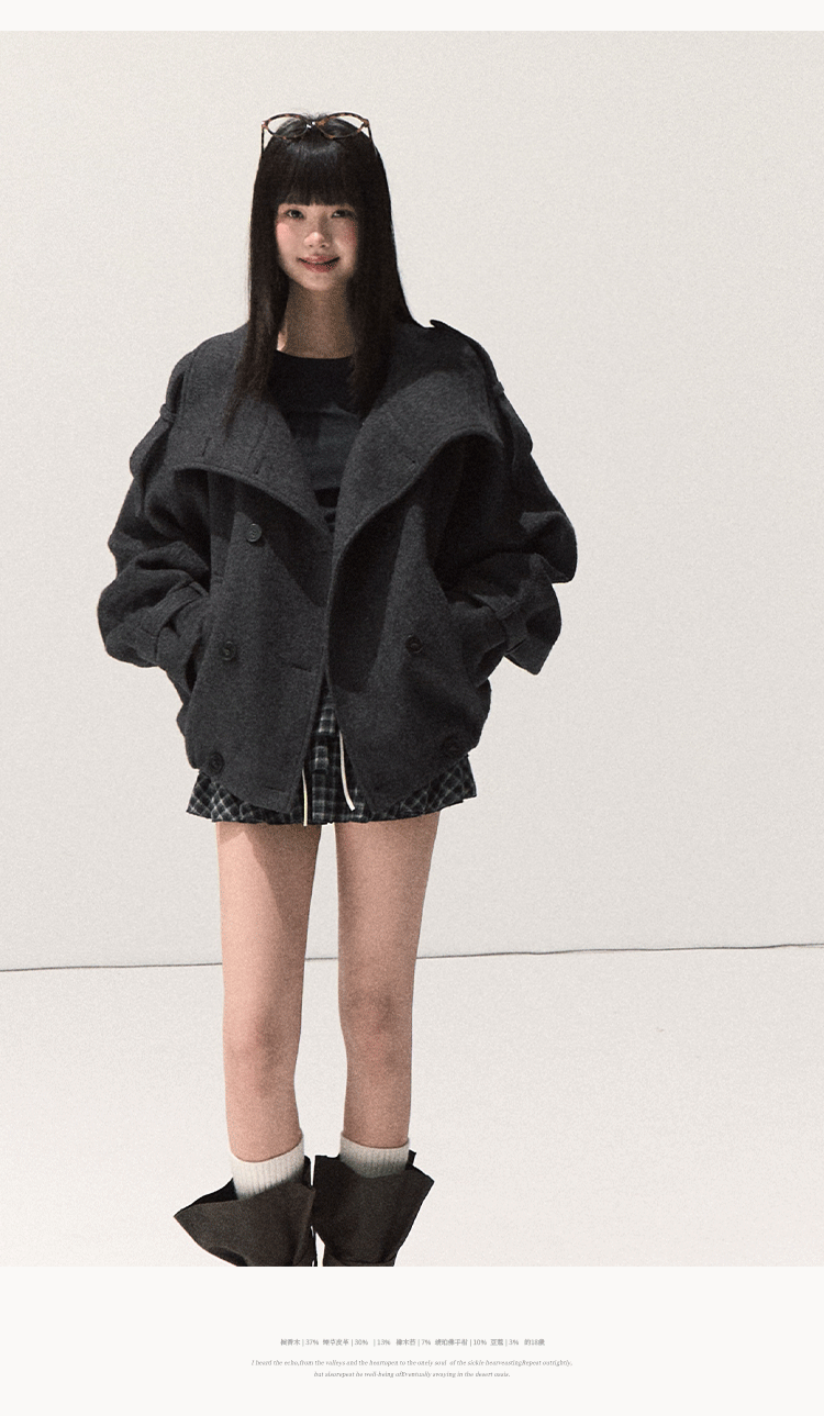 Oakmoo/ "Through the Oak Forest" Winter Heavy Wool Silhouette Stand-Up Collar Woolen Outwear Short Woolen Coat