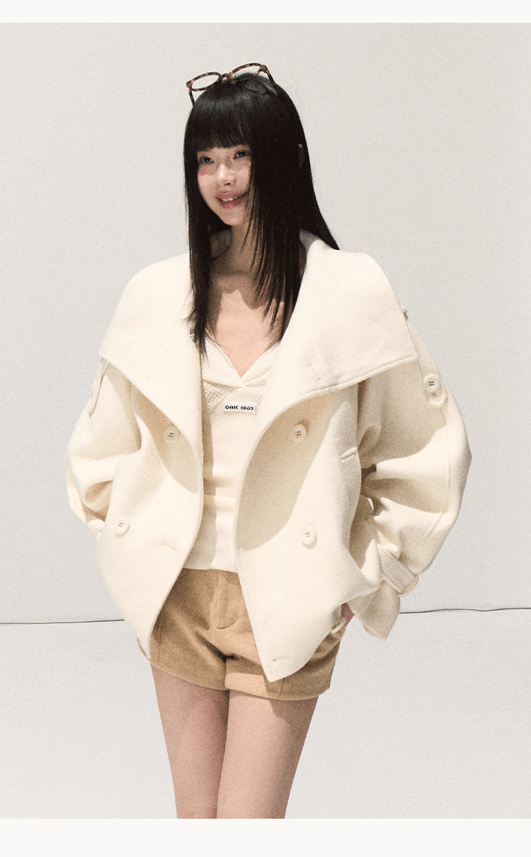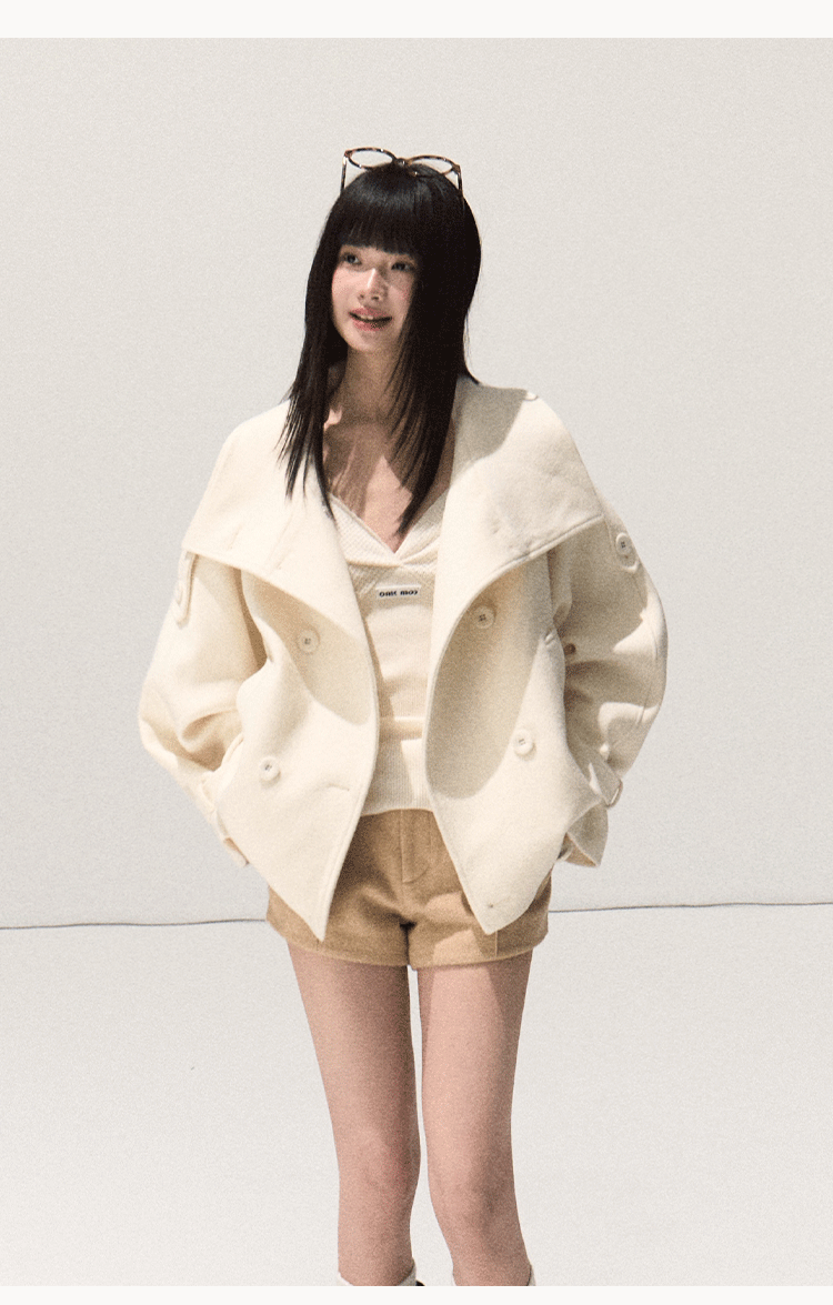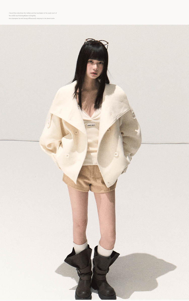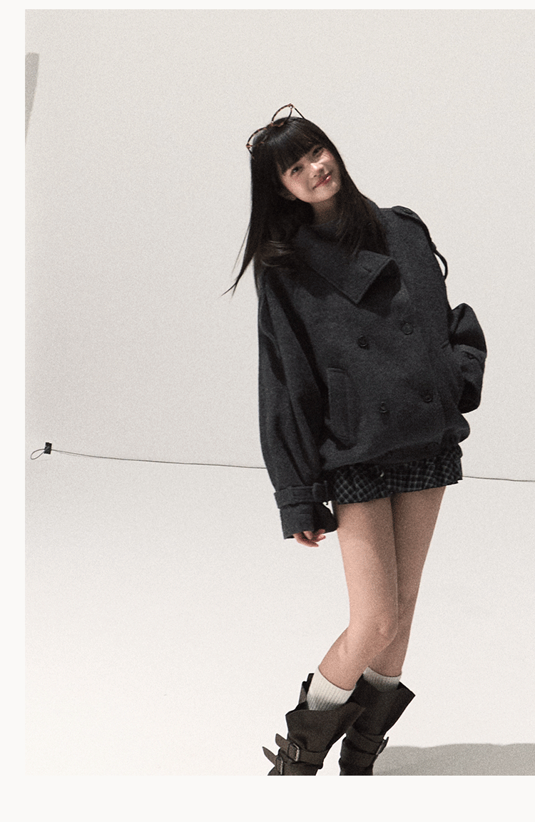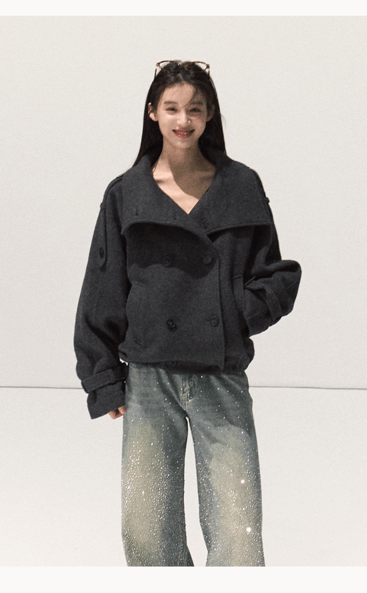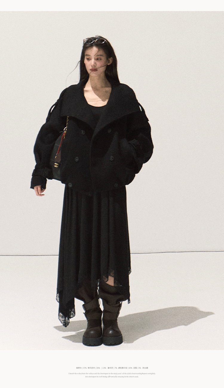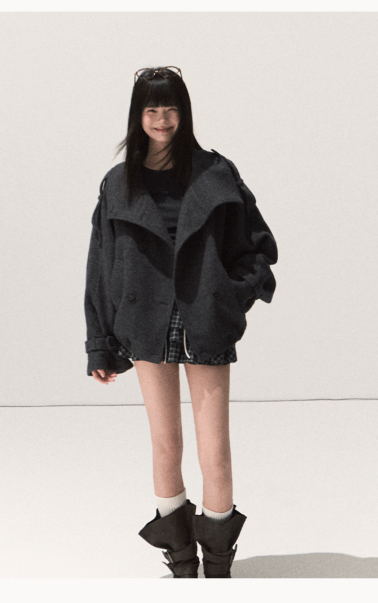 Oakmoo/ "Through the Oak Forest" Winter Heavy Wool Silhouette Stand-Up Collar Woolen Outwear Short Woolen Coat