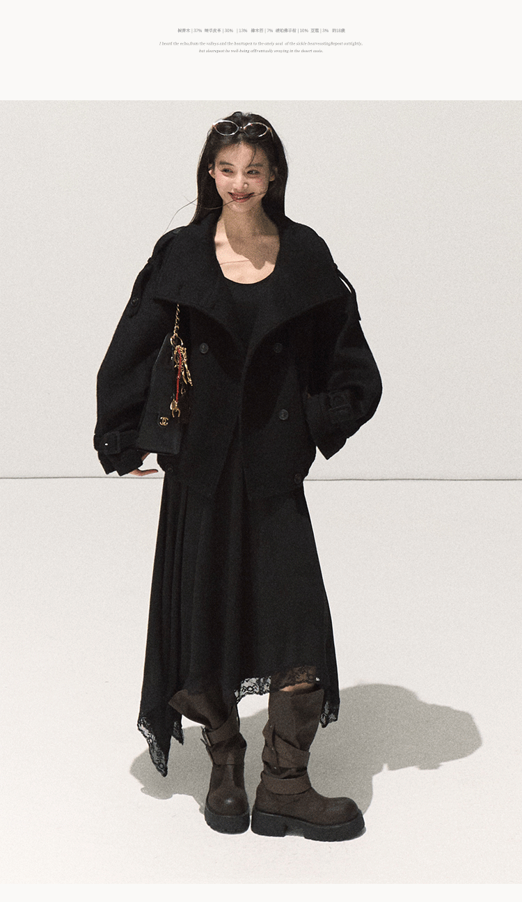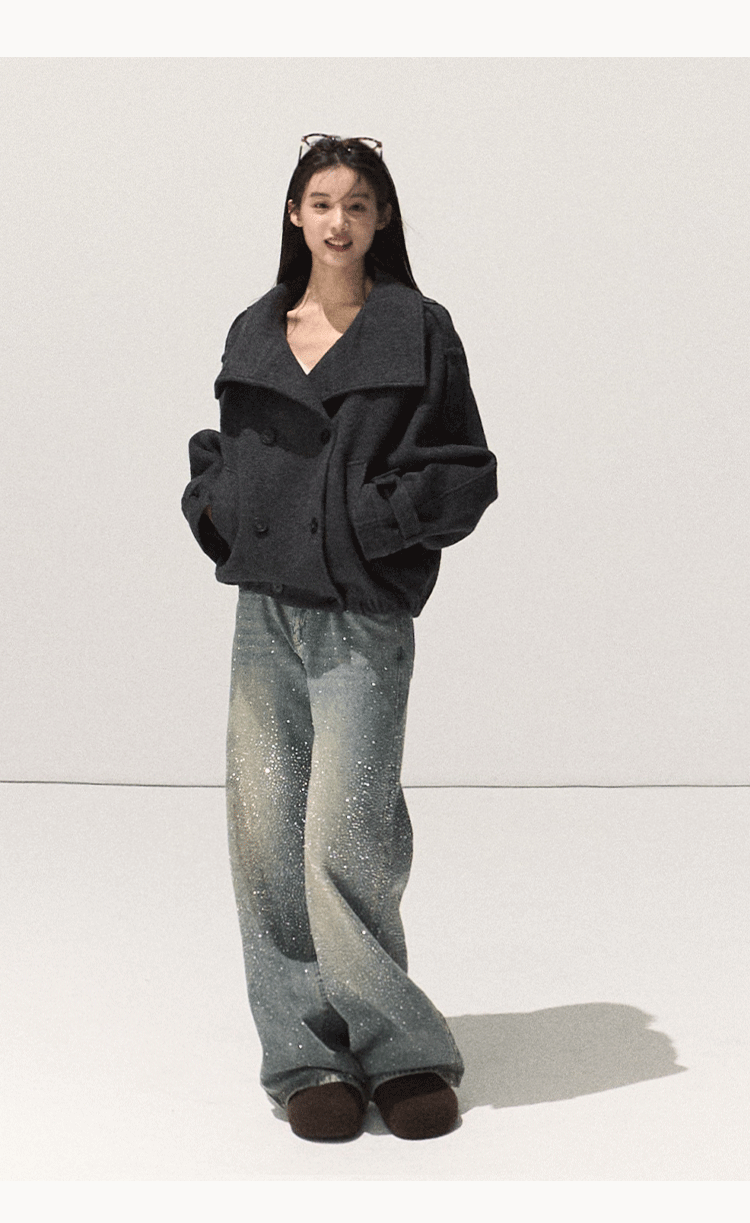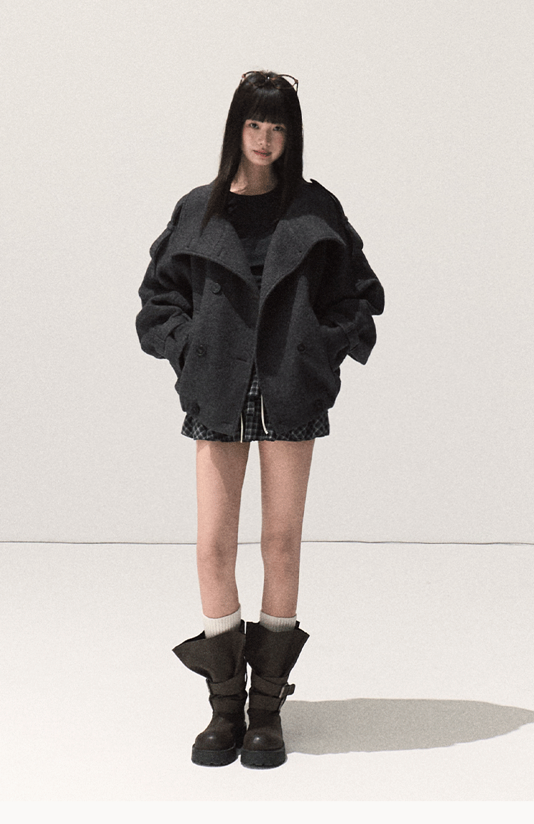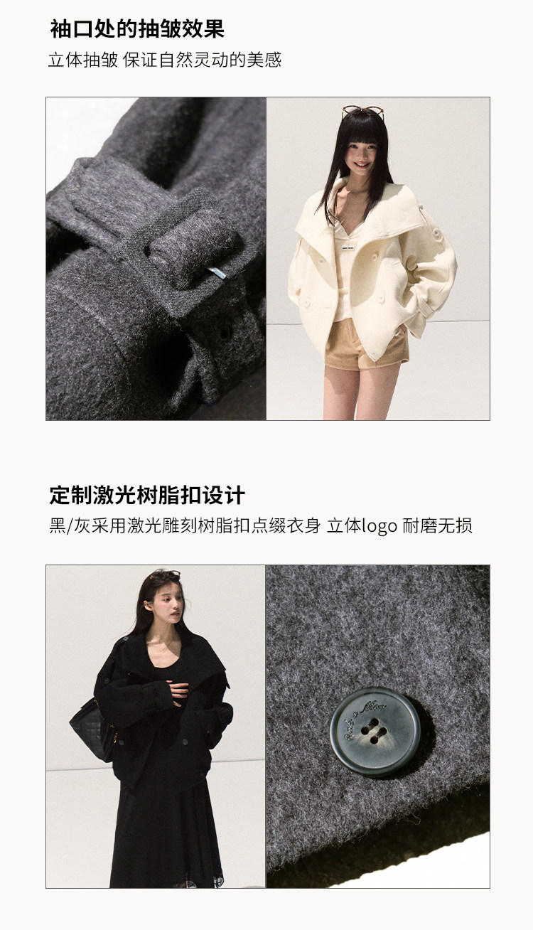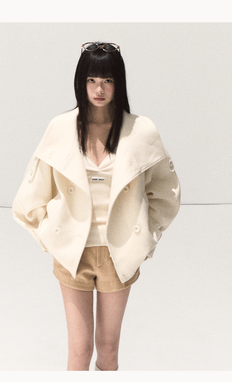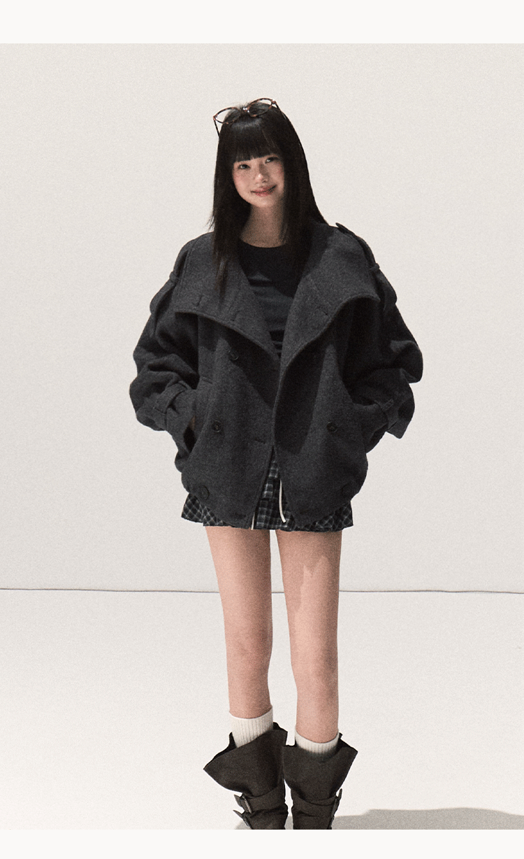 Oakmoo/ "Through the Oak Forest" Winter Heavy Wool Silhouette Stand-Up Collar Woolen Outwear Short Woolen Coat