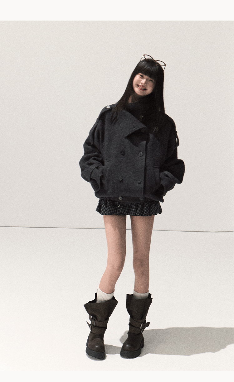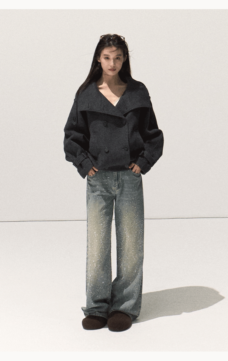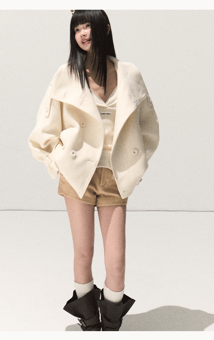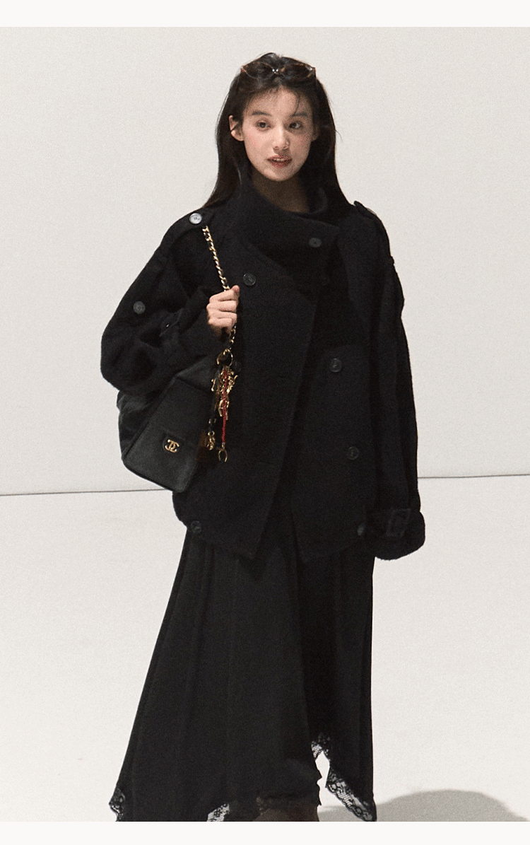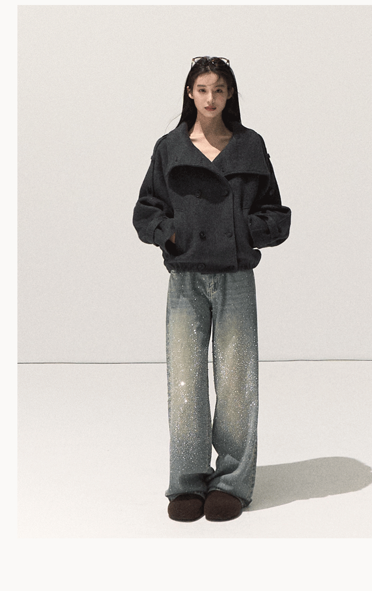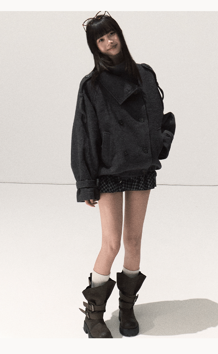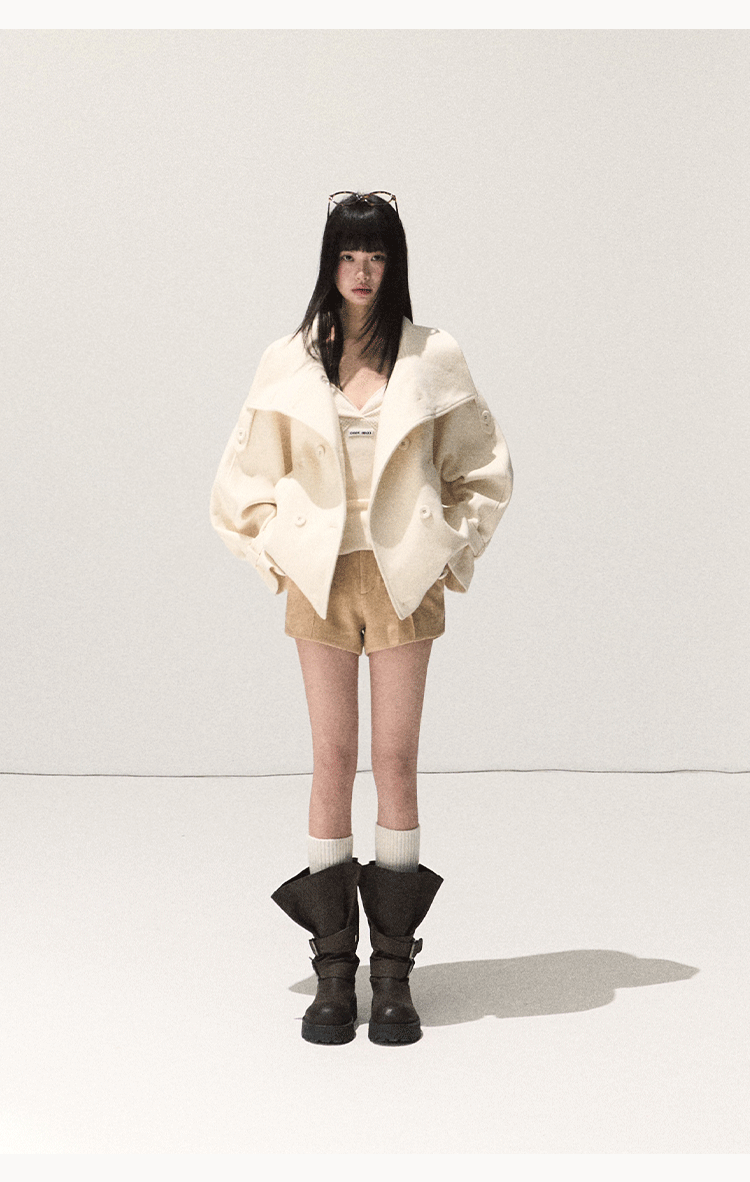 Oakmoo/ "Through the Oak Forest" Winter Heavy Wool Silhouette Stand-Up Collar Woolen Outwear Short Woolen Coat