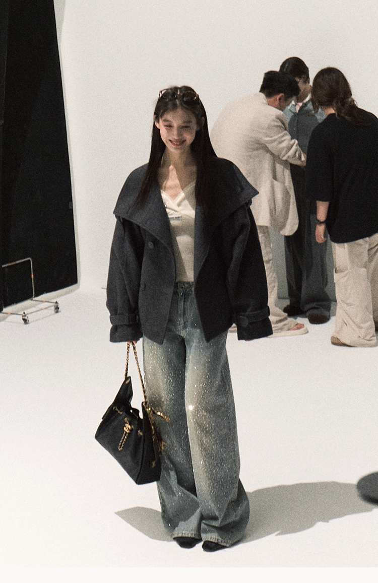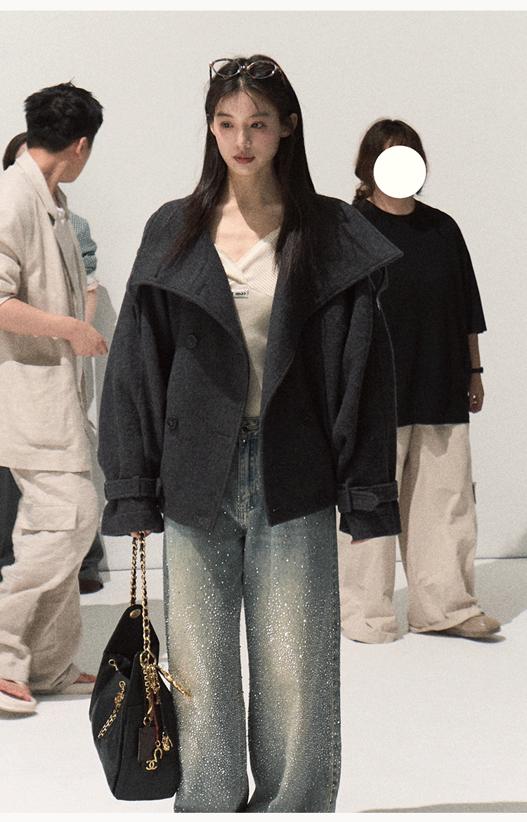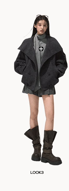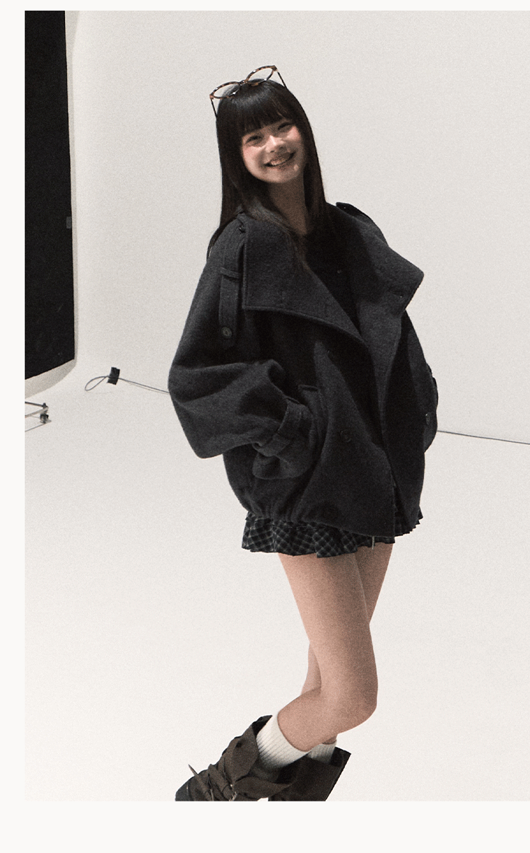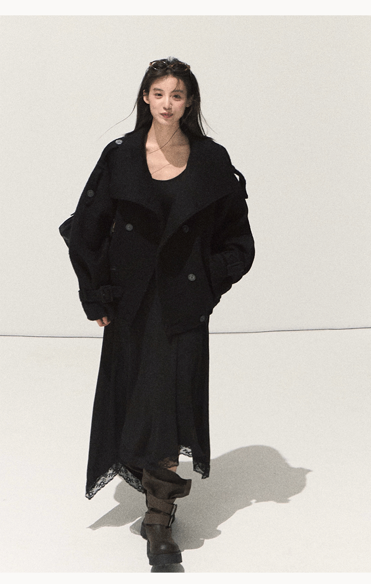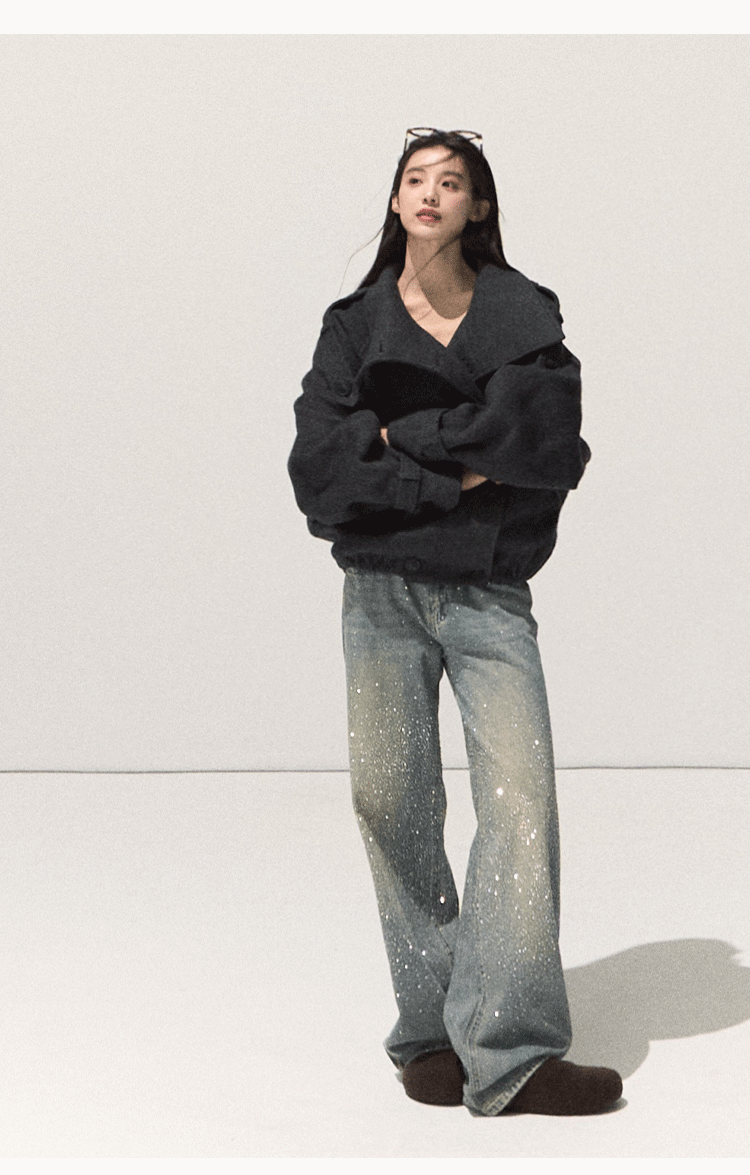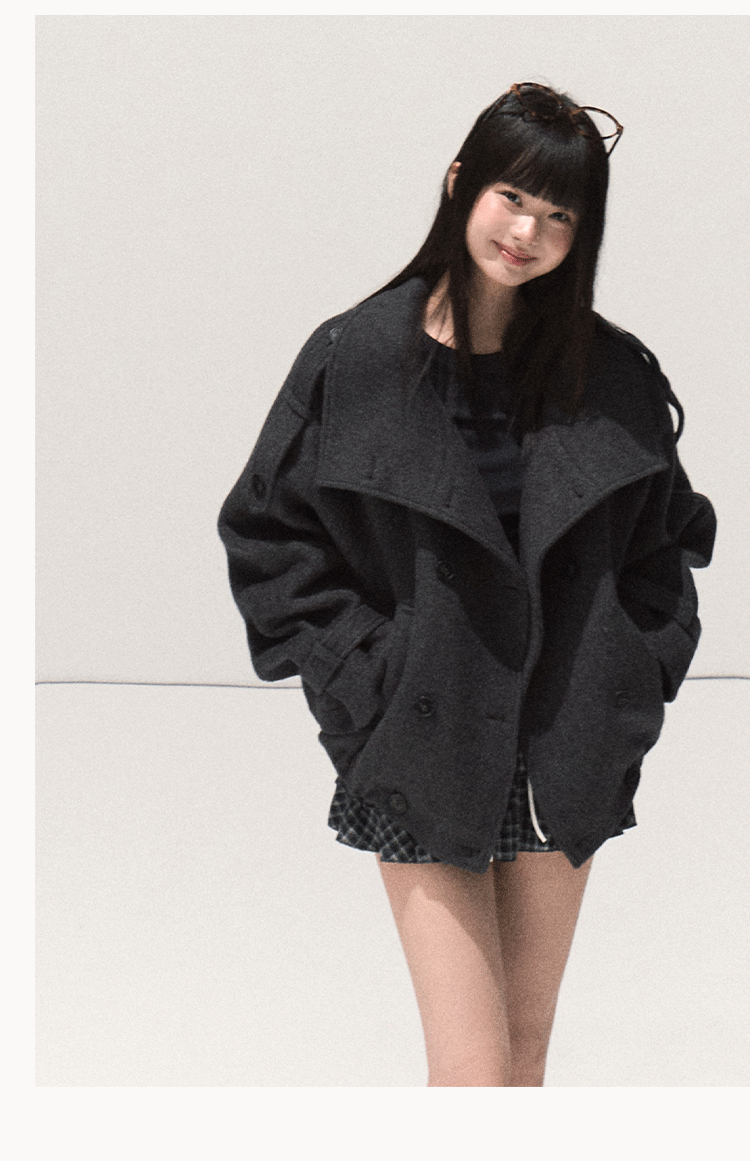 Oakmoo/ "Through the Oak Forest" Winter Heavy Wool Silhouette Stand-Up Collar Woolen Outwear Short Woolen Coat