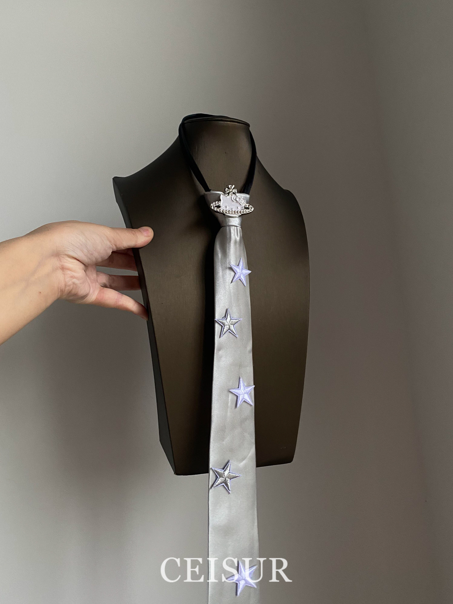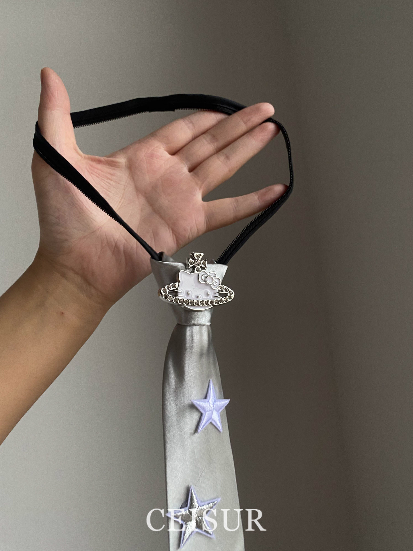 Japanese-Style Cute Silver Star Hello Kitty Tie Fashion Scarf for Women Sweet School Style Decorative Uniform Shirt Accessory