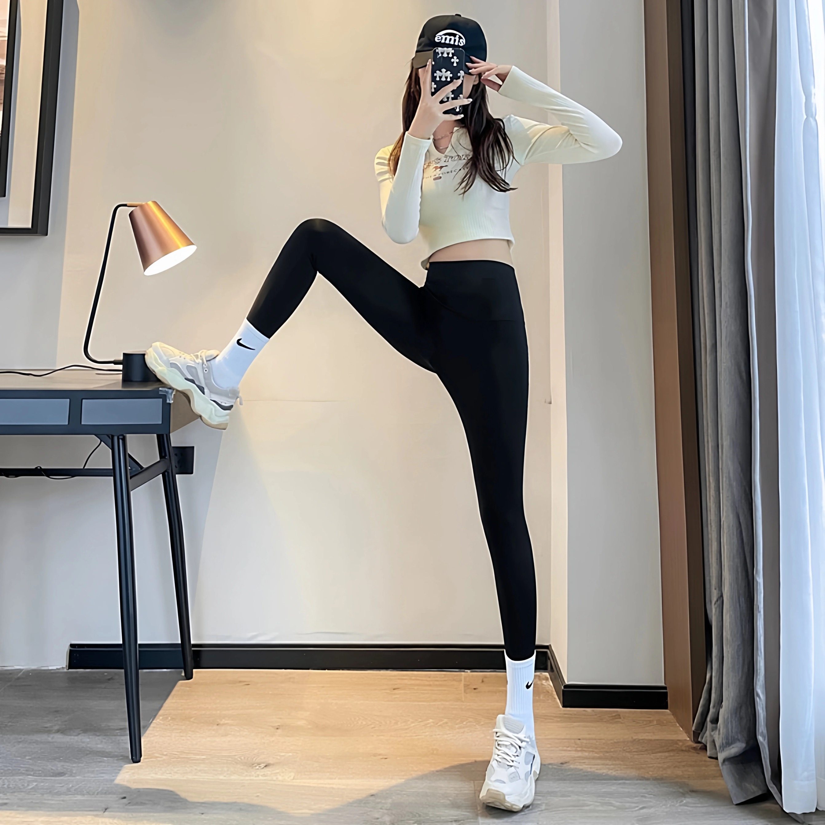 Trendy White Mid-Calf Cotton Socks for Women to Pair with Shark Pants, Popular Online, Suitable for Wearing Outside, Barbie Yoga Long Socks for Winter