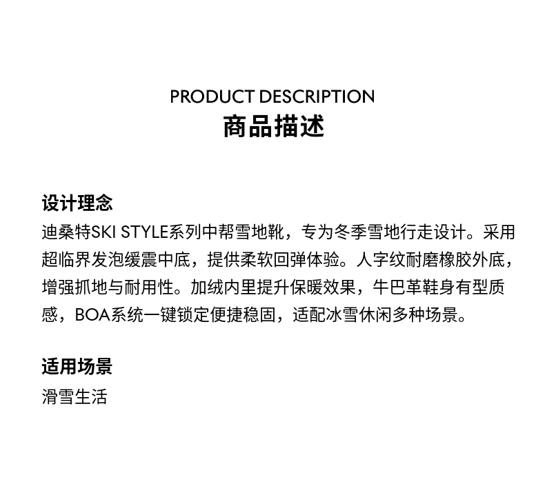 Descente Desante Ski Style Men's and Women's Cushioning Fleece-Lined Warm Boa Mid-Top Snow Boots New Product