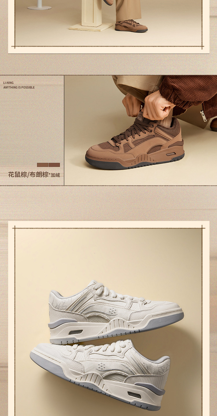 Li Ning Yuebai 2Mid Sneakers for Men, New Winter Model with Plush Lining, Retro Casual Shoes, High-Top Women's Wheat-Colored Sports Shoes