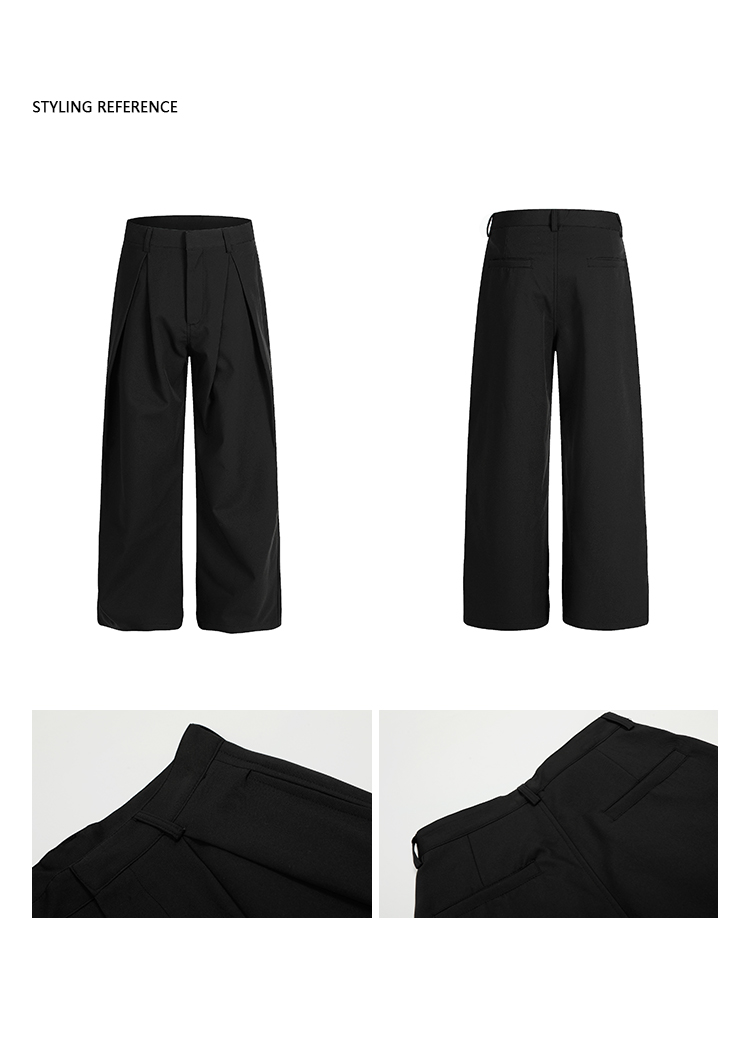 Blankin Old Money Style Pleated A-Line Silhouette Drape Suit Pants Unisex Winter Commuting Cleanfit Pants