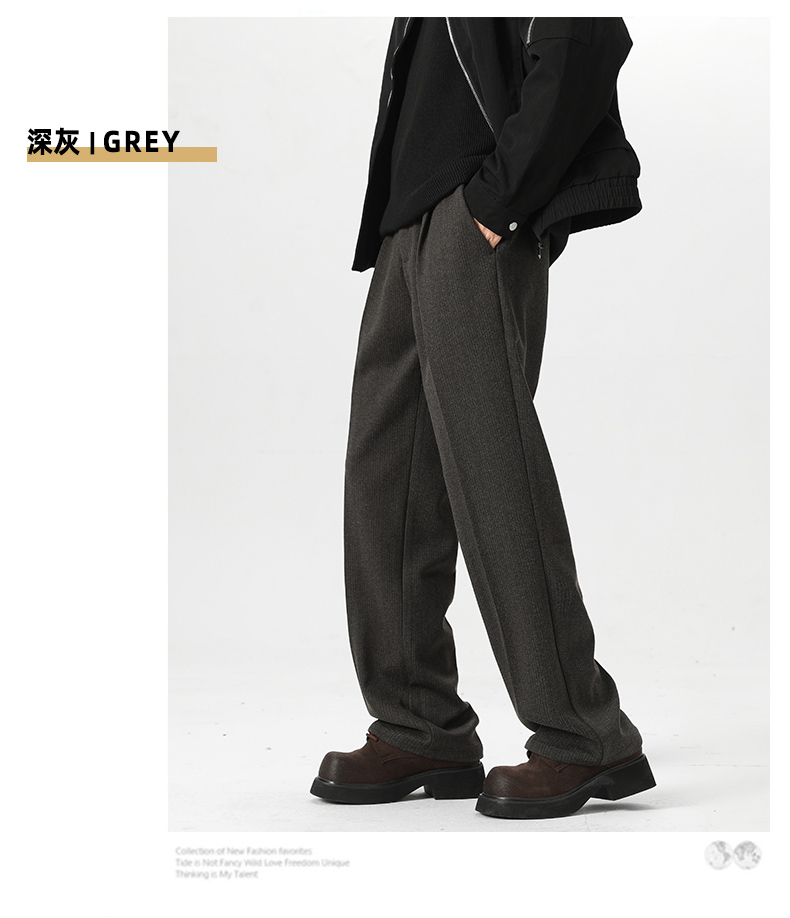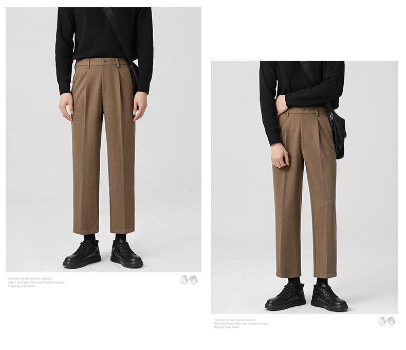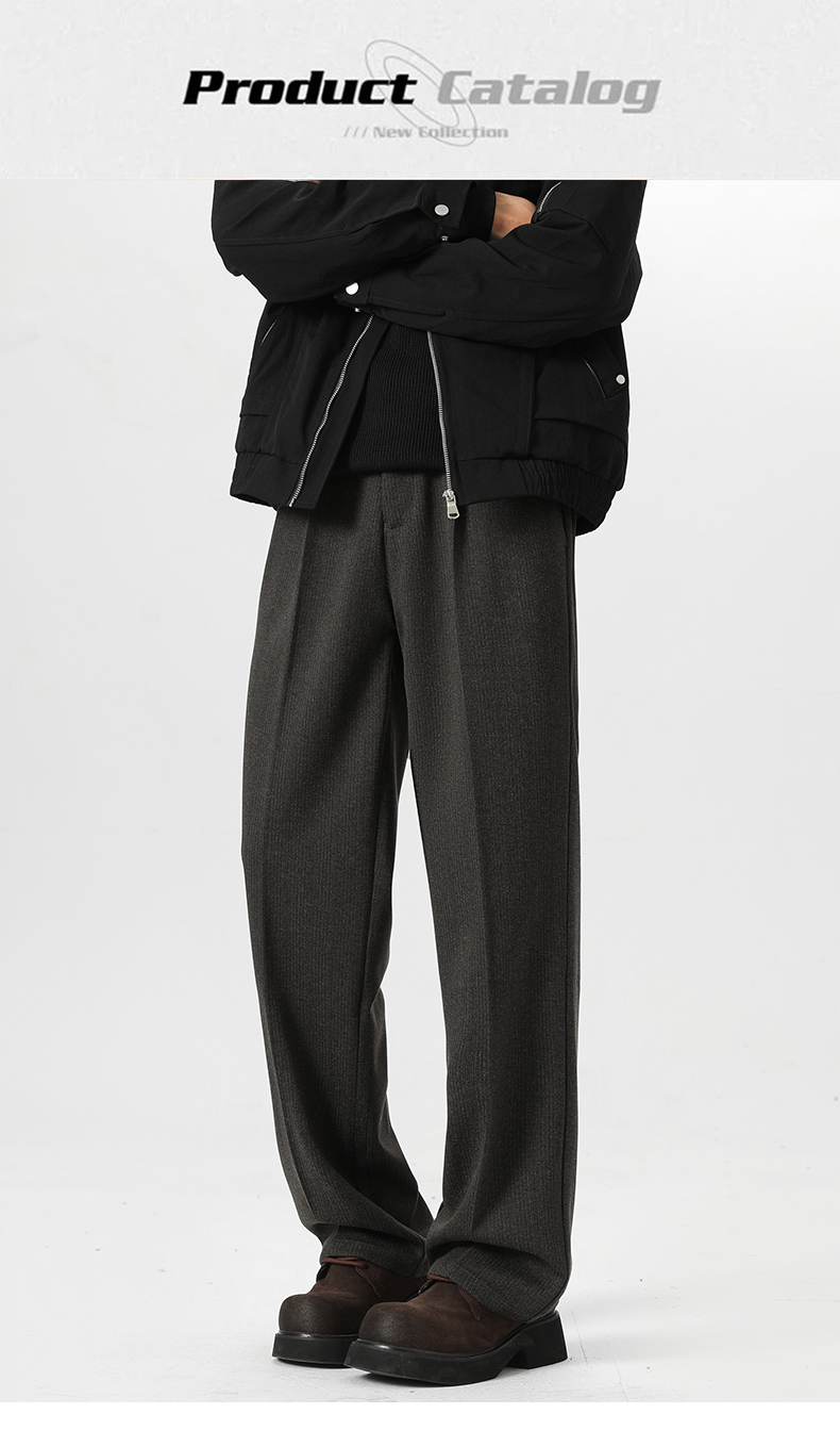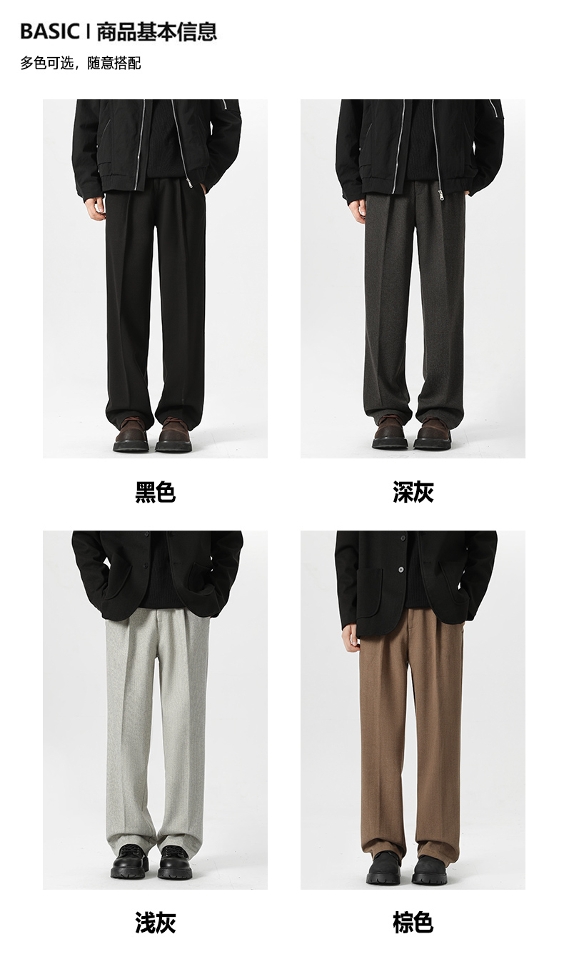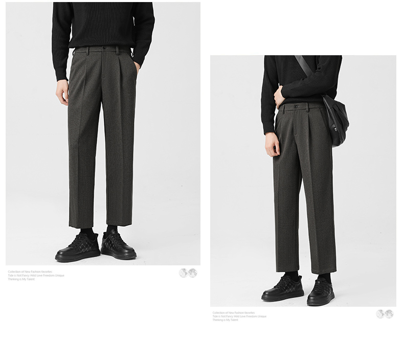 Romon Woolen Trousers for Men, Autumn and Winter Thickened Warm Straight-Leg Loose Business Casual Pants with Drape Effect, Suit Pants