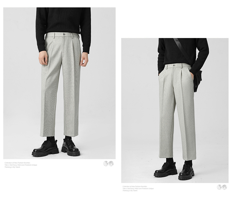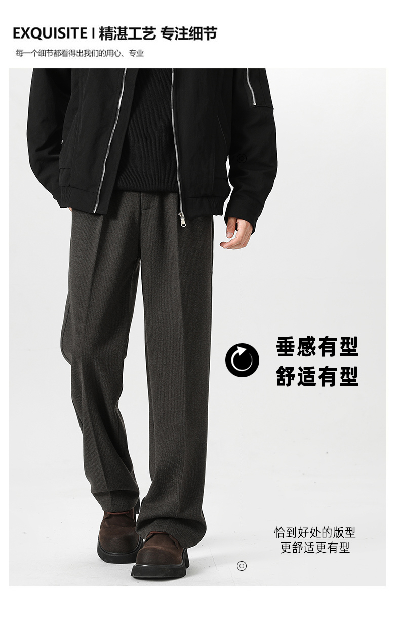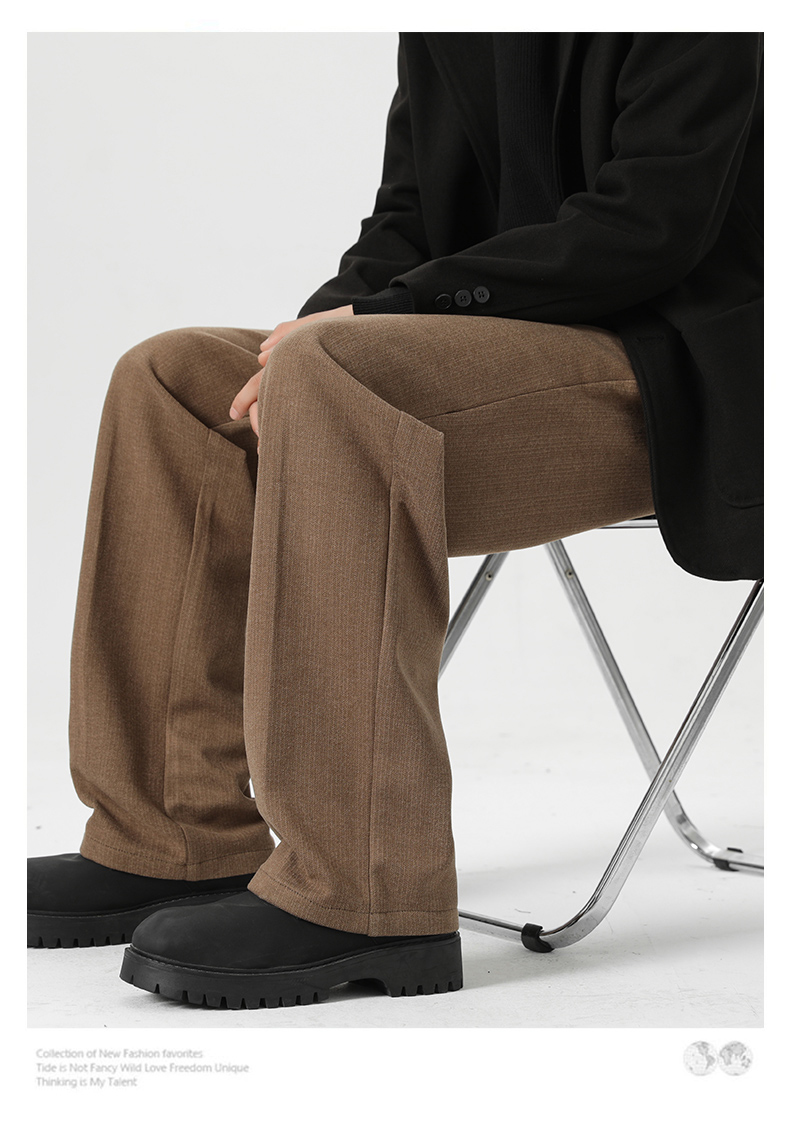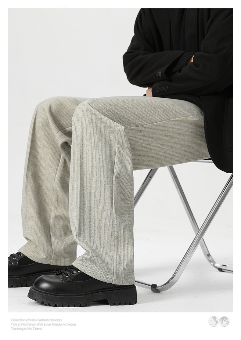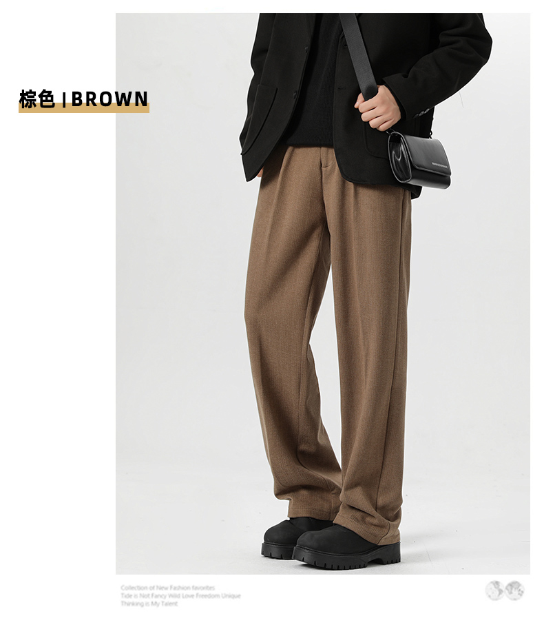 Romon Woolen Trousers for Men, Autumn and Winter Thickened Warm Straight-Leg Loose Business Casual Pants with Drape Effect, Suit Pants