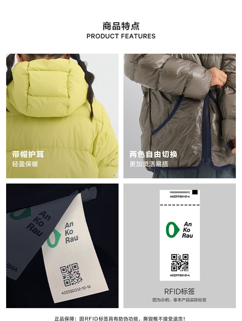 Kids New Winter Outdoor Travel 650 Fill Double-Sided Hooded down Jacket | Ankorau Ankorau