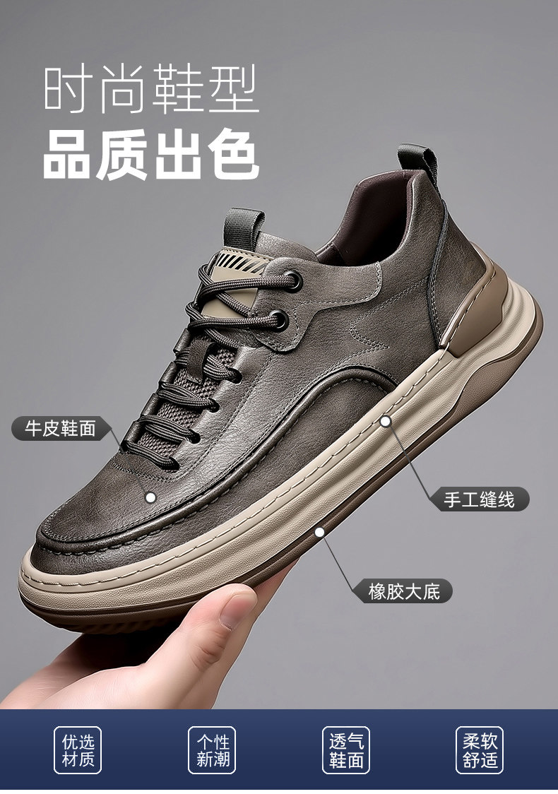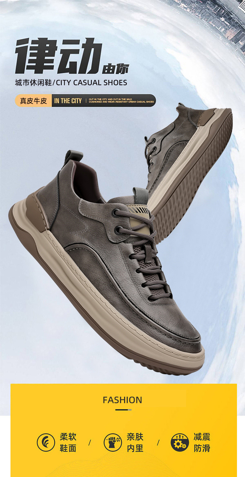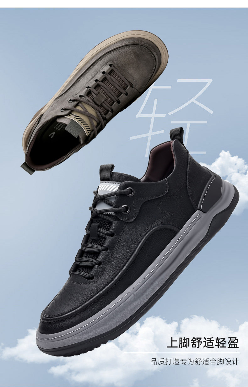 German Camel Dynamic Leather Shoes for Men 2026 Spring New Non-Slip Thick-Soled Casual Shoes Soft-Soled Genuine Leather Sports Sneakers