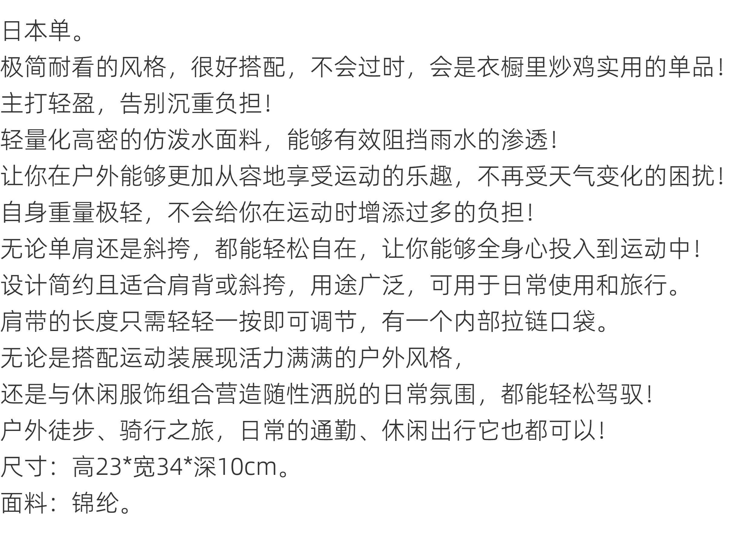 53393 Japanese Single ~ Normcore Easiest for match Outdoor Athleisure Lightweight Shoulder Bag Crossbody Bag for Men and Women 0.21