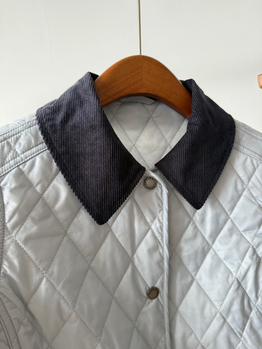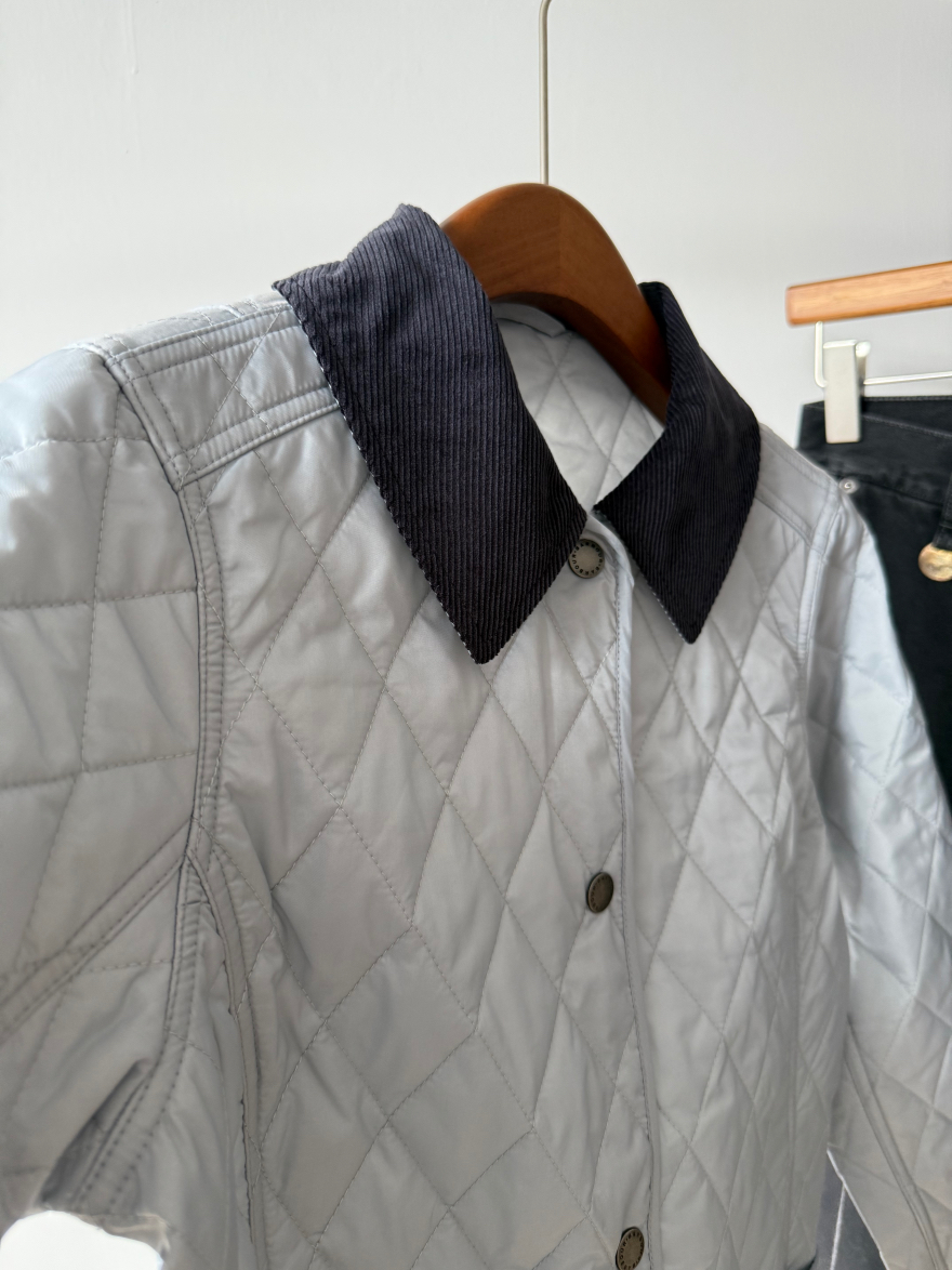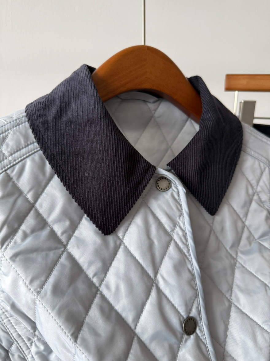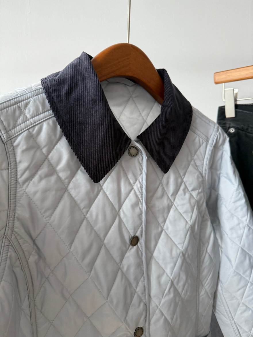 真正好的衣服不需要堆积sku,一个足矣,足够自信,shou先它的颜色非常特别且好看,纯净的冰蓝色,市面上类似的颜色真的不好找,大家如果去逛逛街会发现,虽然看上去百花齐放,物质极大丰富,实际上每一家的色彩都非常单一且雷同,你想买一件亮色的衣服都很难,一件亮色穿上活力四射不土不俗的那就可以称之为优秀了!再就是我想给大家一个虽然是Bar但是又不明显Bar的款,这个款式不属于他家传统的工装风格款式,非常女性化,侧边都做了收腰线修饰身材,穿上以后身型显的特别好,下摆处两个超大的外贴口袋不仅减龄,也非常实用,大家知道Bar都是非常注重实用性的,左侧口袋的黄色徽标刺绣也十分出彩;精致俏皮的灯芯绒撞色小翻领,日本进口四合扣,细节满满!菱格也是全部采用进口模版机绗缝,左右门襟完全对格,品质感十足!搭配毛衣,复古的格纹衬衣都好看~