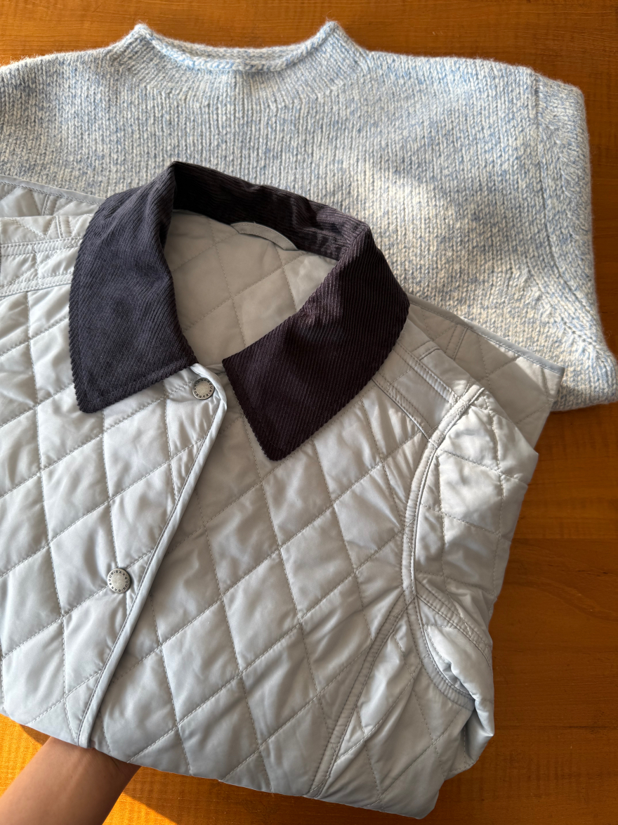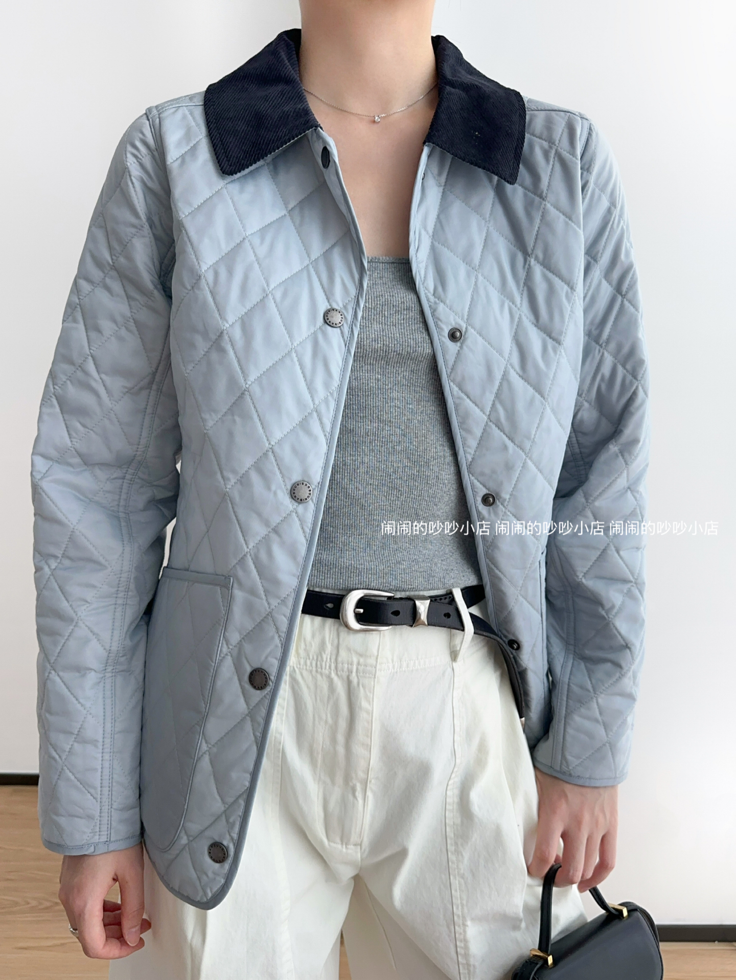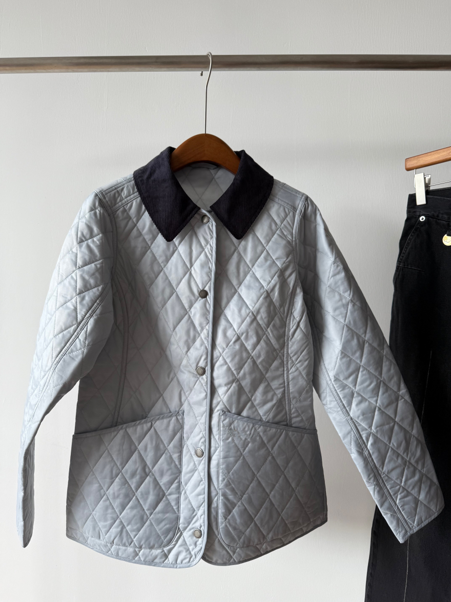 真正好的衣服不需要堆积sku,一个足矣,足够自信,shou先它的颜色非常特别且好看,纯净的冰蓝色,市面上类似的颜色真的不好找,大家如果去逛逛街会发现,虽然看上去百花齐放,物质极大丰富,实际上每一家的色彩都非常单一且雷同,你想买一件亮色的衣服都很难,一件亮色穿上活力四射不土不俗的那就可以称之为优秀了!再就是我想给大家一个虽然是Bar但是又不明显Bar的款,这个款式不属于他家传统的工装风格款式,非常女性化,侧边都做了收腰线修饰身材,穿上以后身型显的特别好,下摆处两个超大的外贴口袋不仅减龄,也非常实用,大家知道Bar都是非常注重实用性的,左侧口袋的黄色徽标刺绣也十分出彩;精致俏皮的灯芯绒撞色小翻领,日本进口四合扣,细节满满!菱格也是全部采用进口模版机绗缝,左右门襟完全对格,品质感十足!搭配毛衣,复古的格纹衬衣都好看~