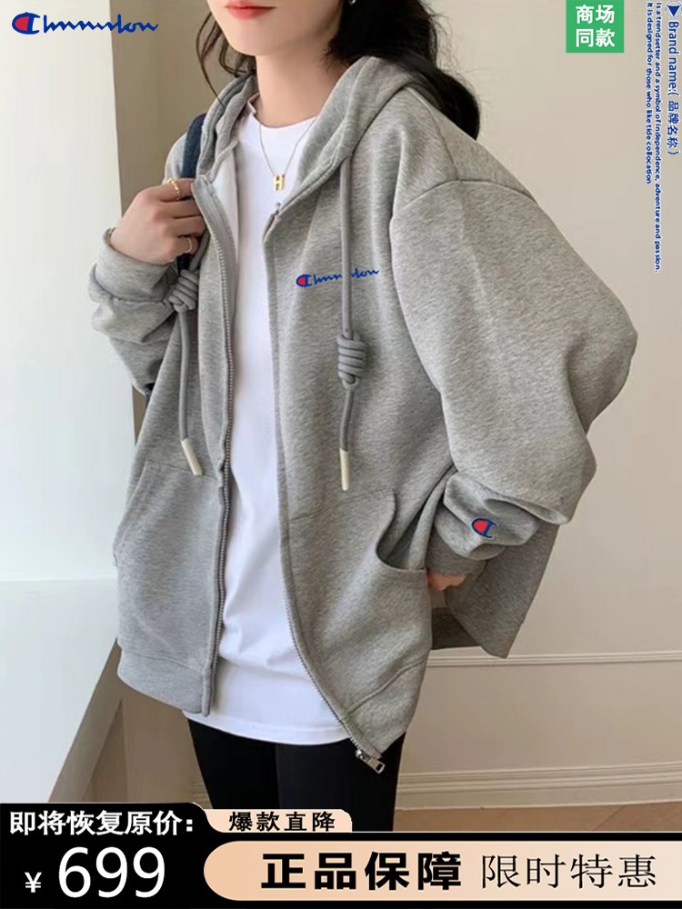 Outlet Grey Hooded Sweatshirt Women Fall and winter New arrival Loose oversize lazy style Outwear Unisex
