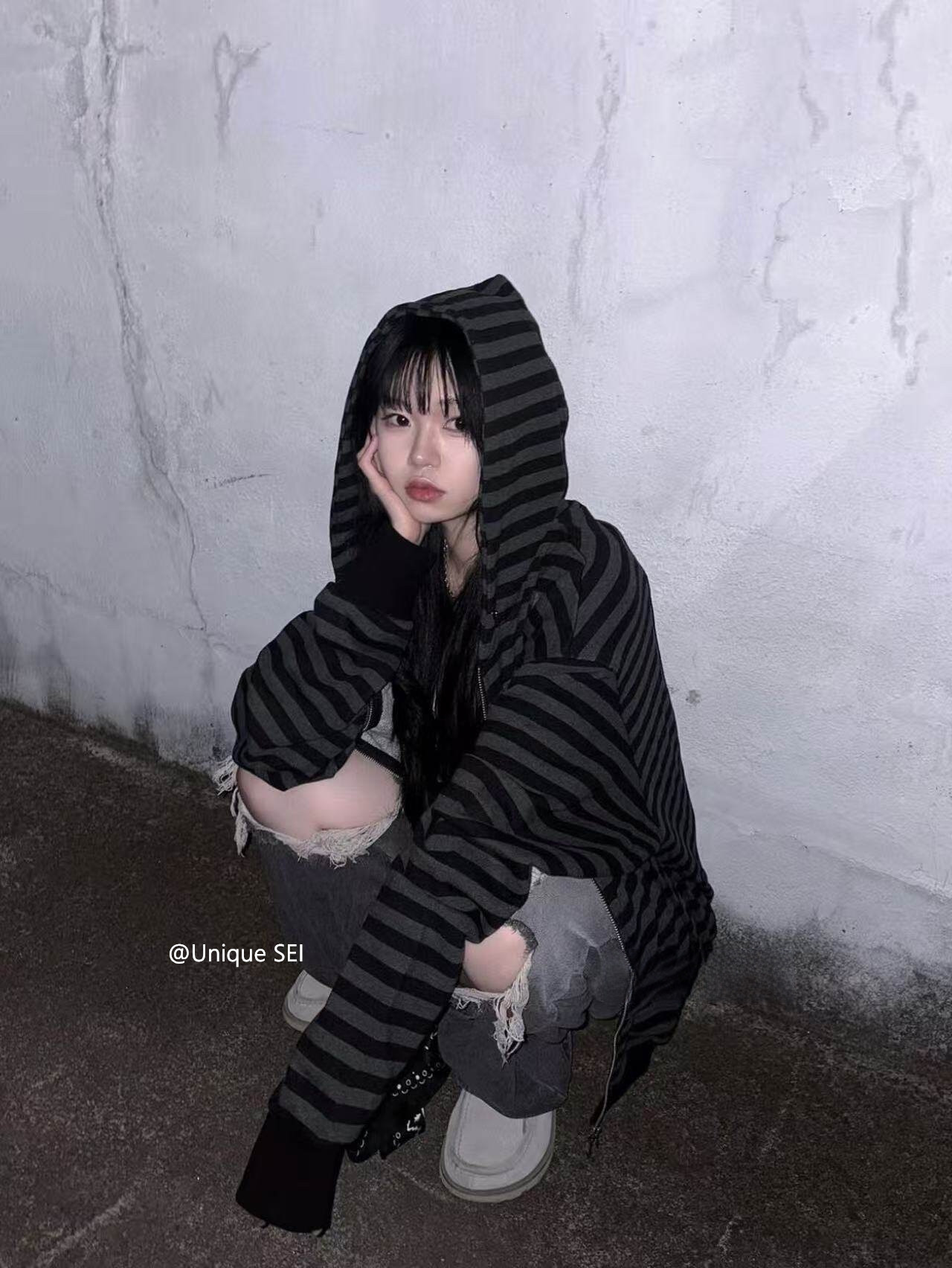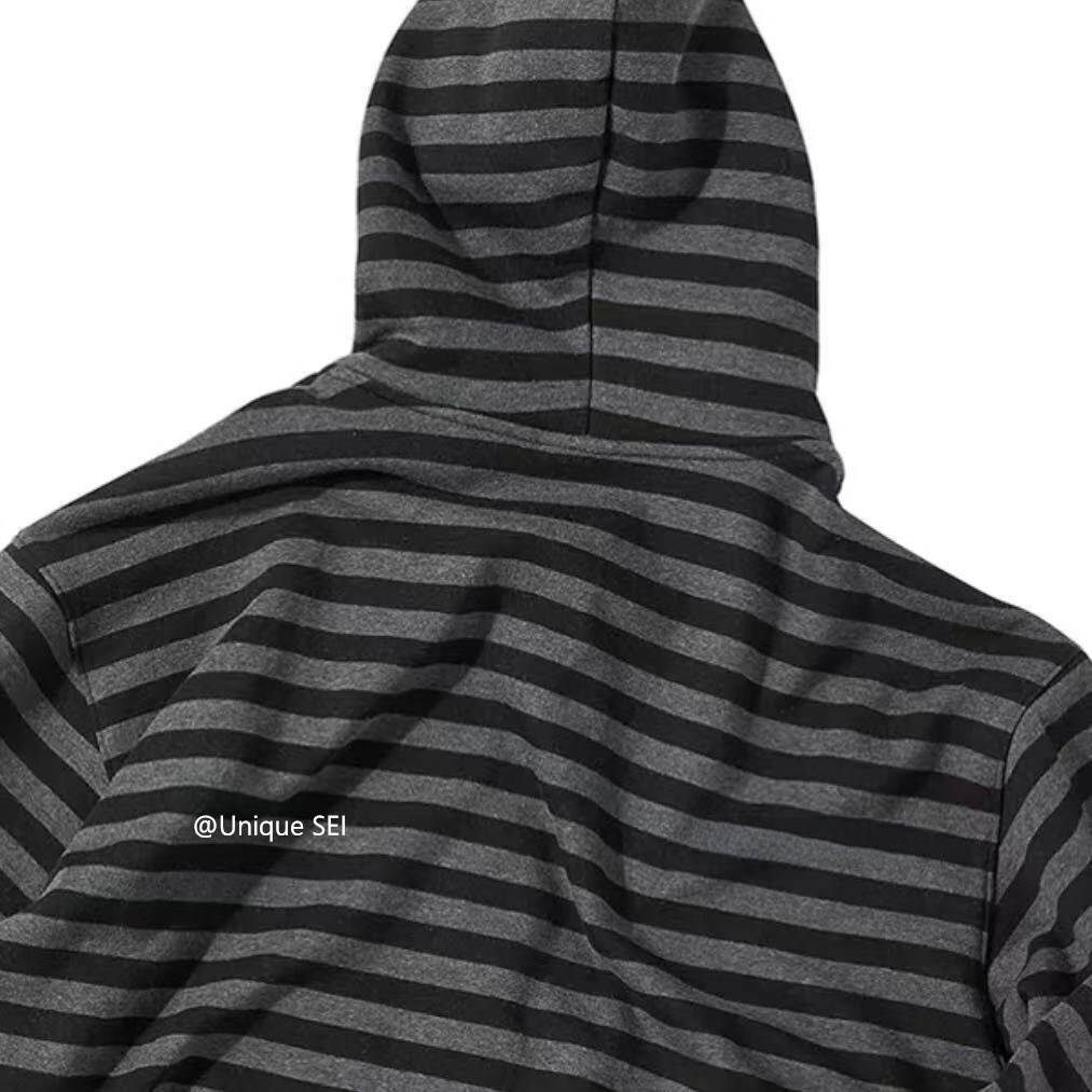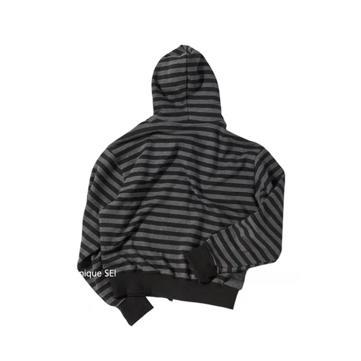 Unique Sei Korean Style Autumn and Winter Star Zipper Hooded Sweatshirt Striped Casual Loose Retro Jacket Top for Women