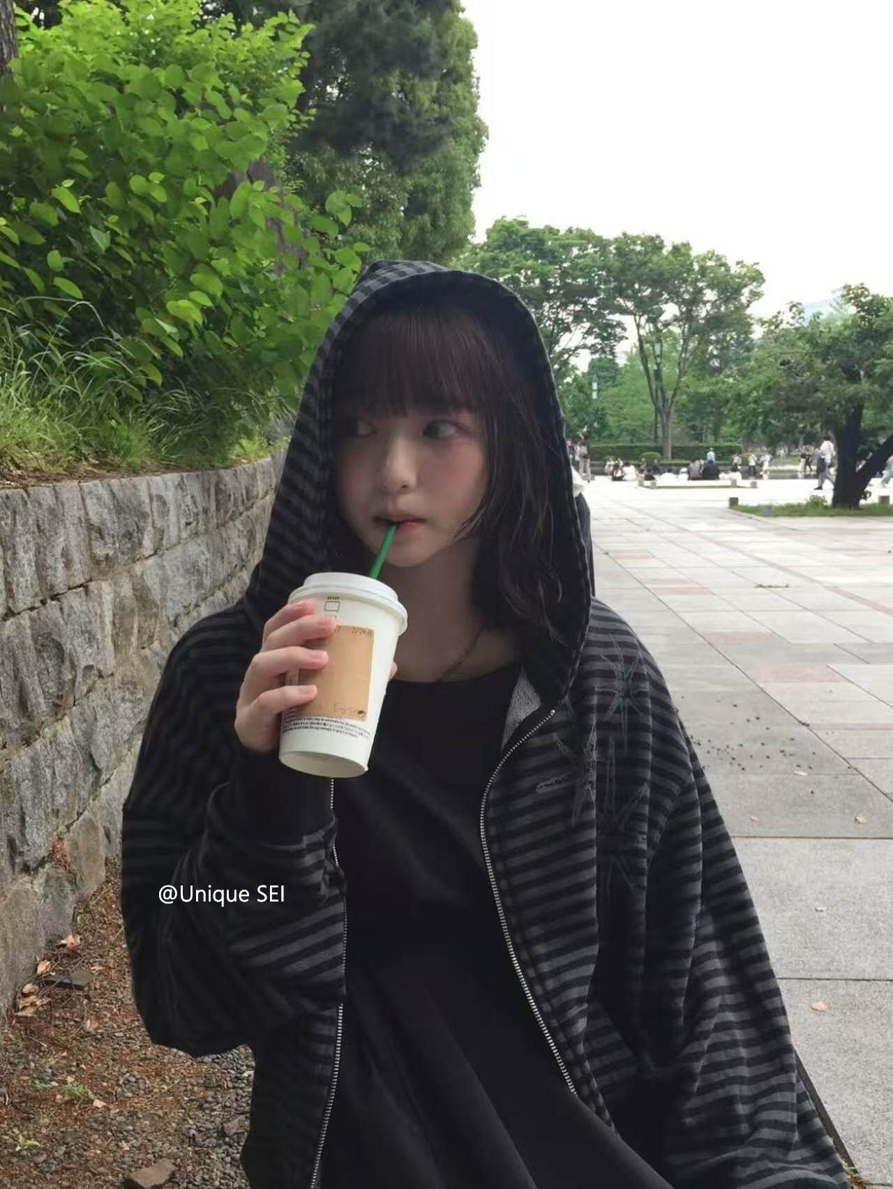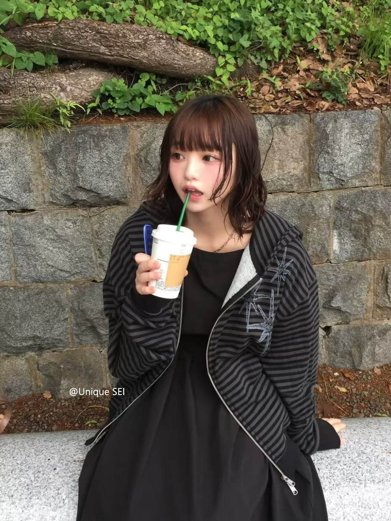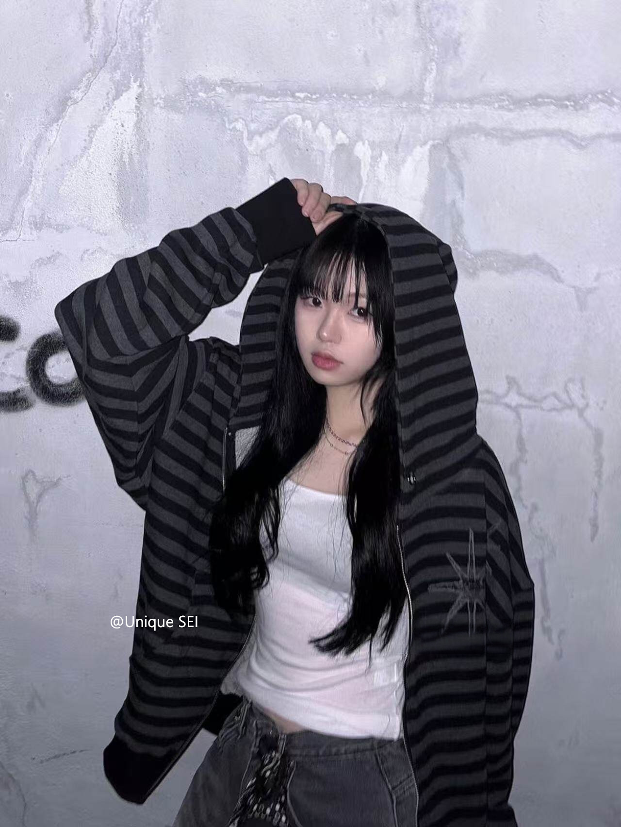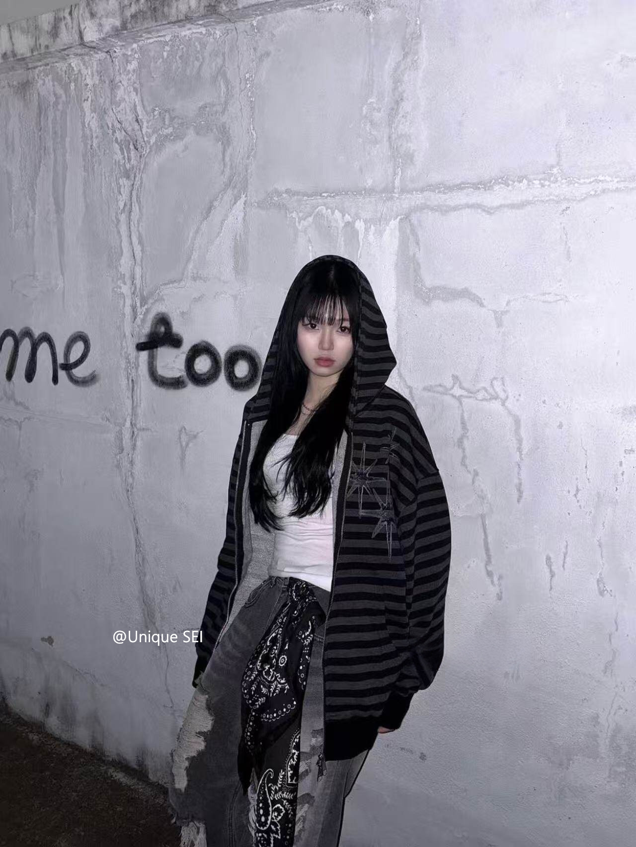 Unique Sei Korean Style Autumn and Winter Star Zipper Hooded Sweatshirt Striped Casual Loose Retro Jacket Top for Women