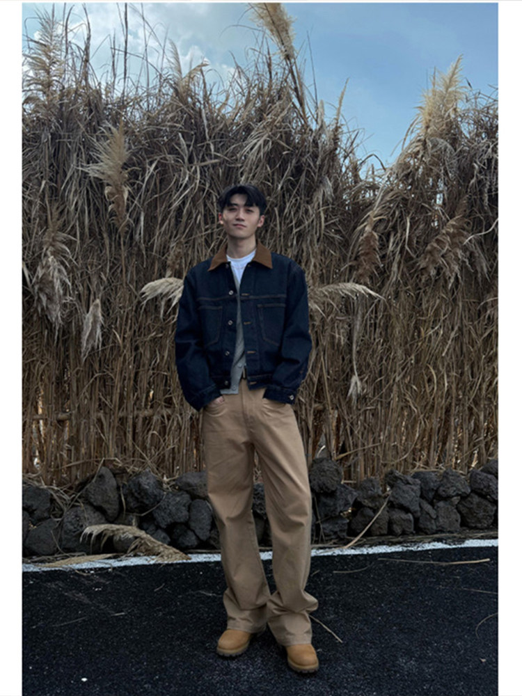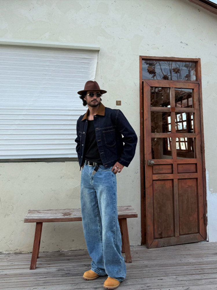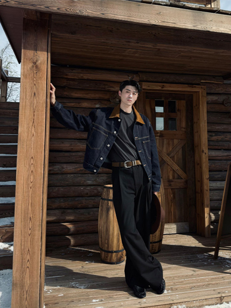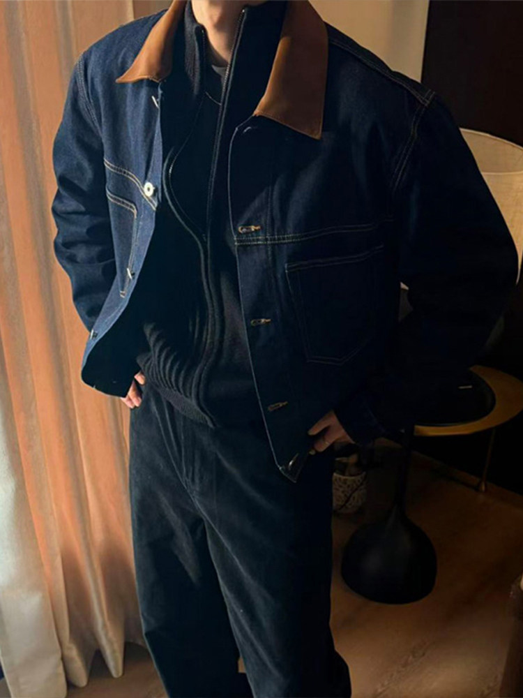 Old Money, New Rich, Barn Style, Denim Jacket for Men, Autumn High Street Retro Vintage Lapel Jacket Top