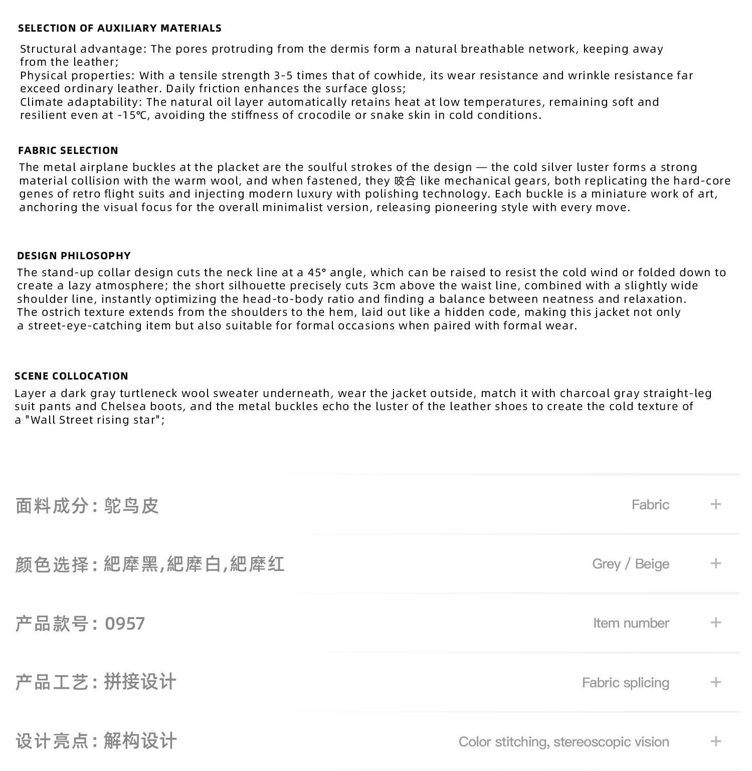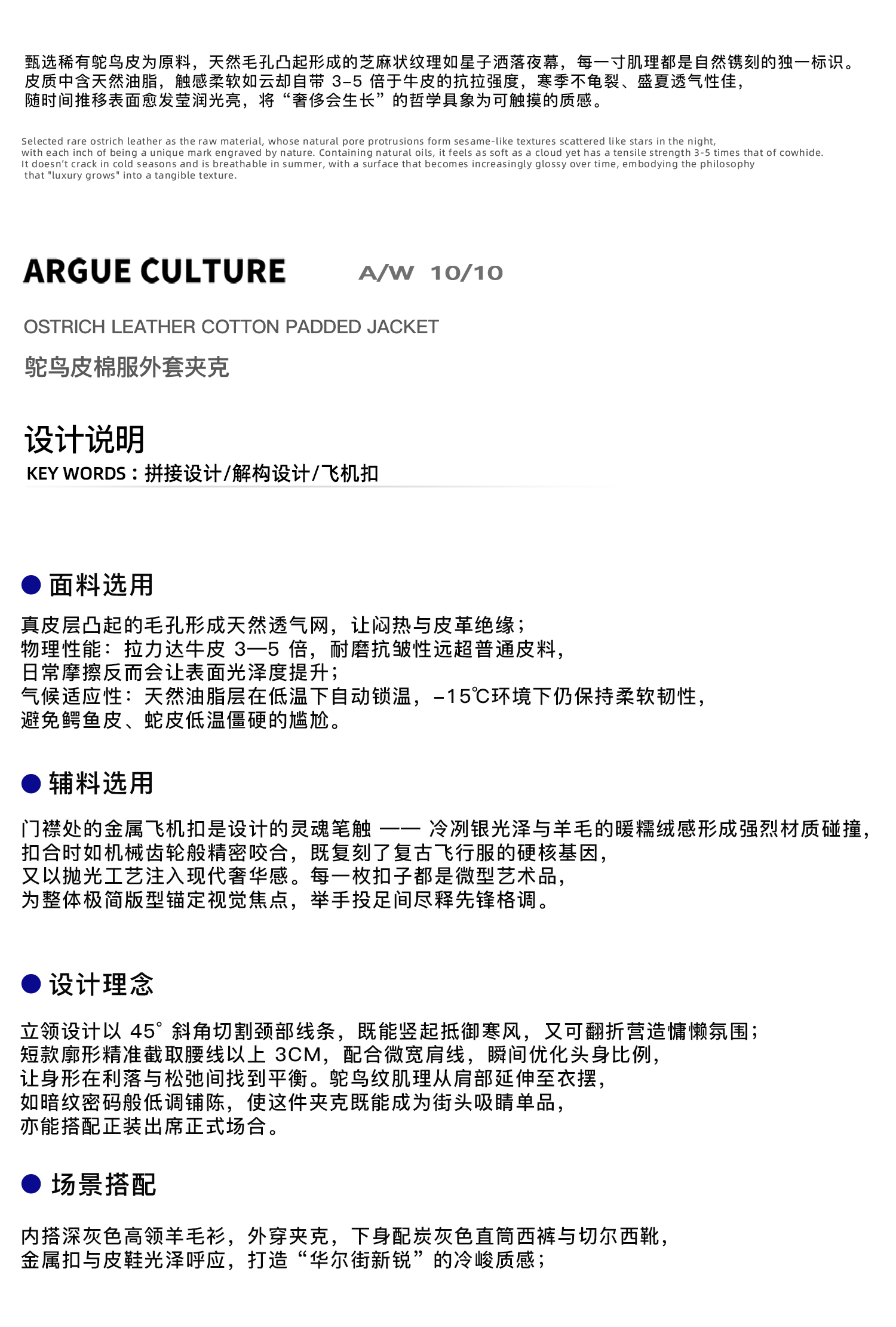 Argue Culture25Fw Ostrich Leather Cotton Jacket with Fur Lining, Thickened with Airplane Buckle, Leather Jacket