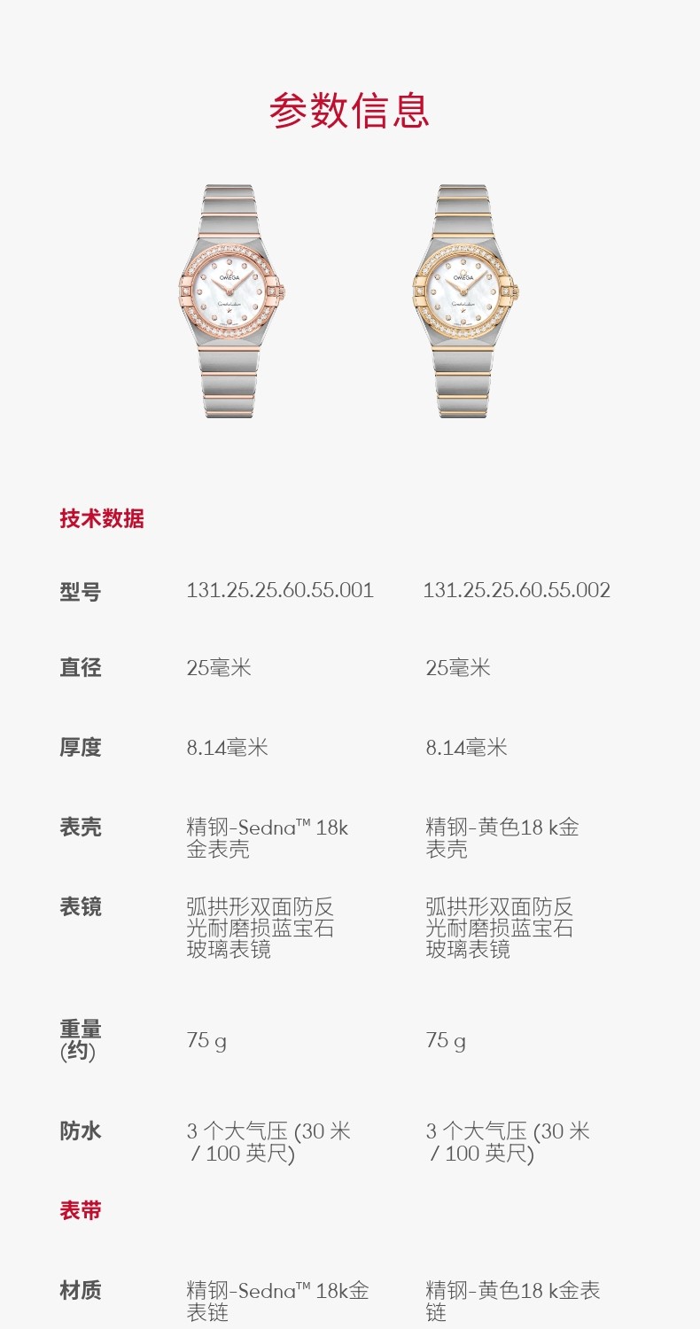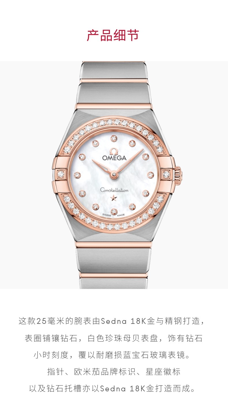 Omega Omega Official Flagship Store Constellation Series Quartz Stainless Steel-18K Gold Watch for Women Genuine [Gift]