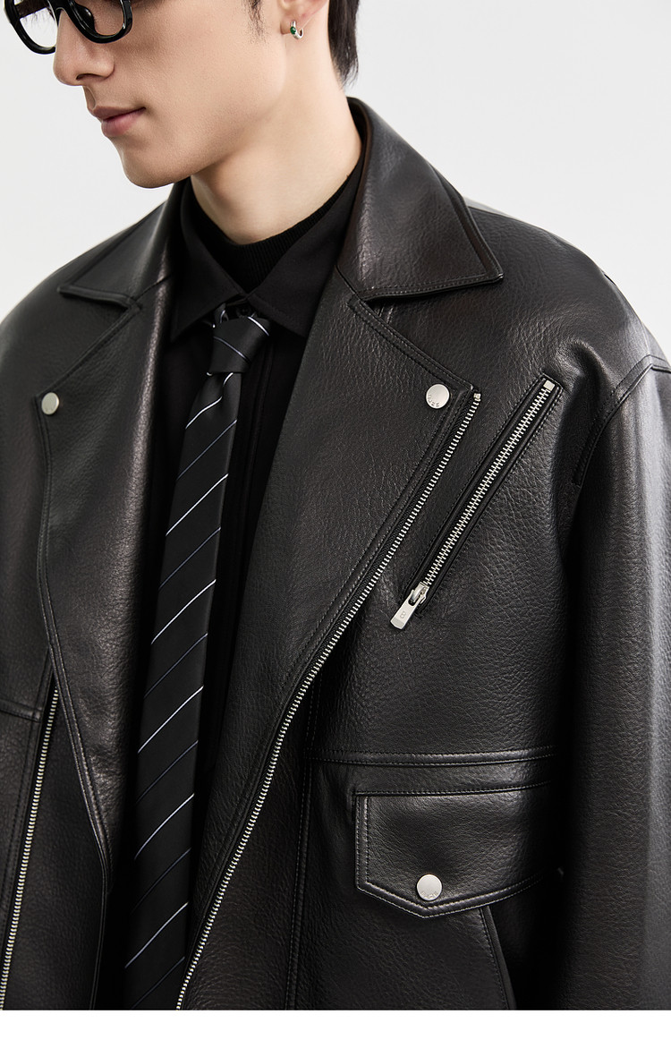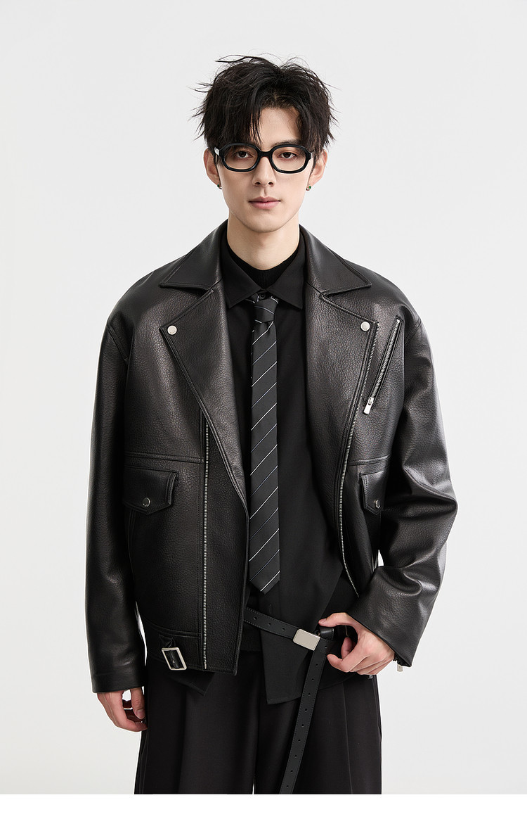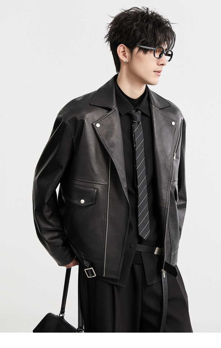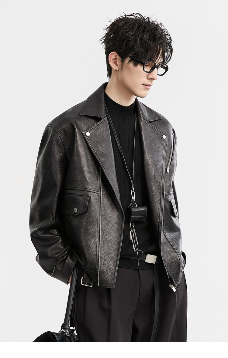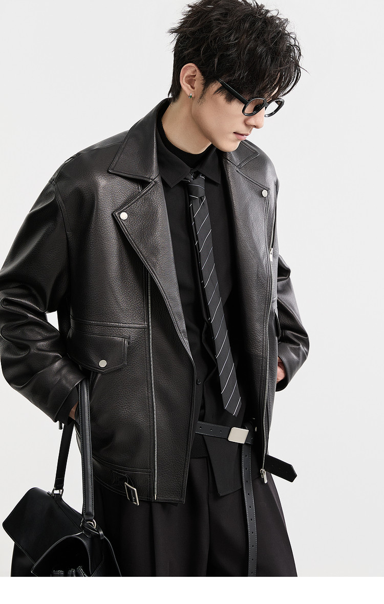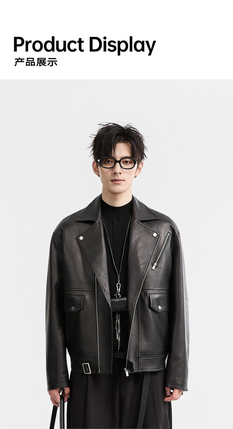 Earl Zhuoer 25 Autumn/Winter Genuine Leather Jacket Men's Cool Short Motorcycle Jacket with Turn-Down Collar Trendy Sheepskin Top